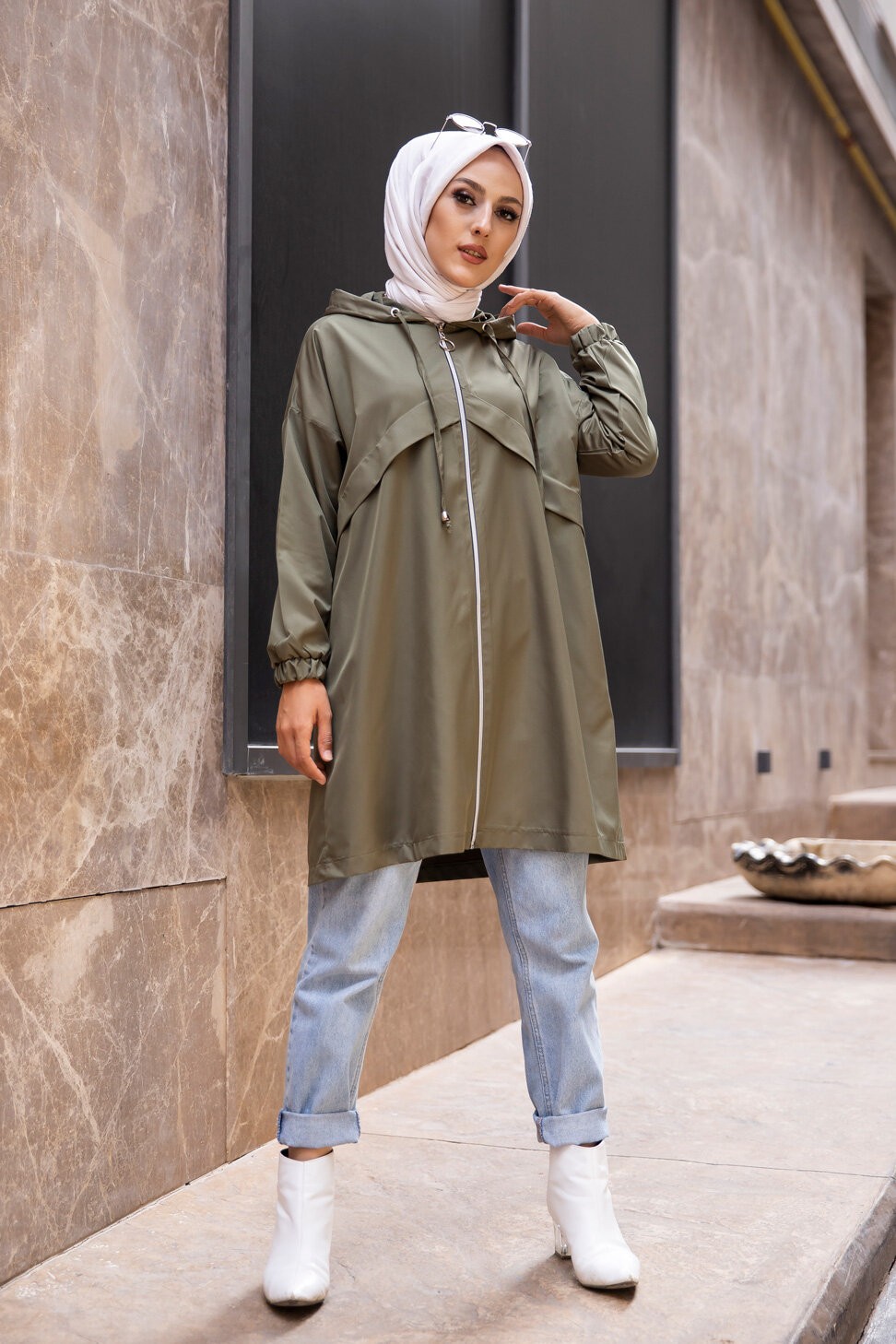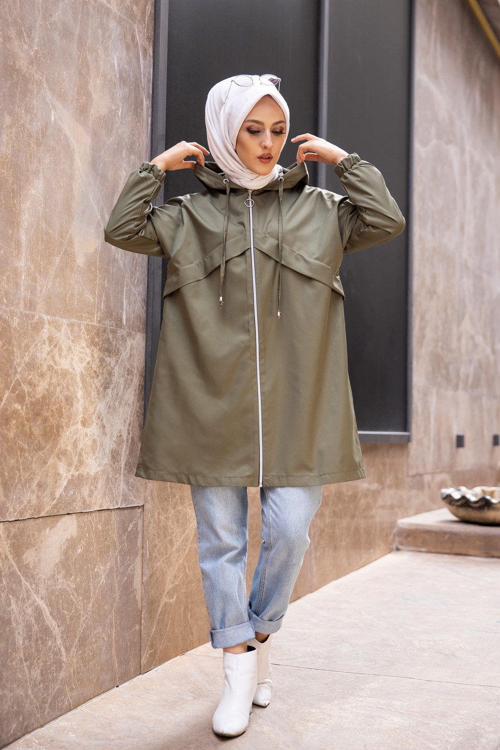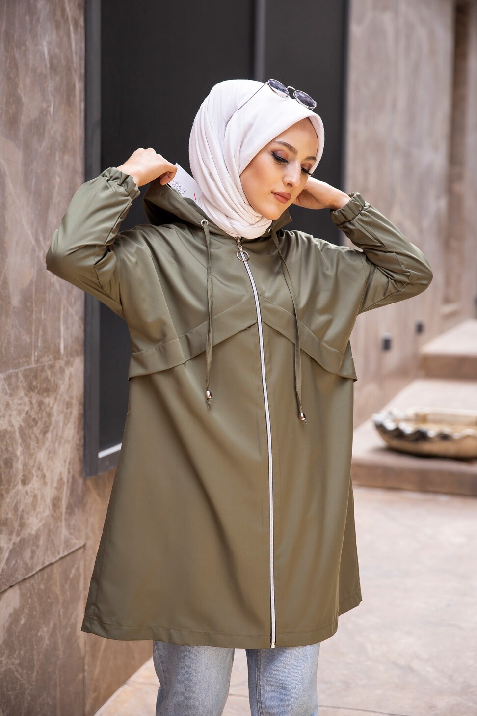 Trench impermeable pour femme (Vetement hijab automne hiver) - Couleur kaki
