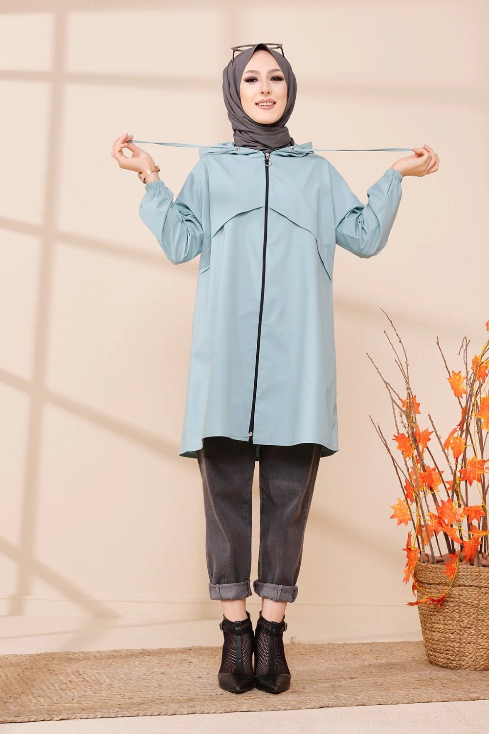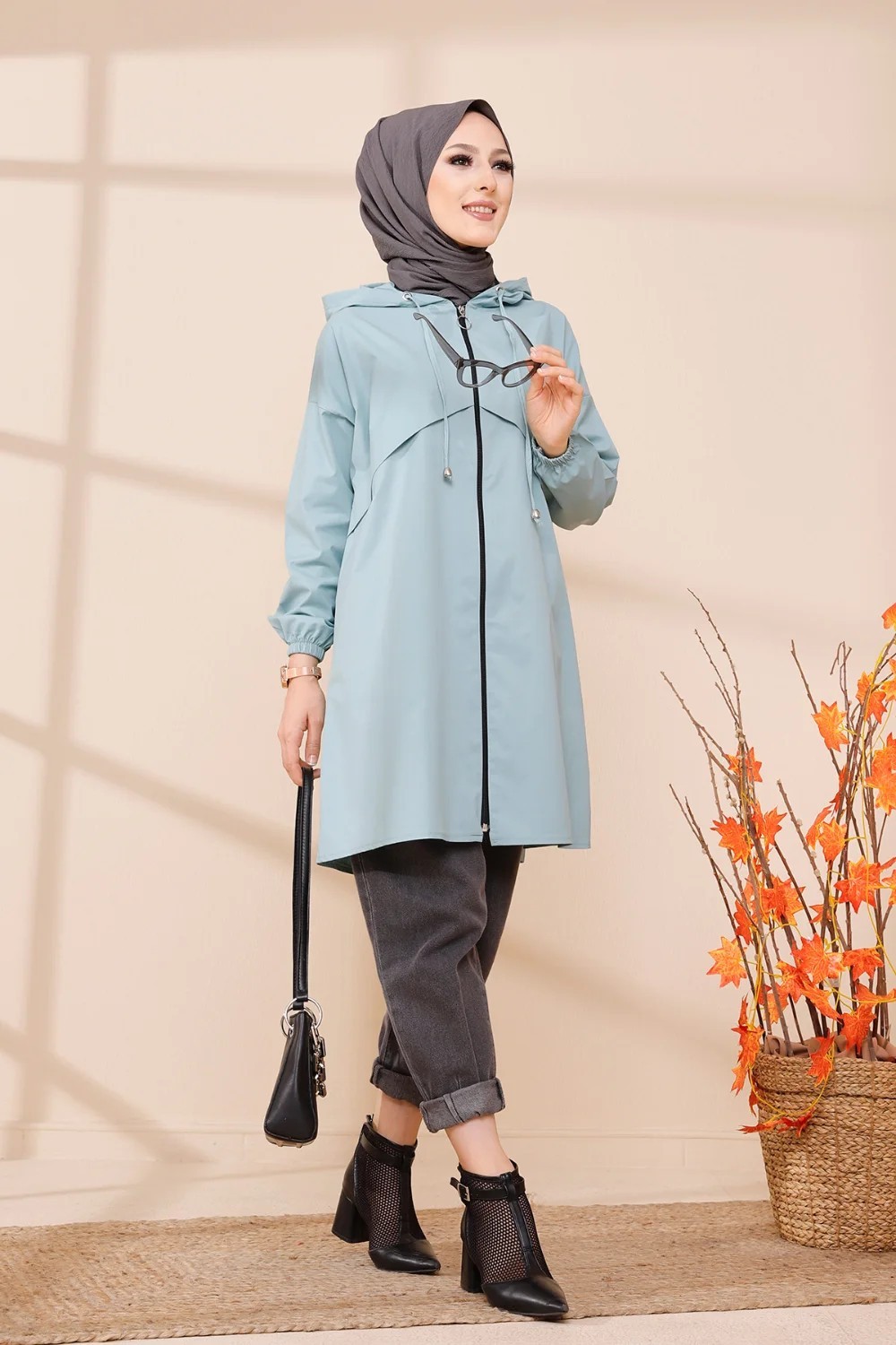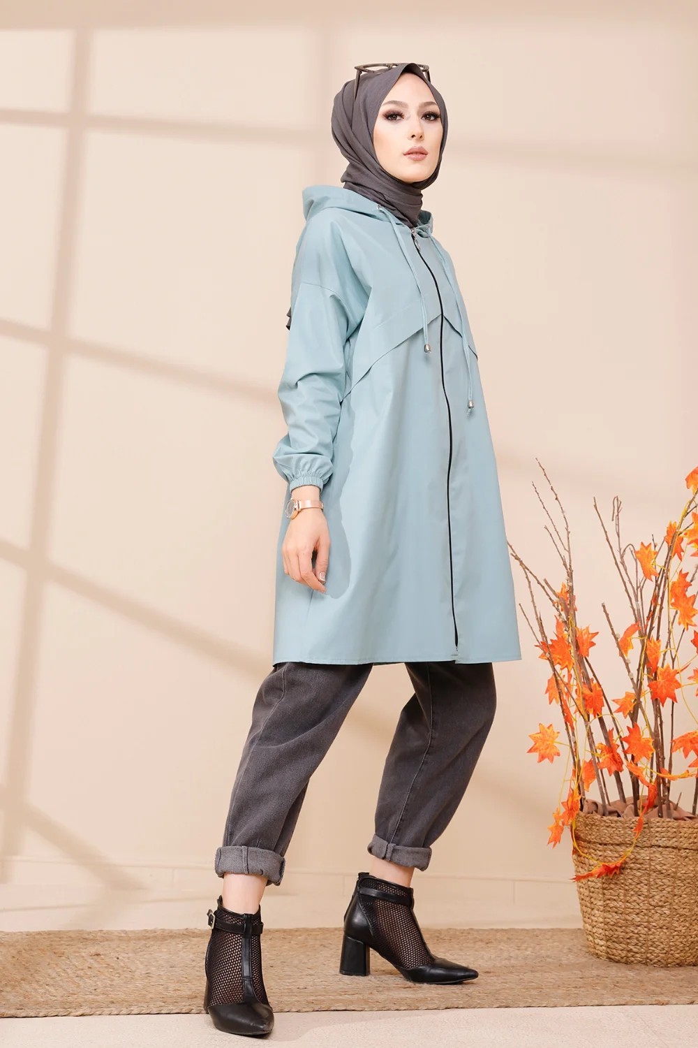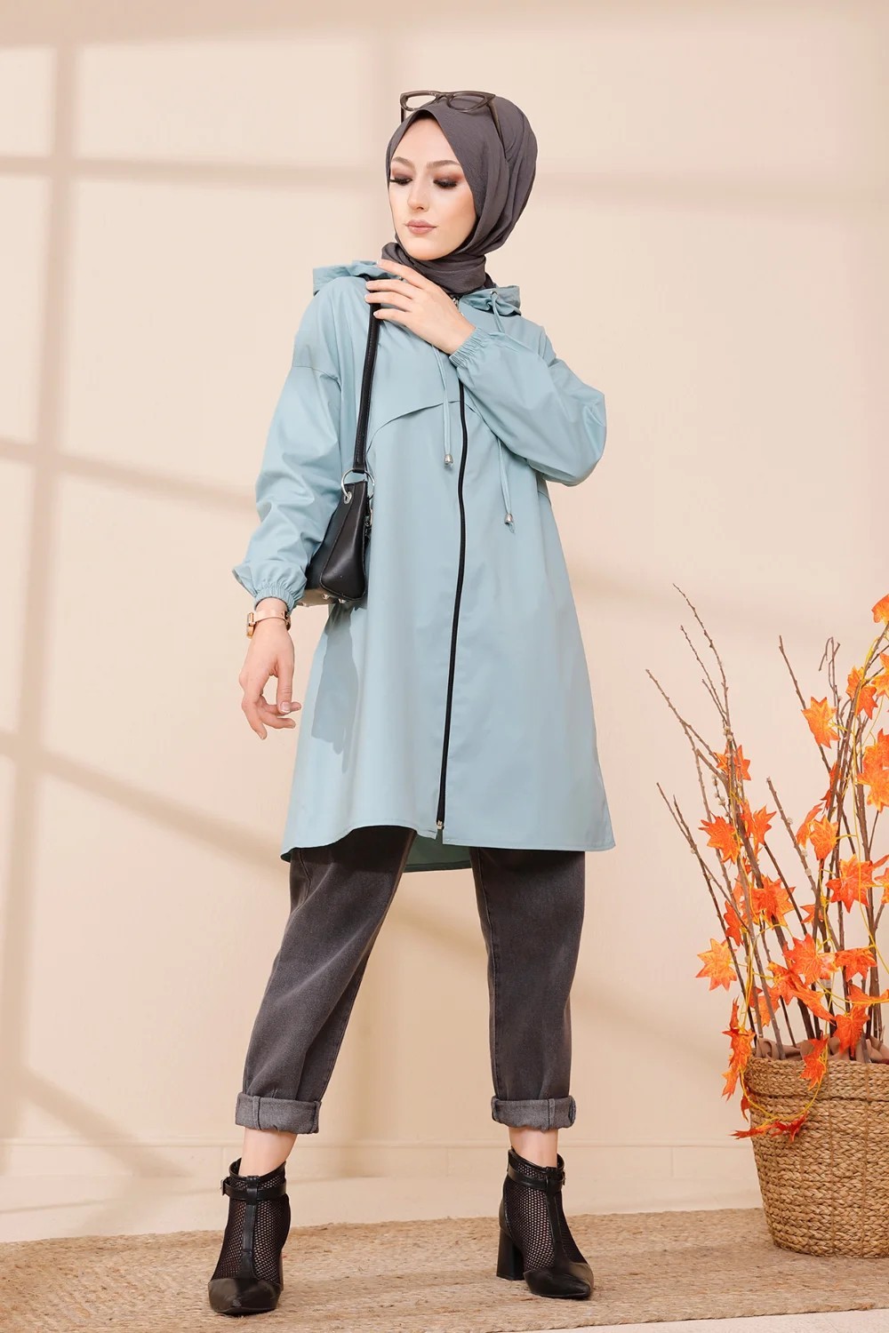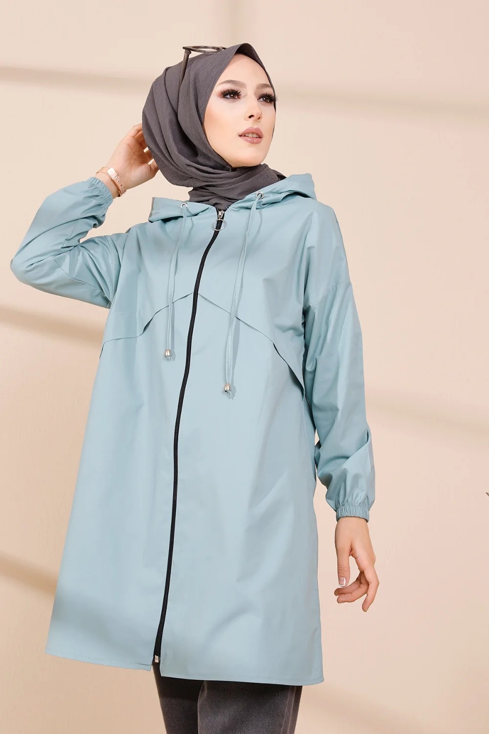 Trench impermeable pour femme (Vetement hijab automne hiver) - Couleur menthe