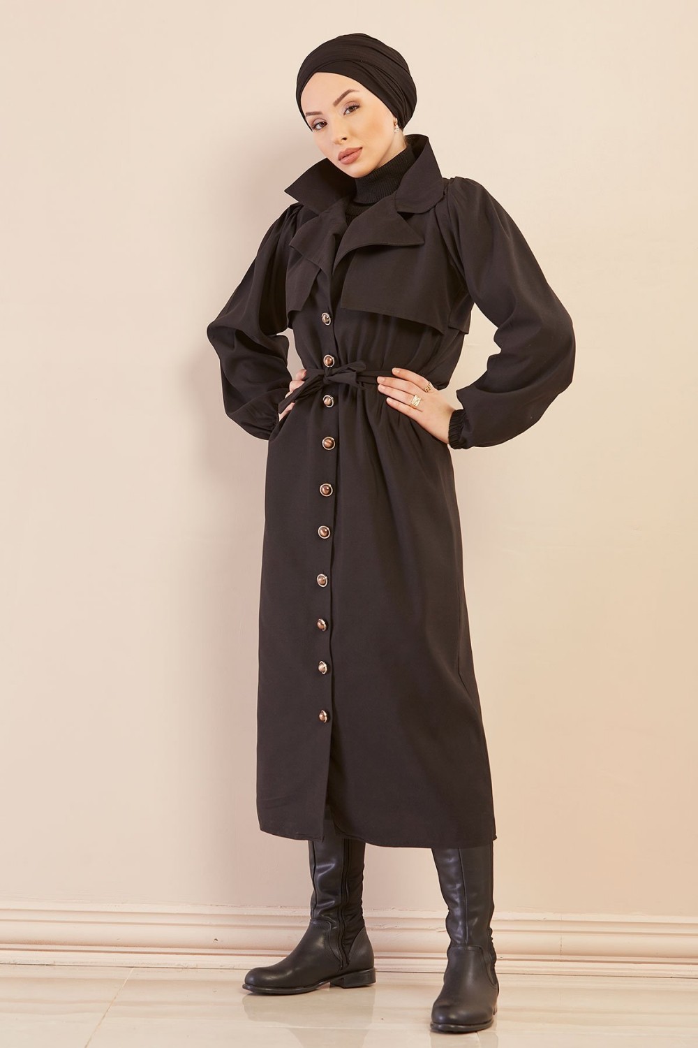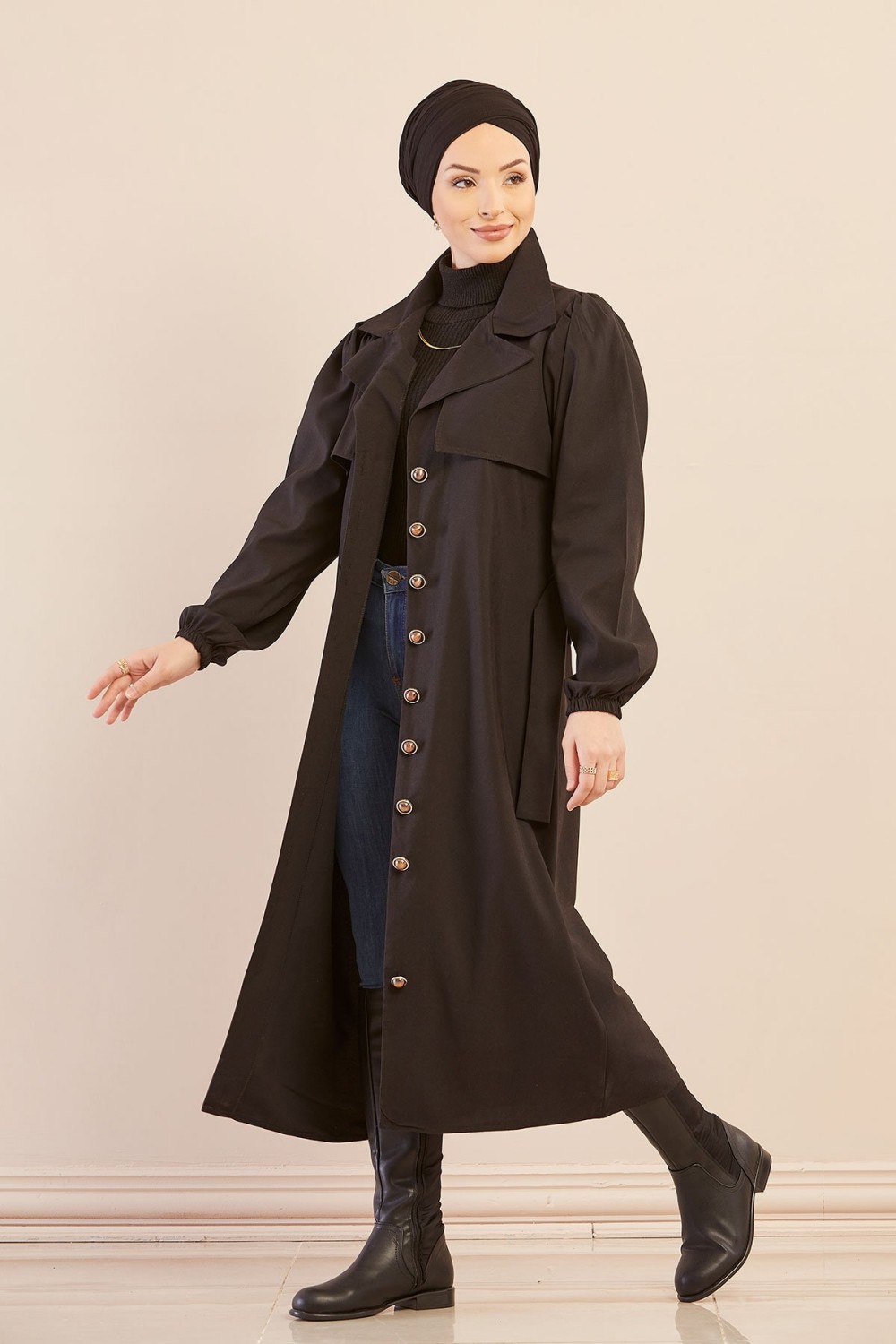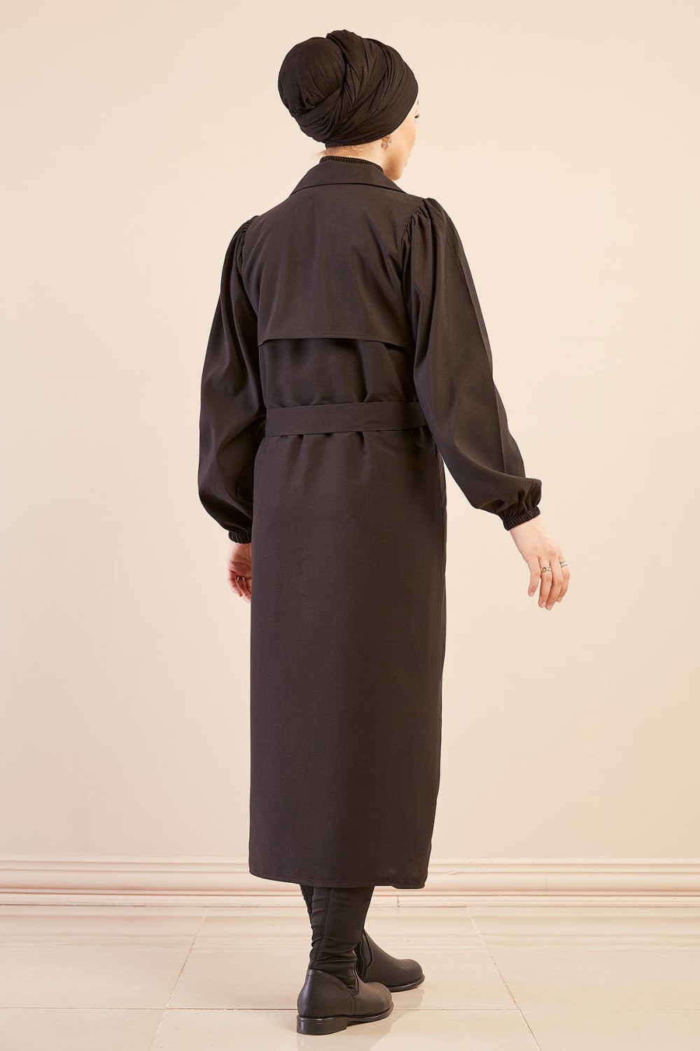 Trench-Coat mi-long pour femme (Tenue modeste fachion France) - Couleur noir - REF. 33095 (29.90 €) - En Promotion à 24.90 €