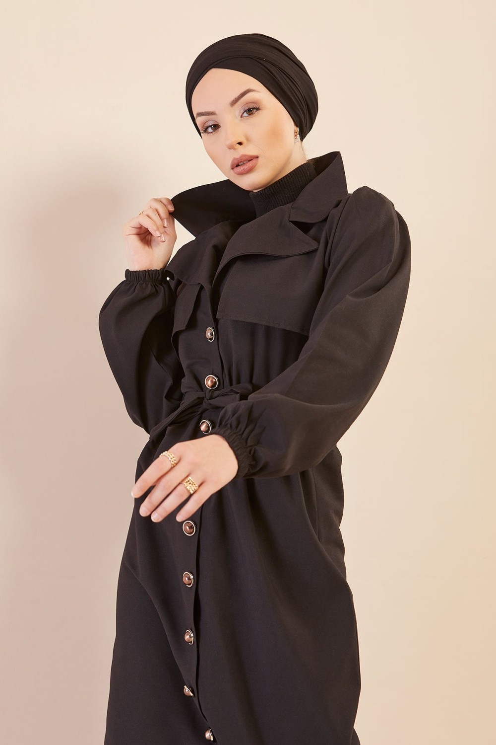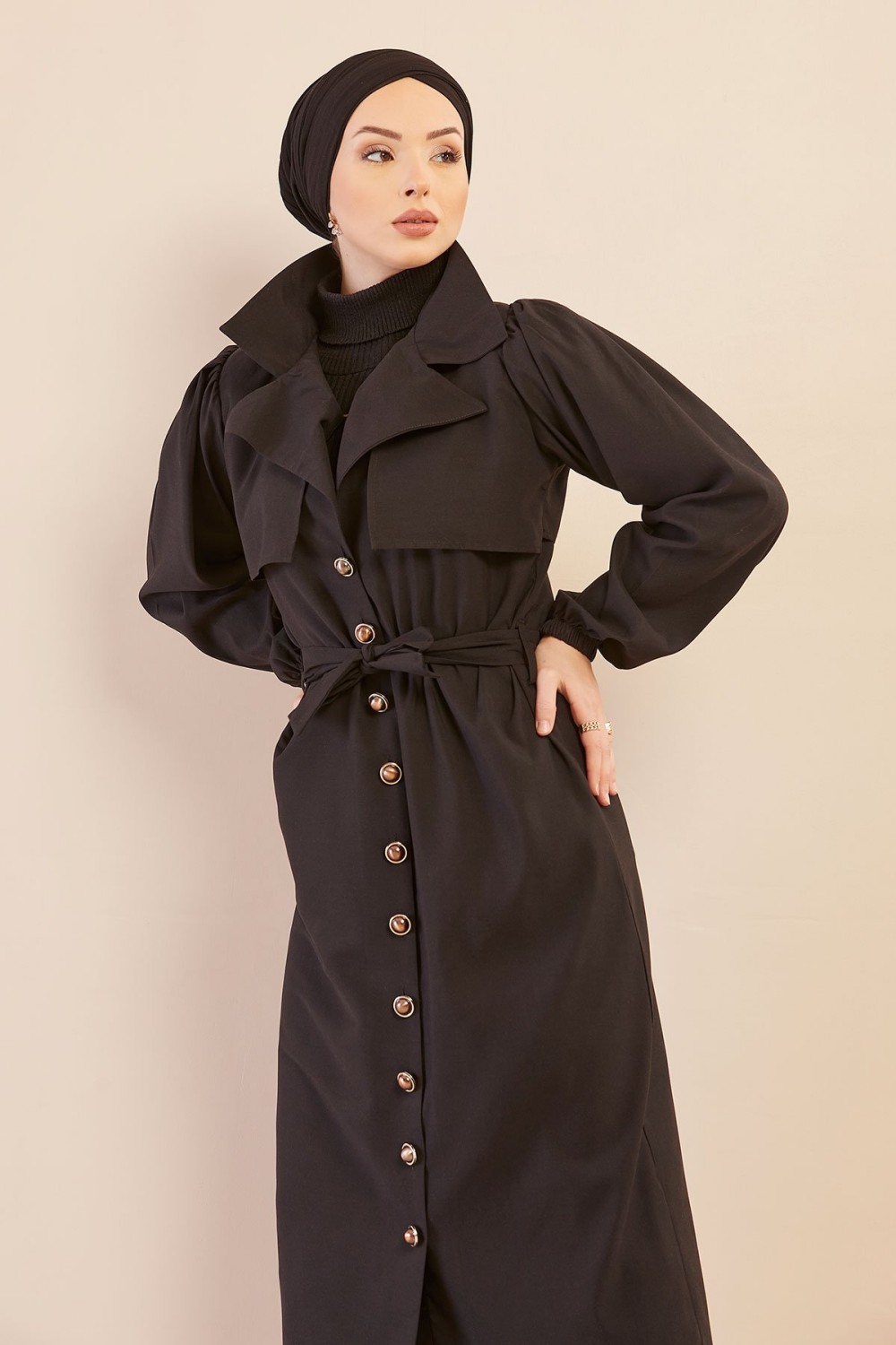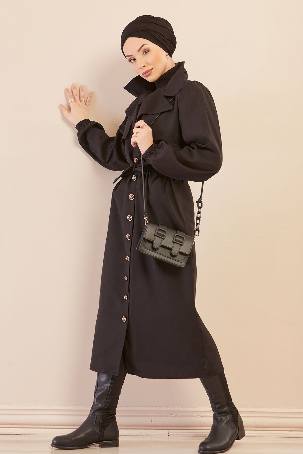 Trench-Coat mi-long pour femme (Tenue modeste fachion France) - Couleur noir - REF. 33095 (29.90 €) - En Promotion à 24.90 €