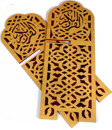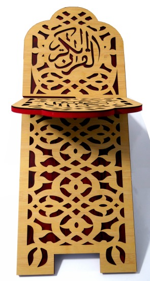 Sculpté en bois, pratique pour y poser un livre lorsqu'on s'assoit par terre pour lire et méditer. Facile à ranger (se plie). Généralmeent utilisé dans les mosquées ou les maisons pour lire le Coran.