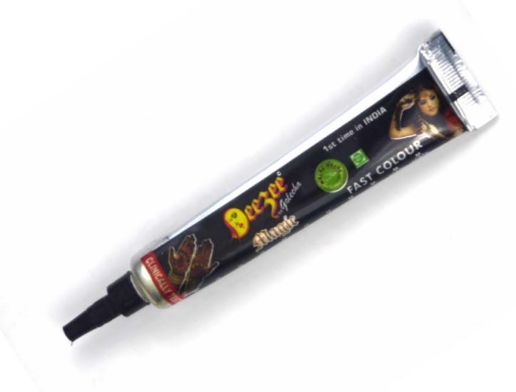 Tube de henné noir marque Deezee. Poids: environ 25 grammes. Fabriqué en Inde. Certifié Halal et 100% végétal