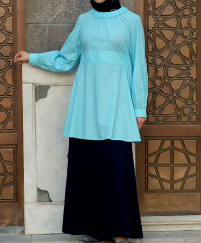 Chemise longue et ample pour femme (Vetement hijab chic et mastour) - Couleur bleu clair - REF. 35640 (28.00 €)