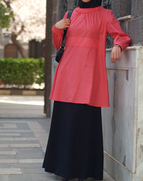 Chemise à froufrou (Vetement femme musulmane en ligne) - Couleur Rouge - REF. 33146 (24.90 €)