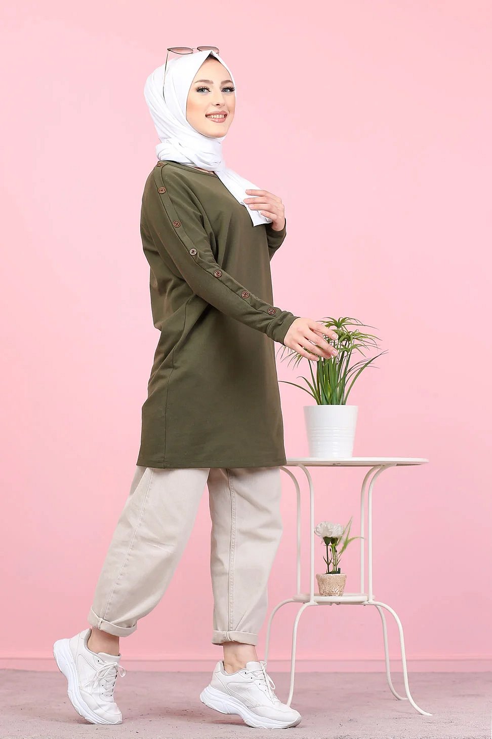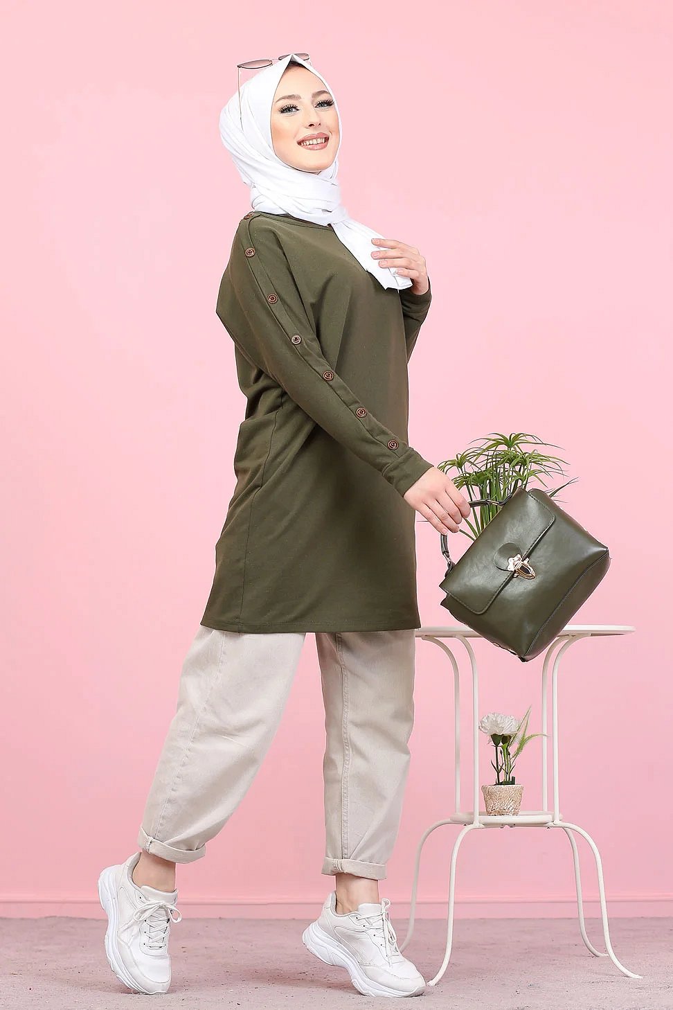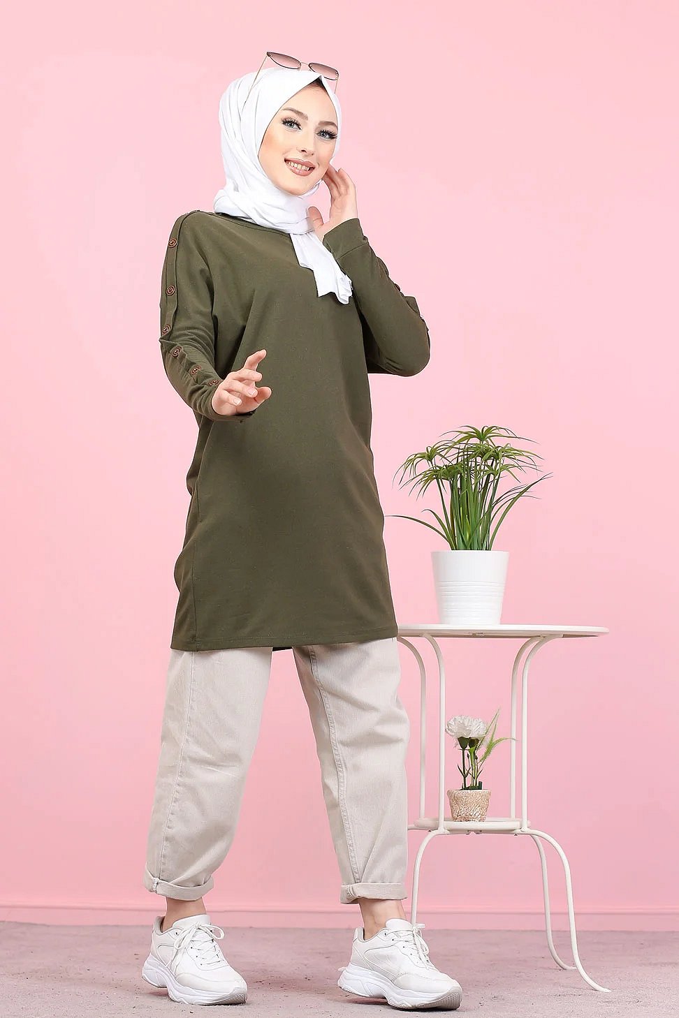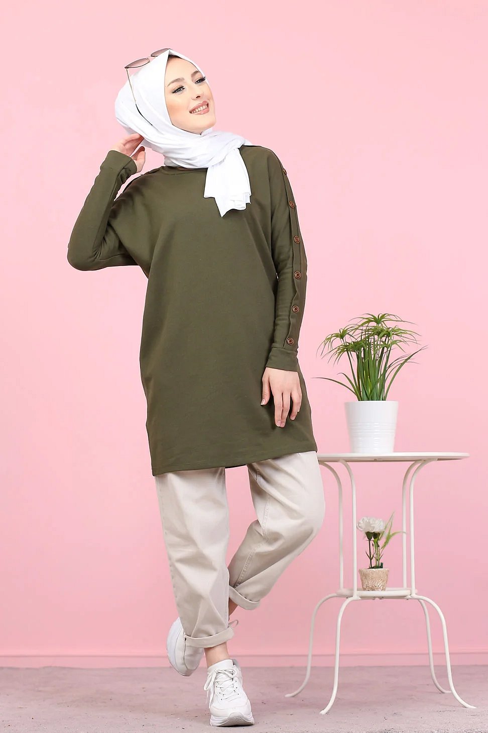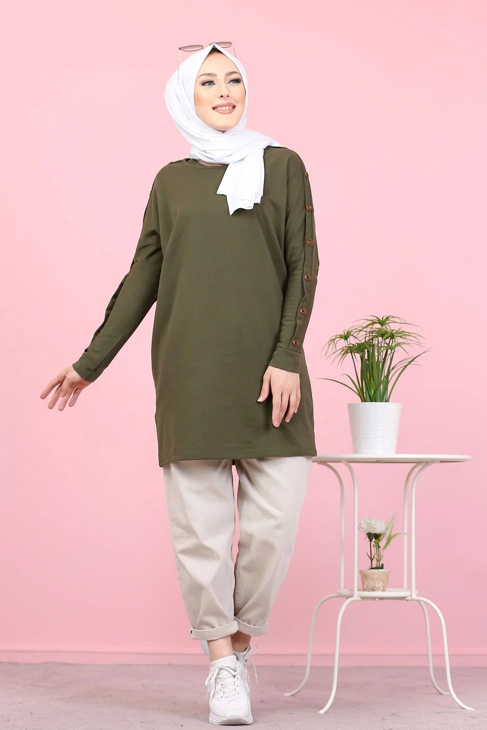 Tunique Casual Style Sweat-Shirt pour femme (Hijab moderne) - Couleur kaki