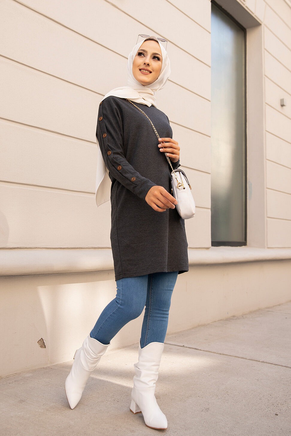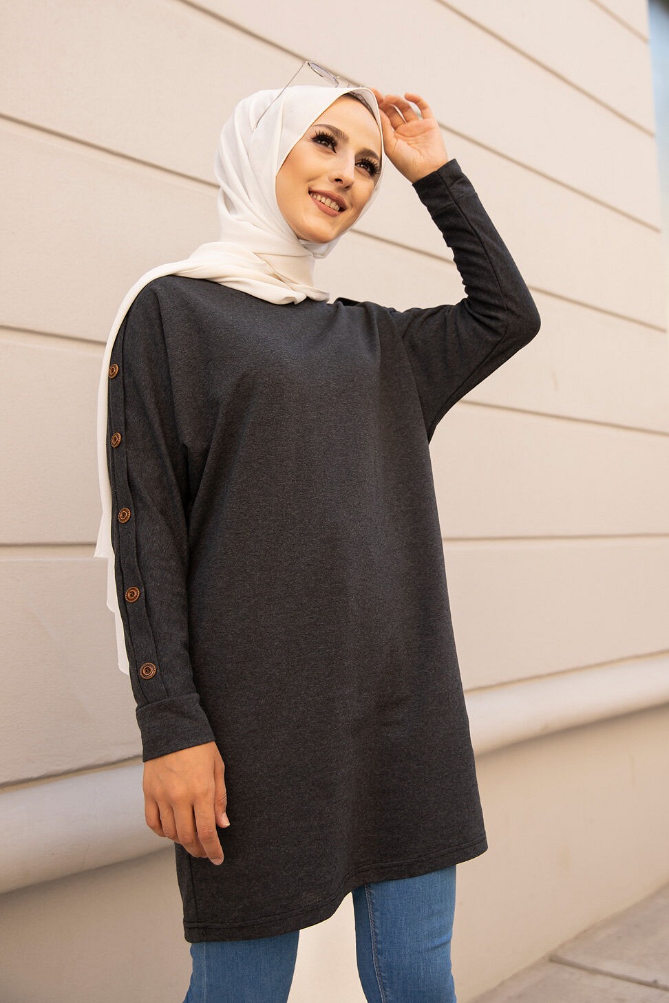 Tunique Casual Style Sweat-shirt (Mode Hijab pour femme) - Couleur gris chine (Anthracite)