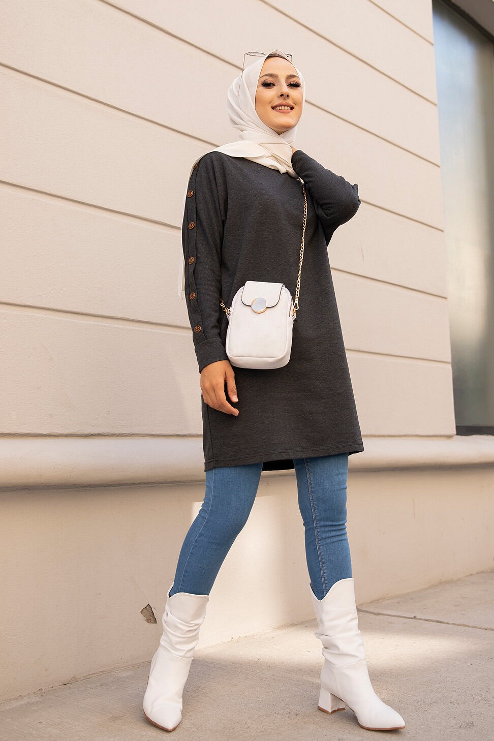 Tunique Casual Style Sweat-shirt (Mode Hijab pour femme) - Couleur gris chiné (Anthracite) Vetement & Accessoire
