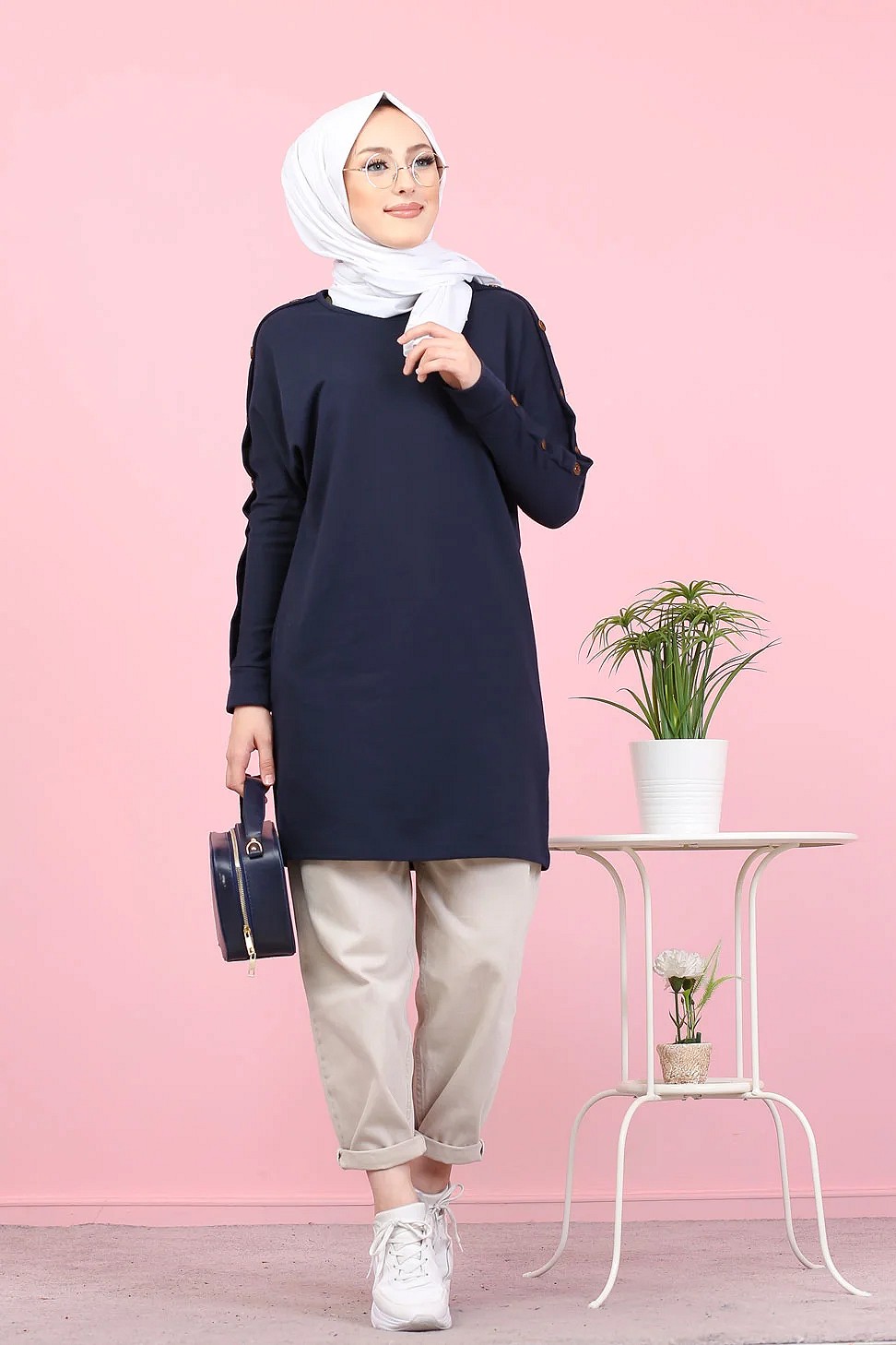 Tunique Casual Style Sweat-shirt pour femme (Modeste Fachion) - Couleur bleue marine Vetement & Accessoire