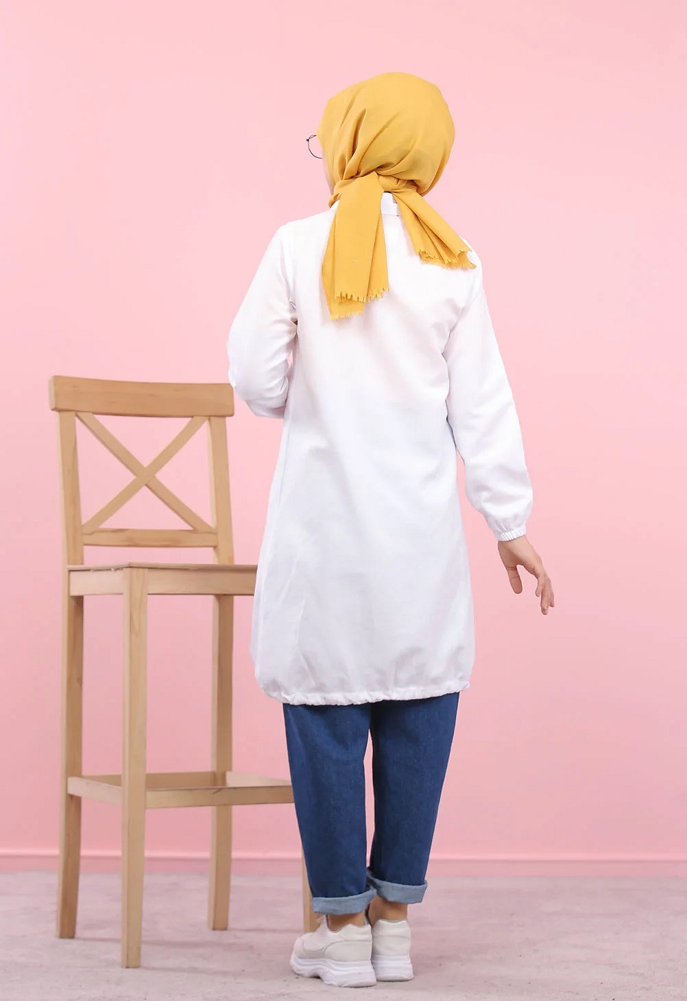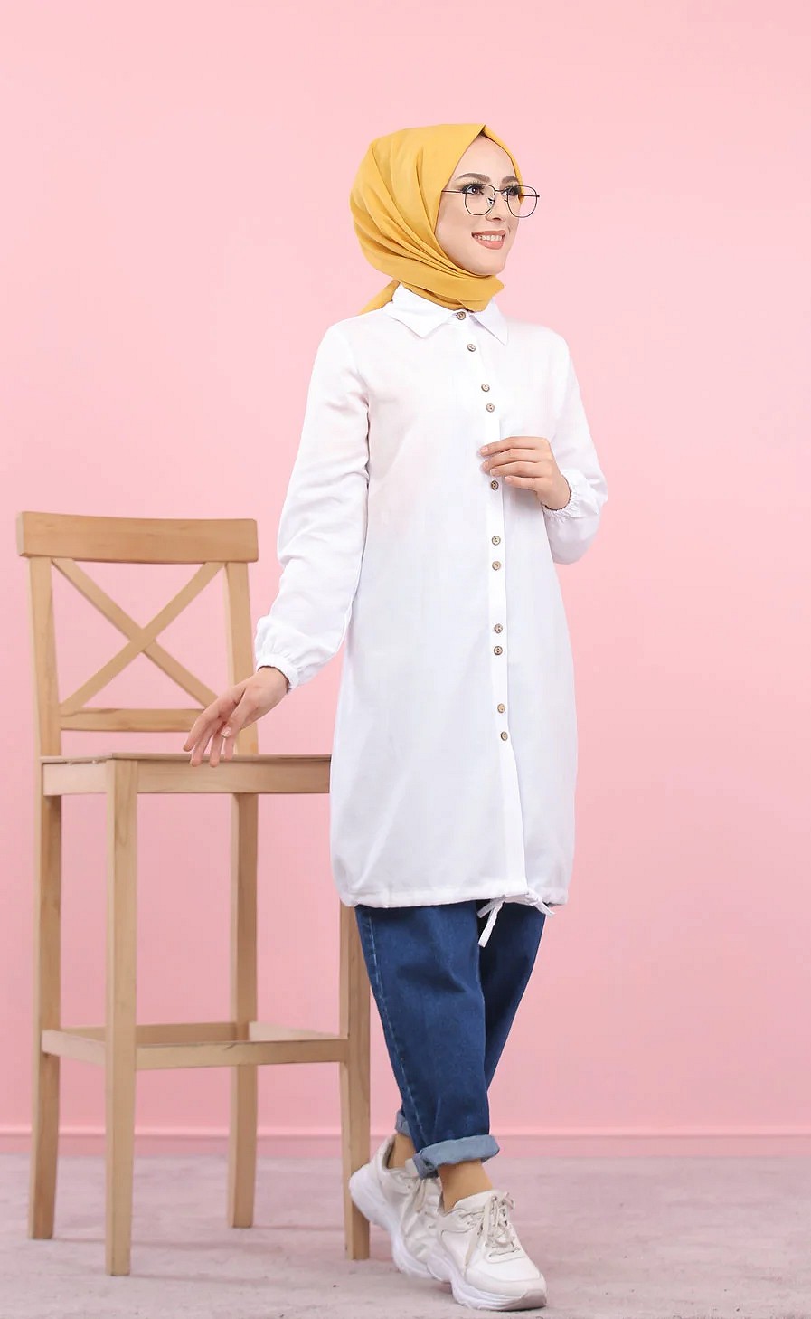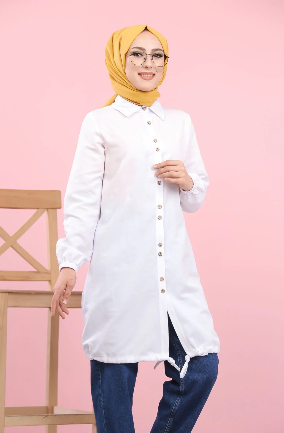 Tunique-Chemise ample boutonnee (Vetement decontracte femme voilee) - Couleur blanche
