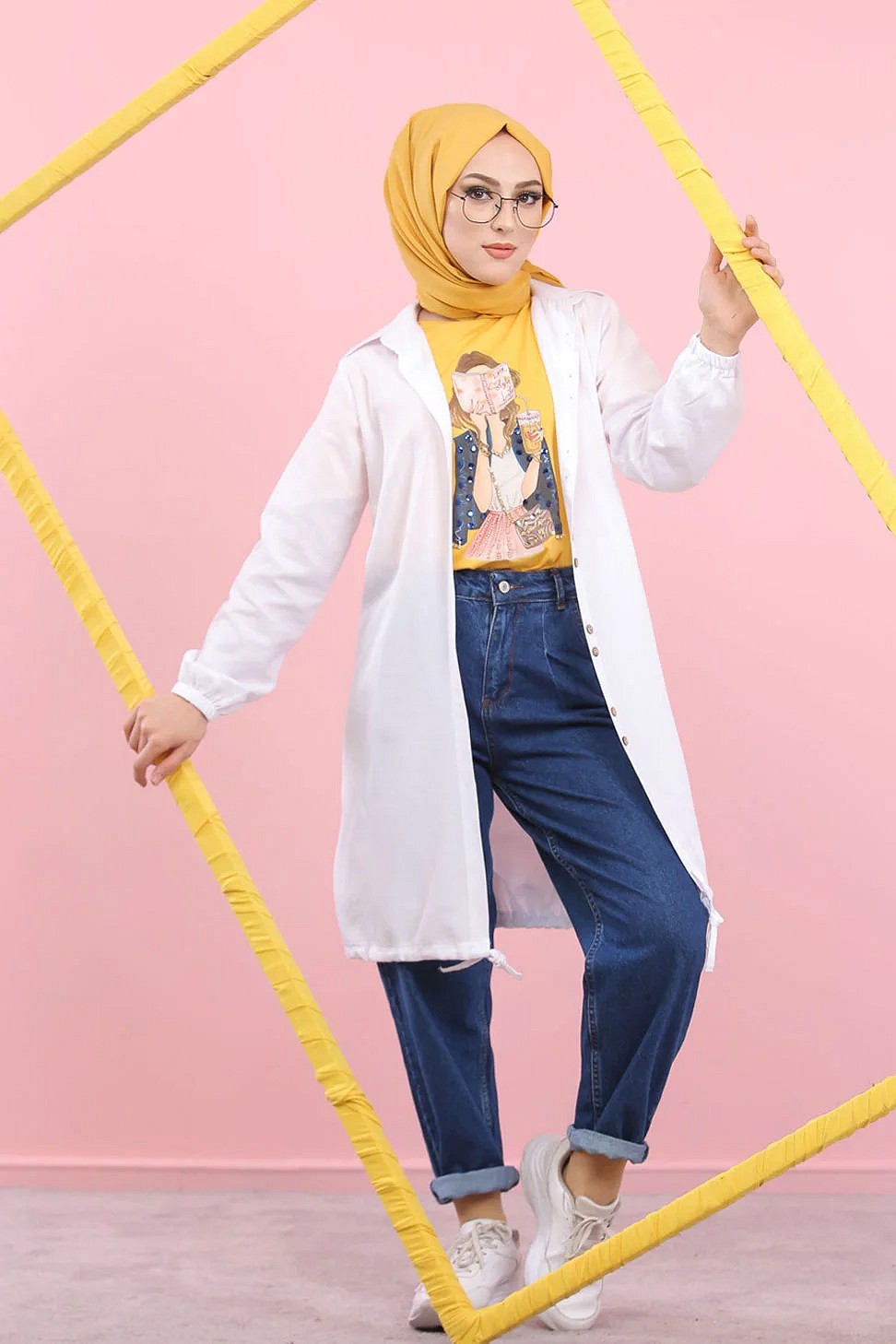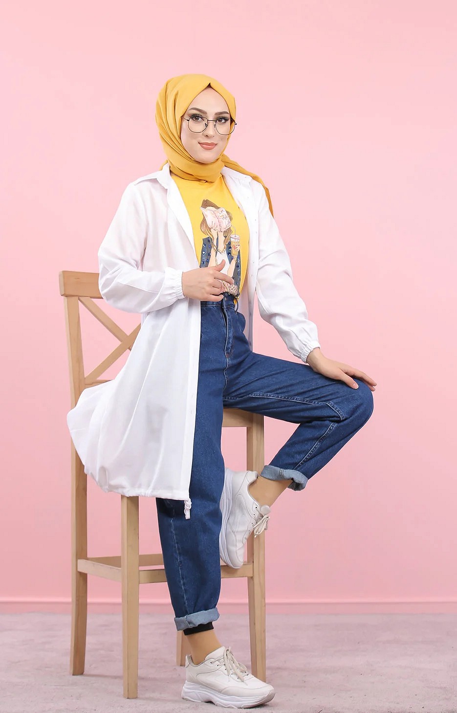 Tunique-Chemise ample boutonnée (Vetement décontracté femme voilée) - Couleur blanche Vetement & Accessoire