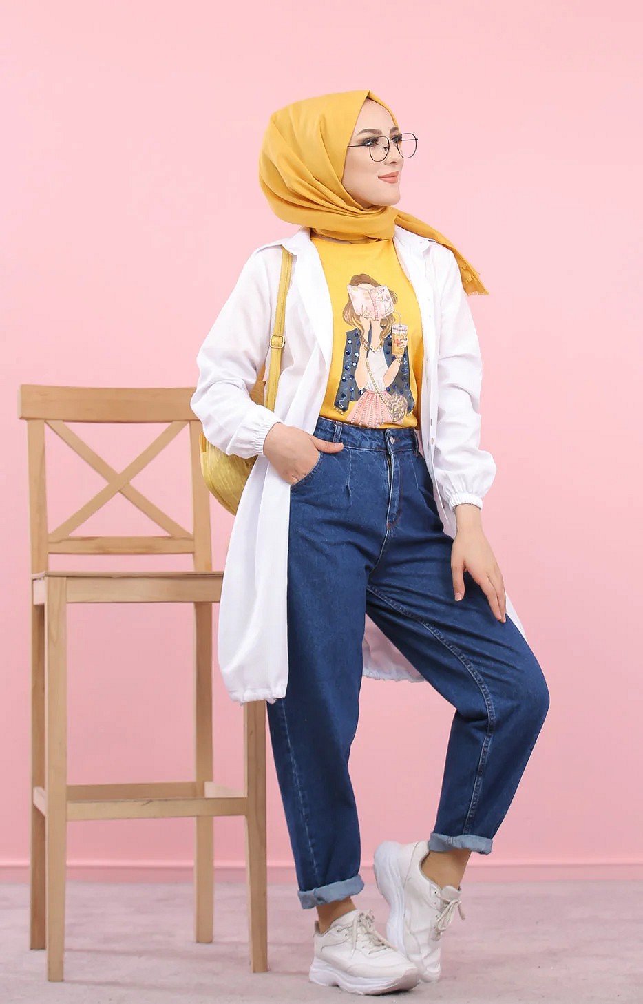 Chemise longue et ample pour femme (Vetement oversize pour hijab) - Couleur moutarde