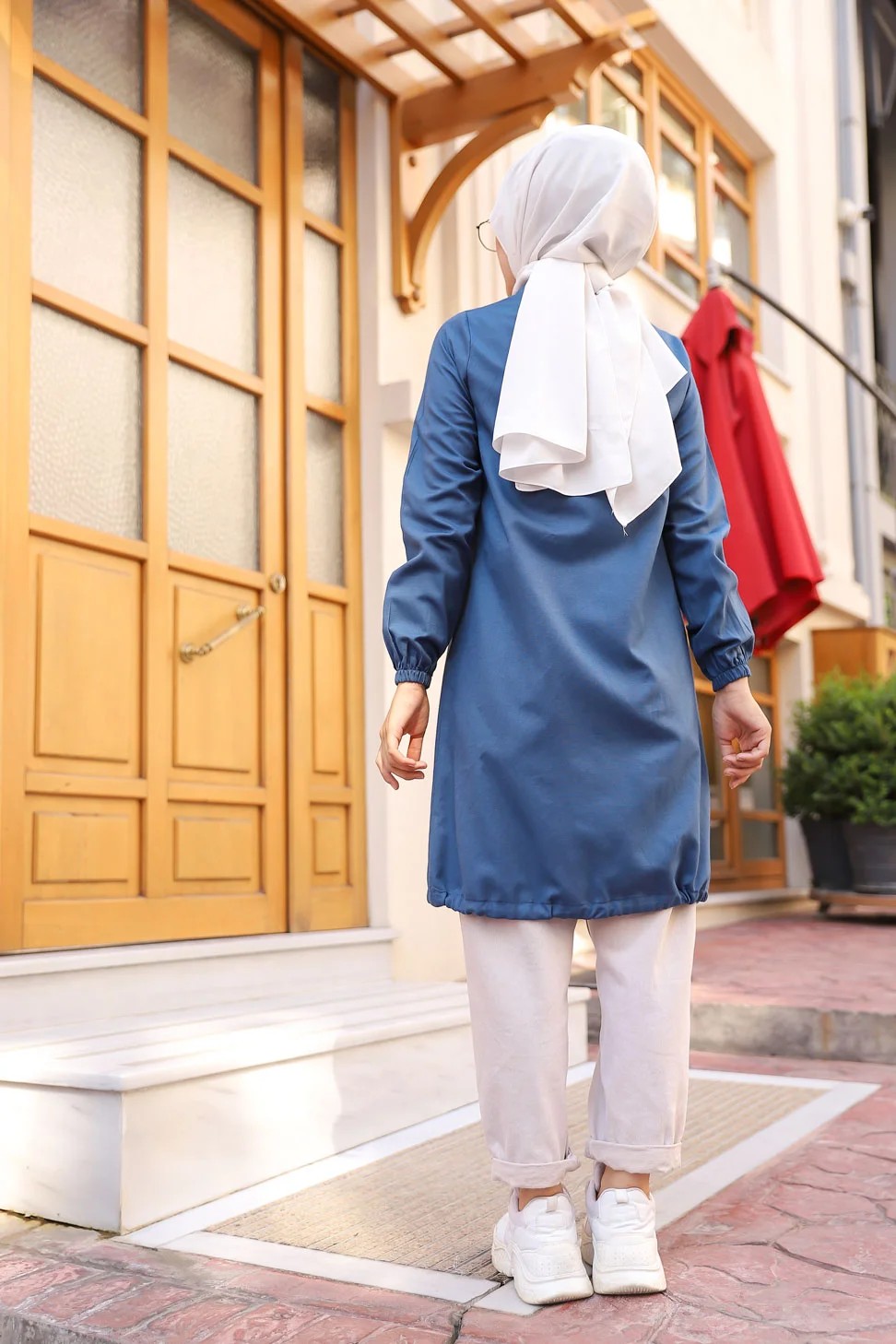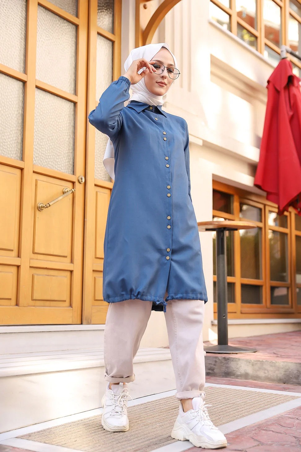 Tunique-Chemise ample boutonnée (Vetement décontracté femme voilée) - Couleur bleu Vetement & Accessoire