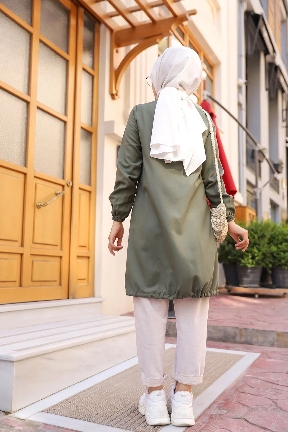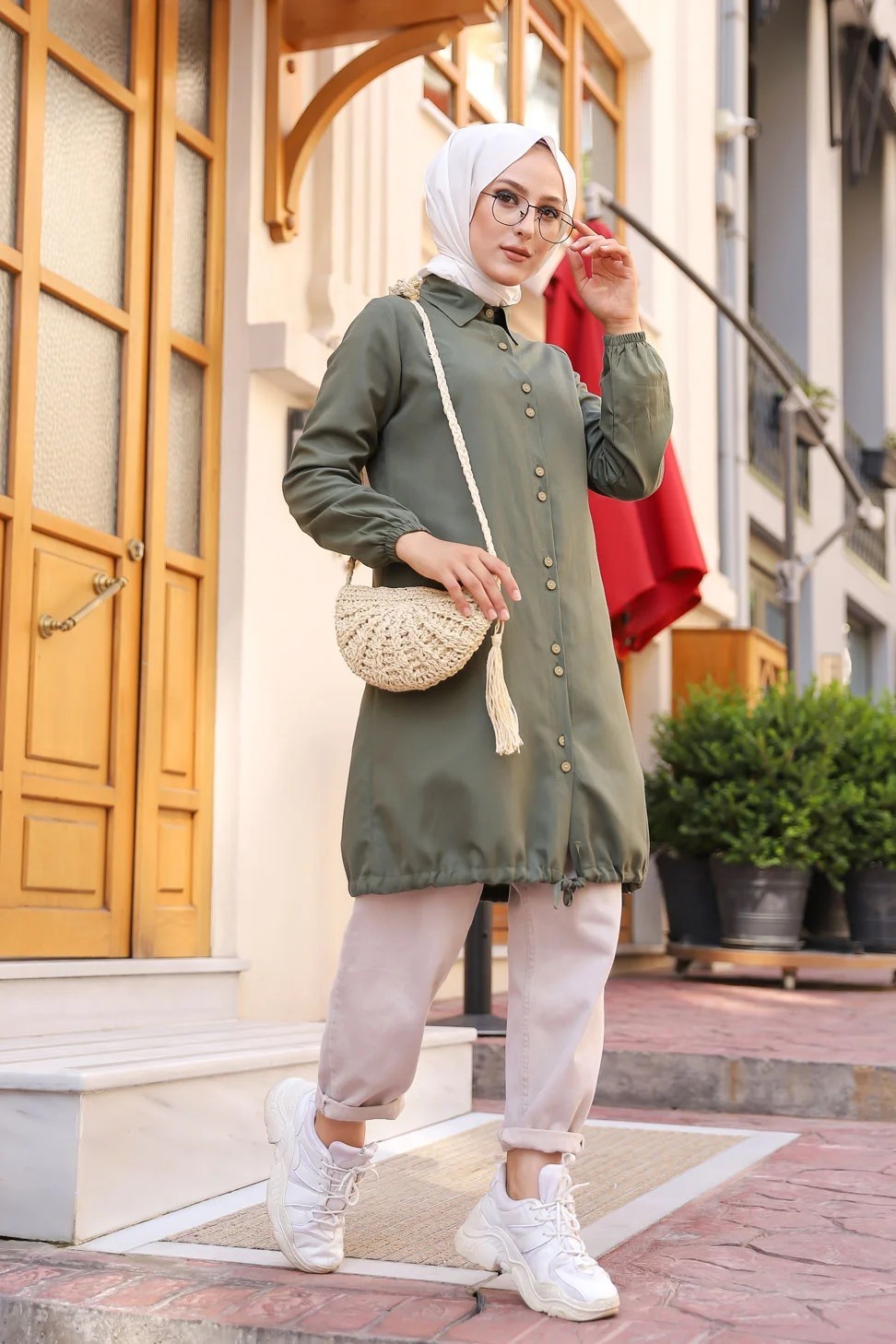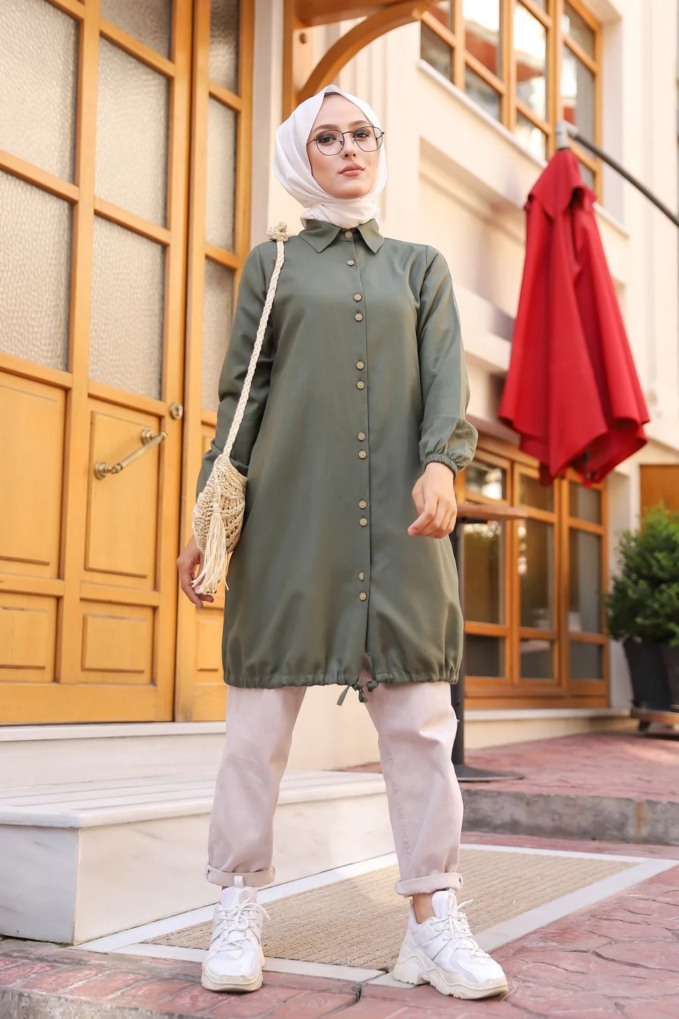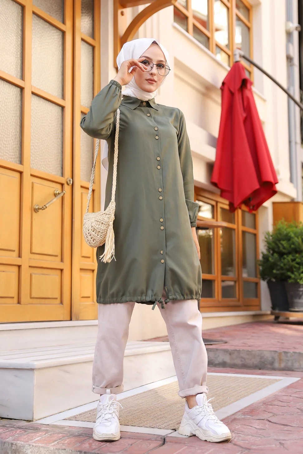 Tunique-Chemise ample boutonnee (Vetement moderne et decontracte pour femme voilee) - Couleur kaki