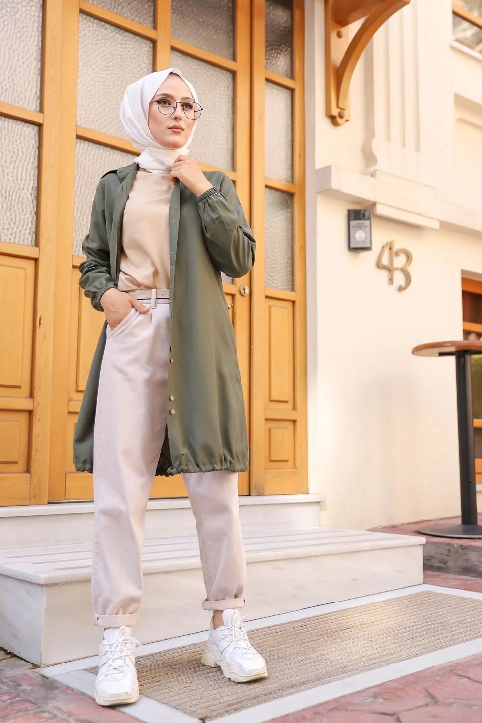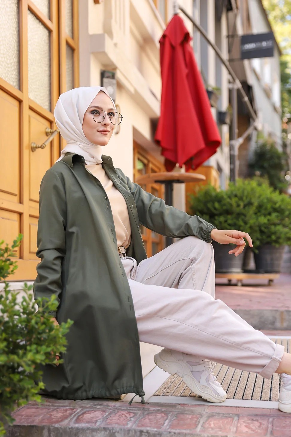 Veste mi-longue de couleur kaki (Vêtement turque moderne et chic pour femme) - REF. 33361 (29.90 €) - En Promotion à 22.90 €