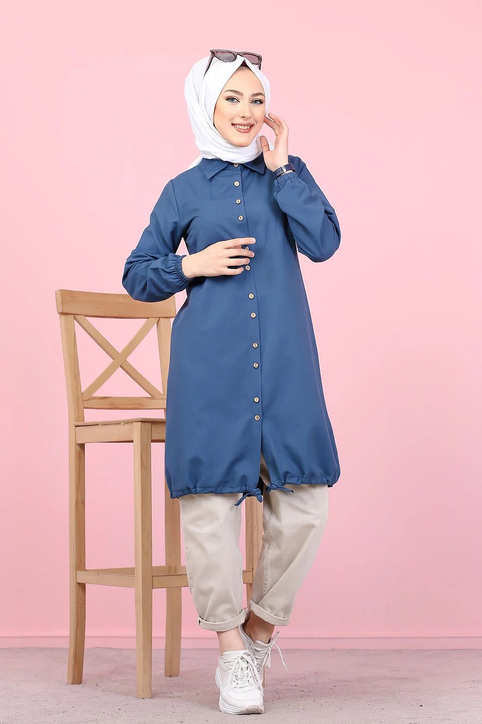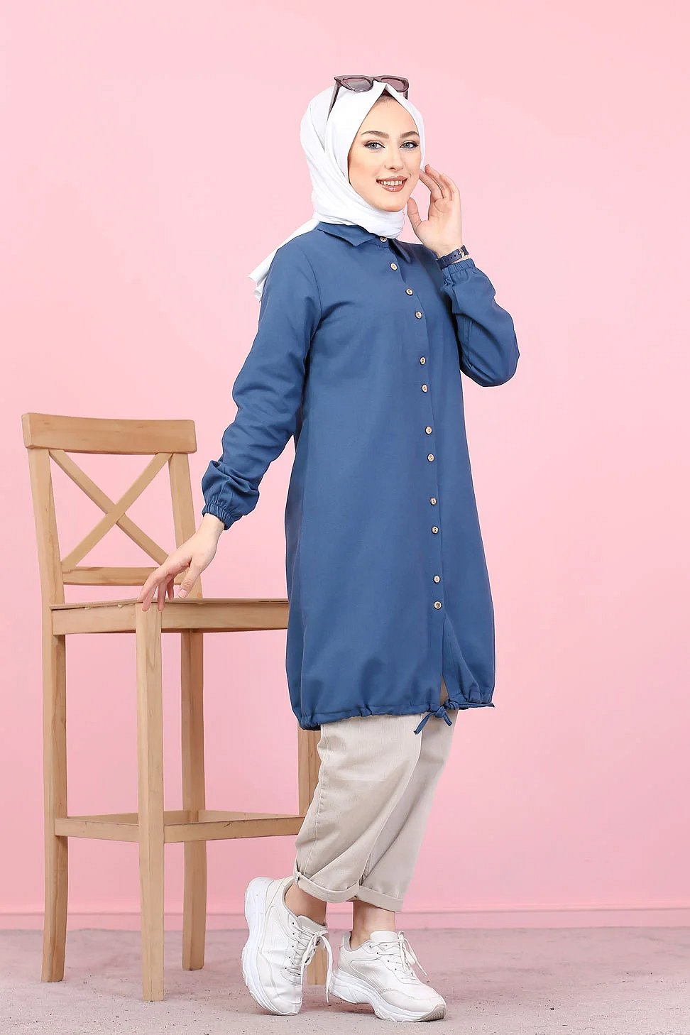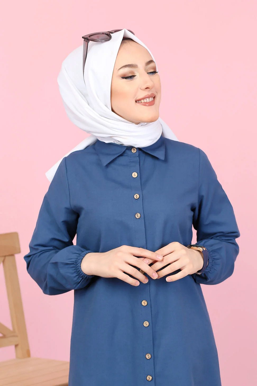 Tunique-Chemise ample boutonnee (Vetement moderne et decontracte pour hijab) - Couleur bleu Petrole