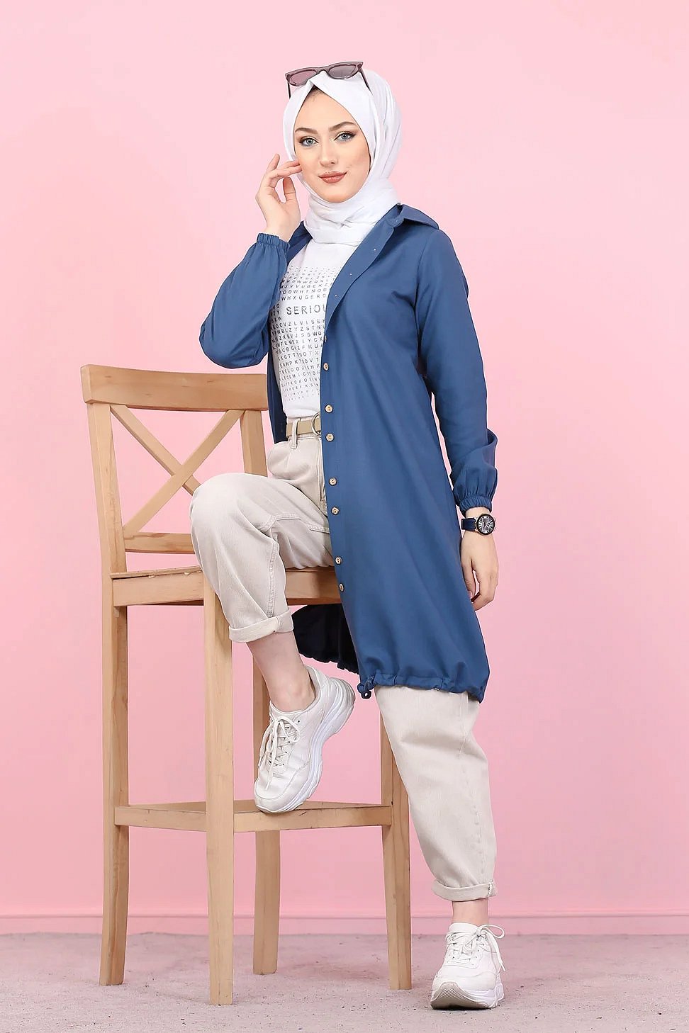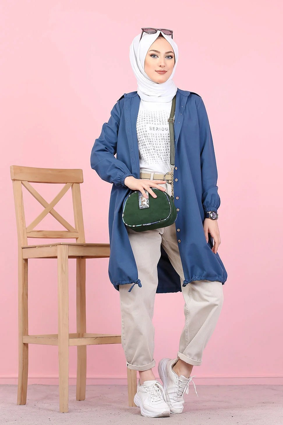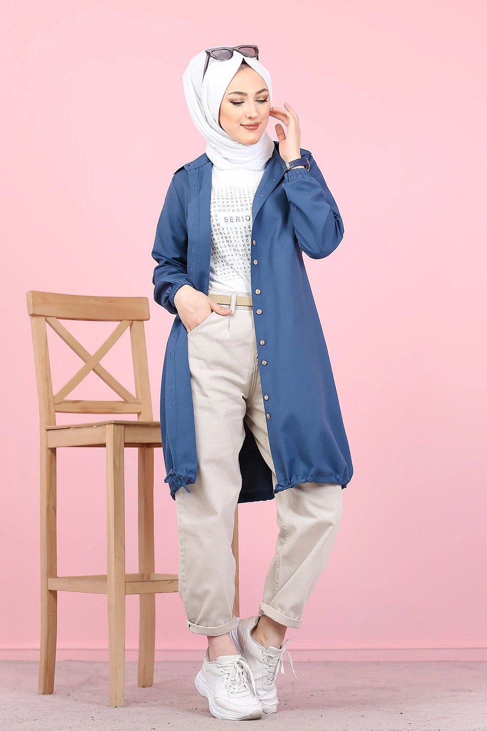 Trench femme - Veste longue (Vetement hijab pour musulmane) - Couleur bleu - REF. 36469 (29.90 €)