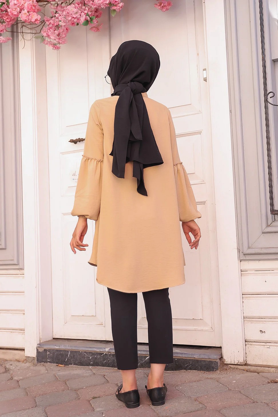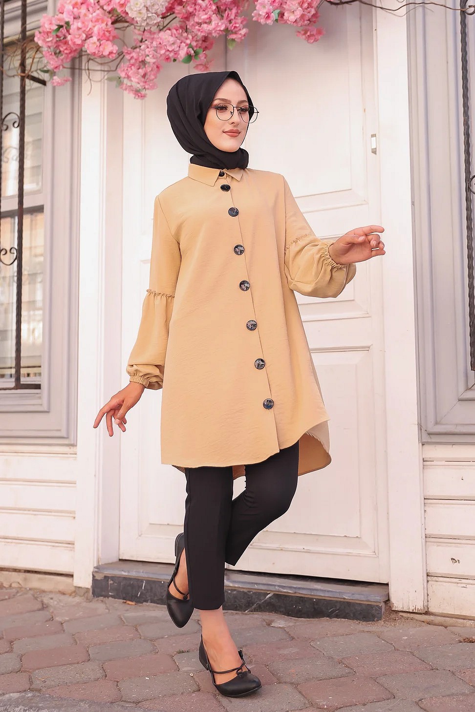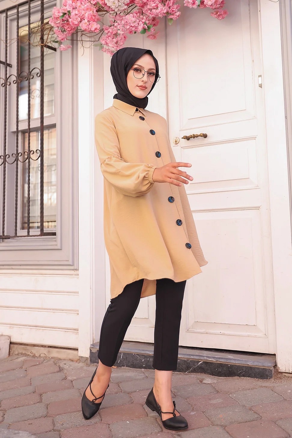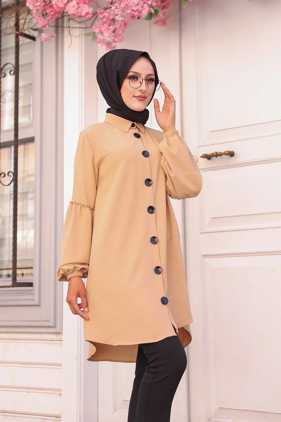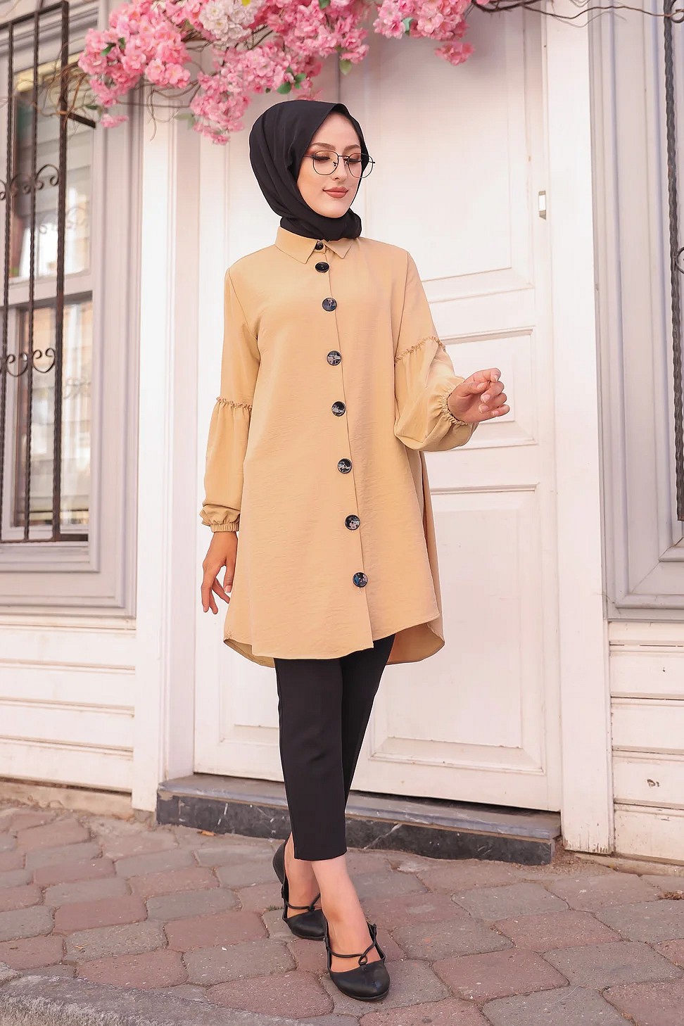 Tunique Chemise ample fermeture boutons pour femme (Vetement Mastour Hijab) - Couleur beige