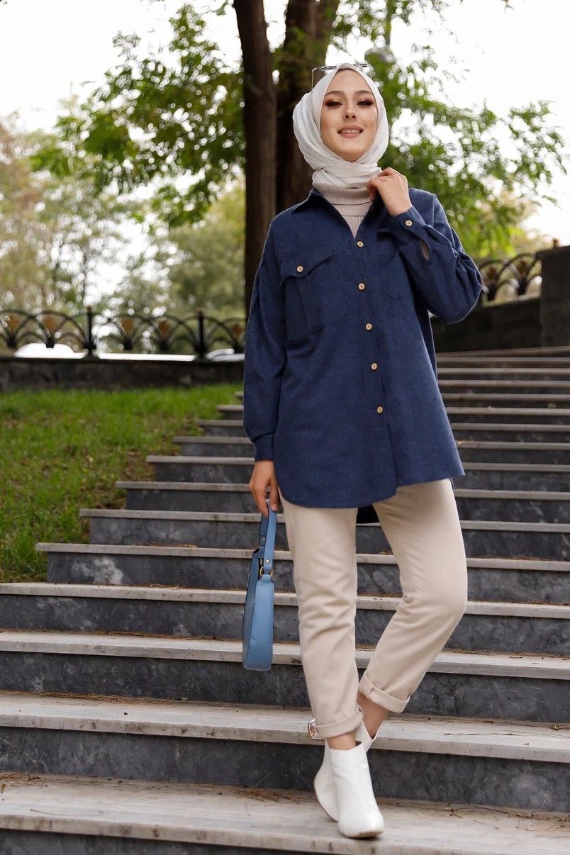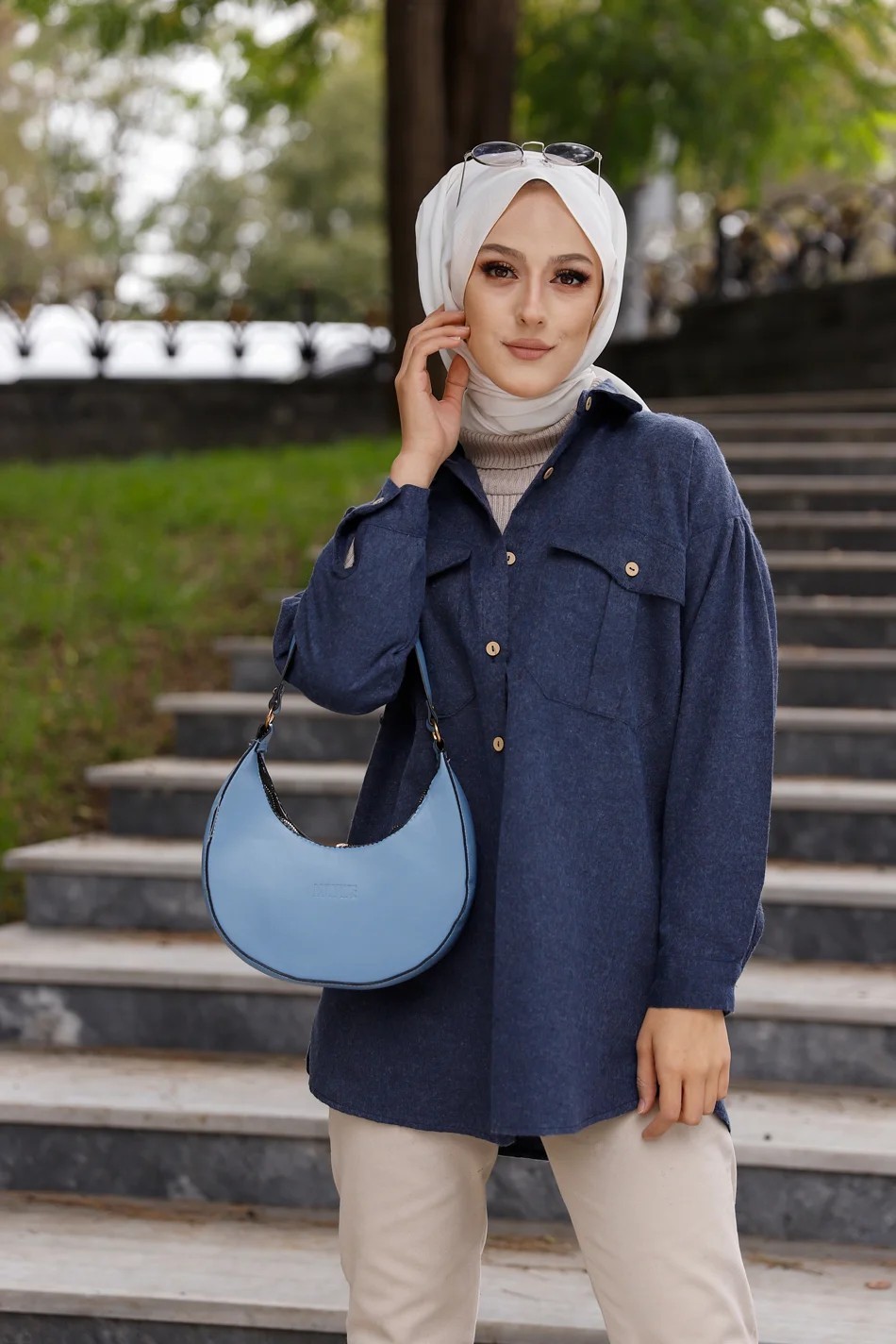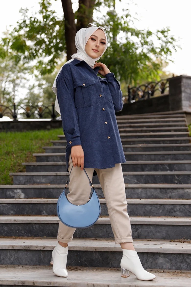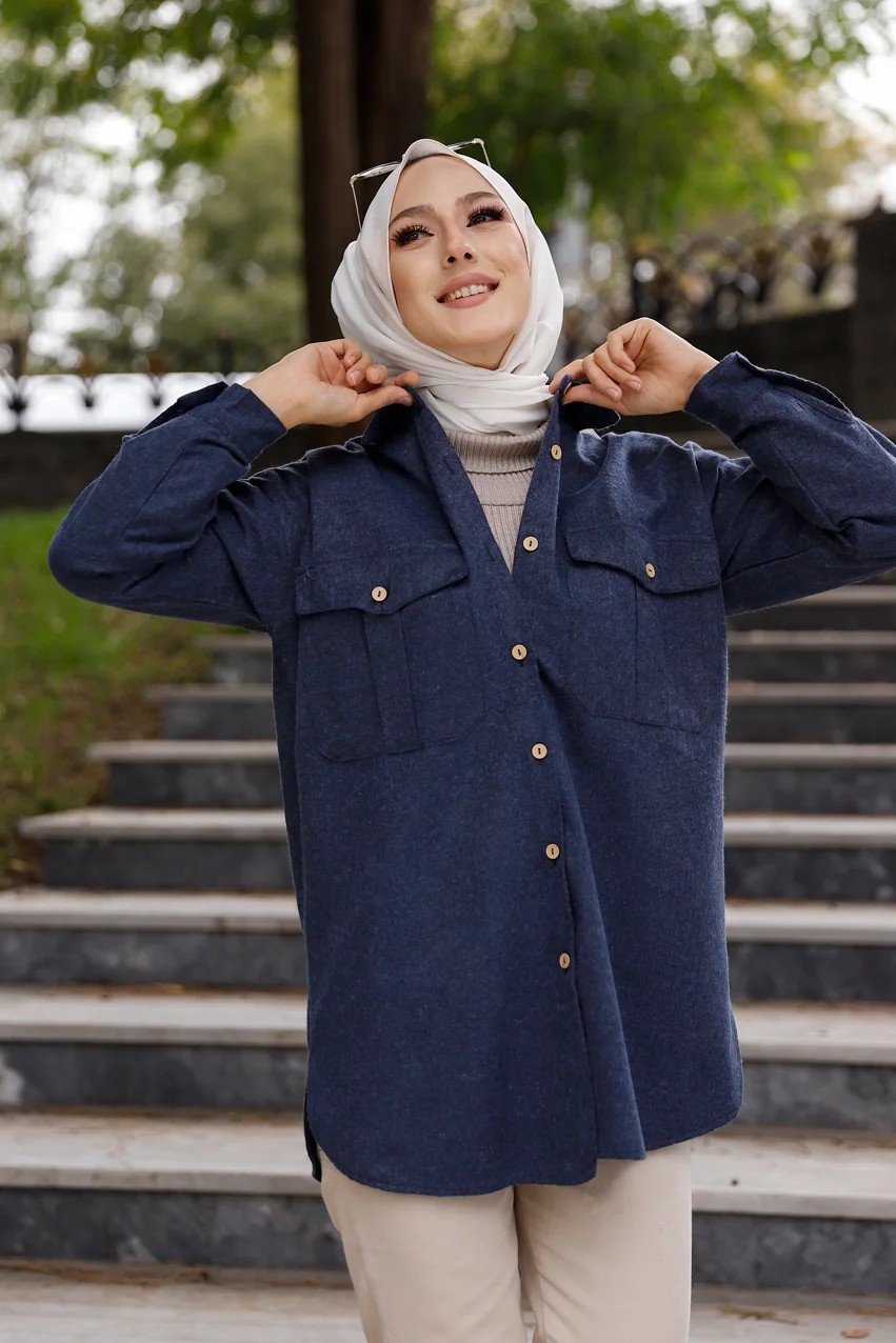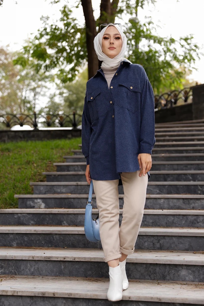 Tunique-Chemise casual pour femme avec deux grandes poches - Couleur bleu marine Vetement & Accessoire