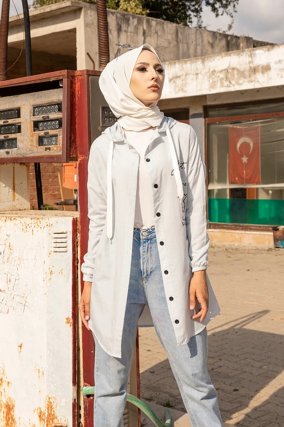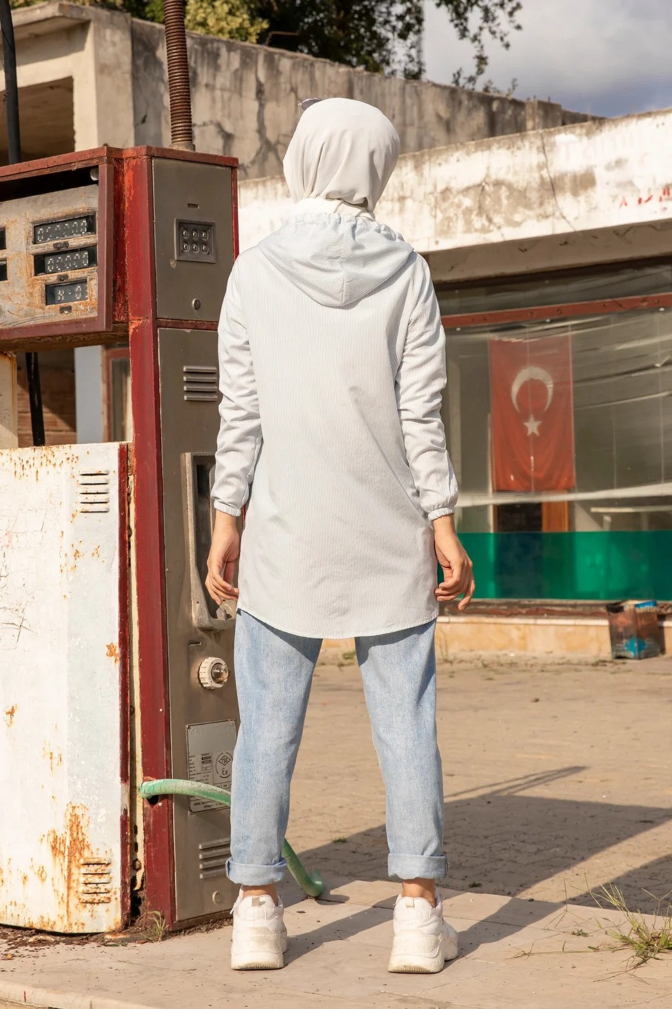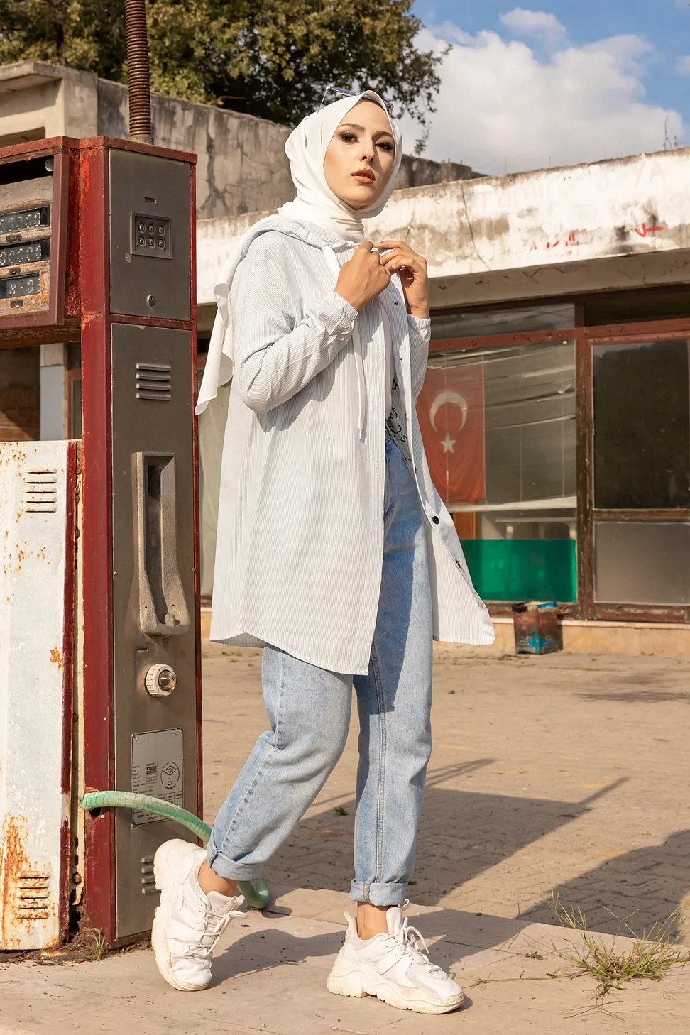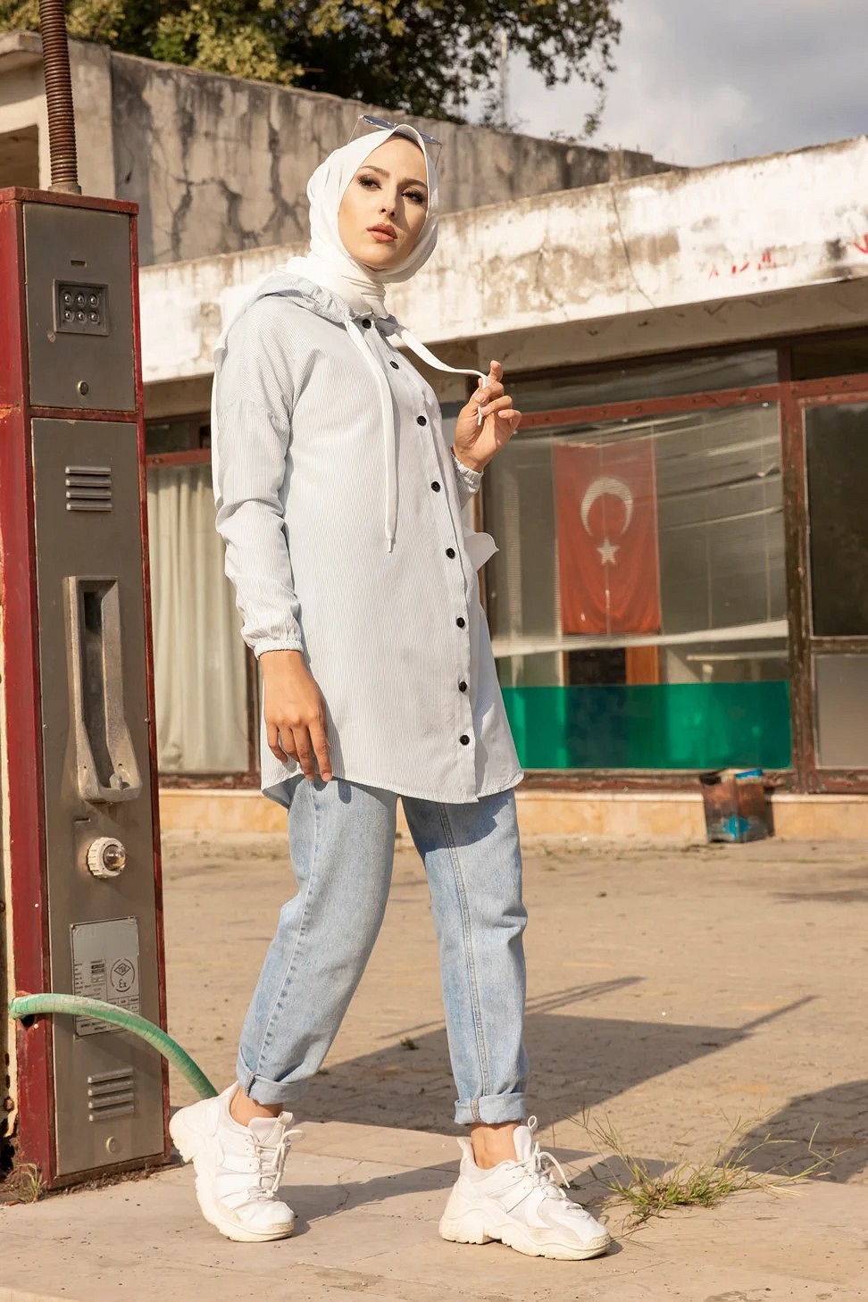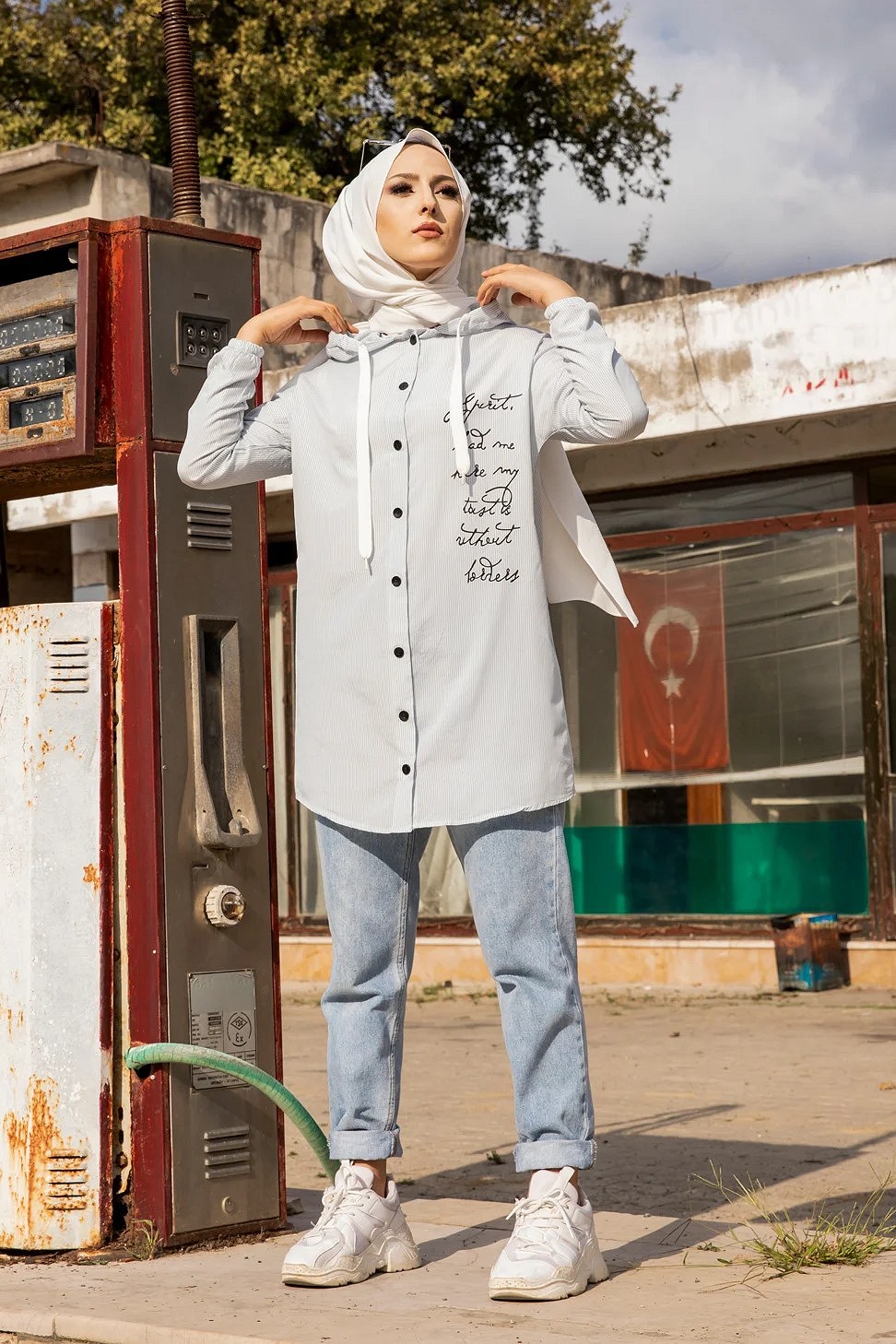 Tunique-Chemise imprimée avec capuche (Vetement femme Hijab Turquie) - Couleur Bleu clair Vetement & Accessoire