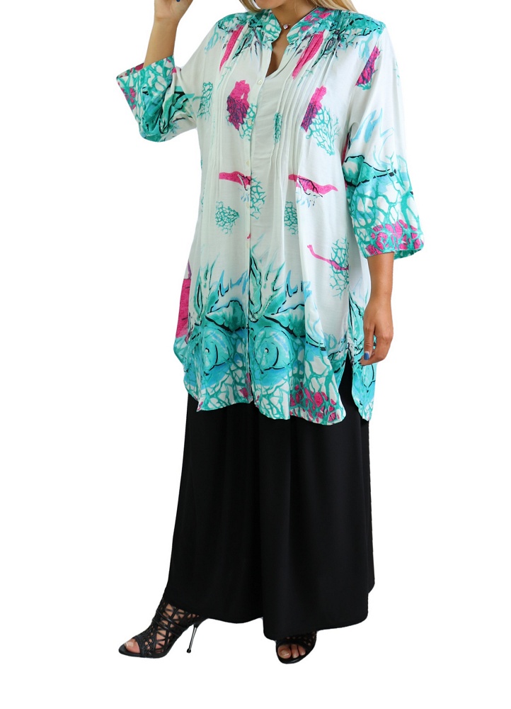 Tunique-Chemise ample boutonnée (Vetement décontracté femme voilée) - Couleur menthe - REF. 33196 (19.90 €)