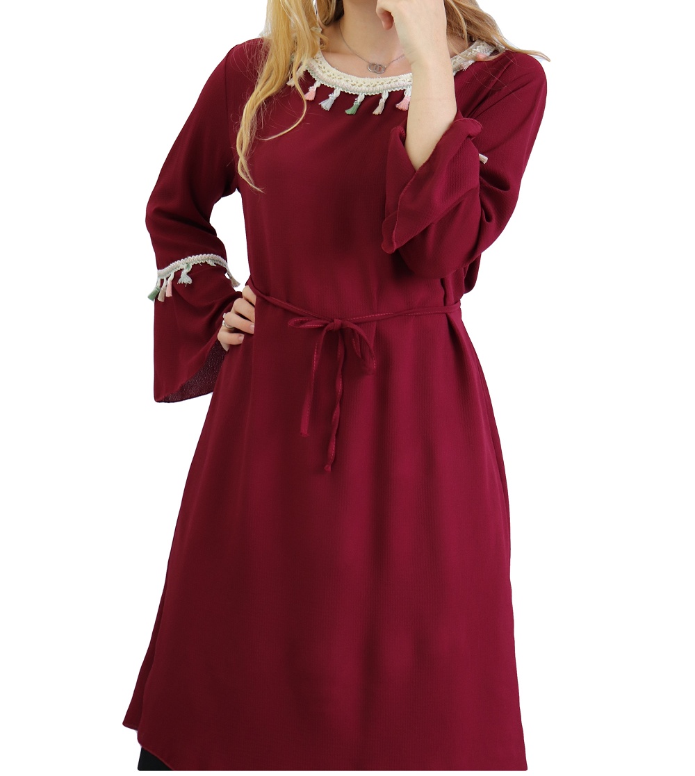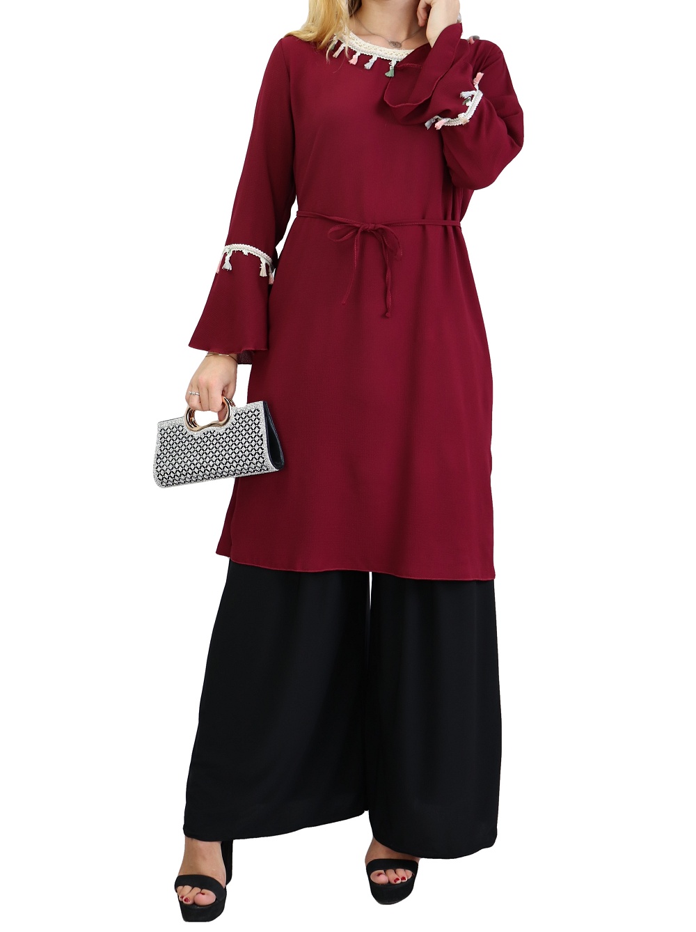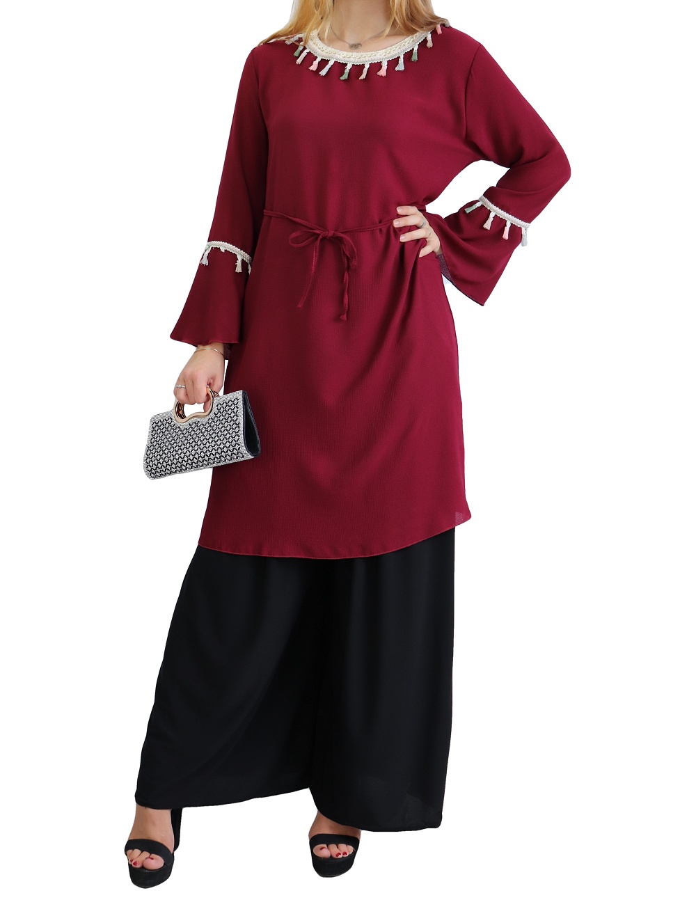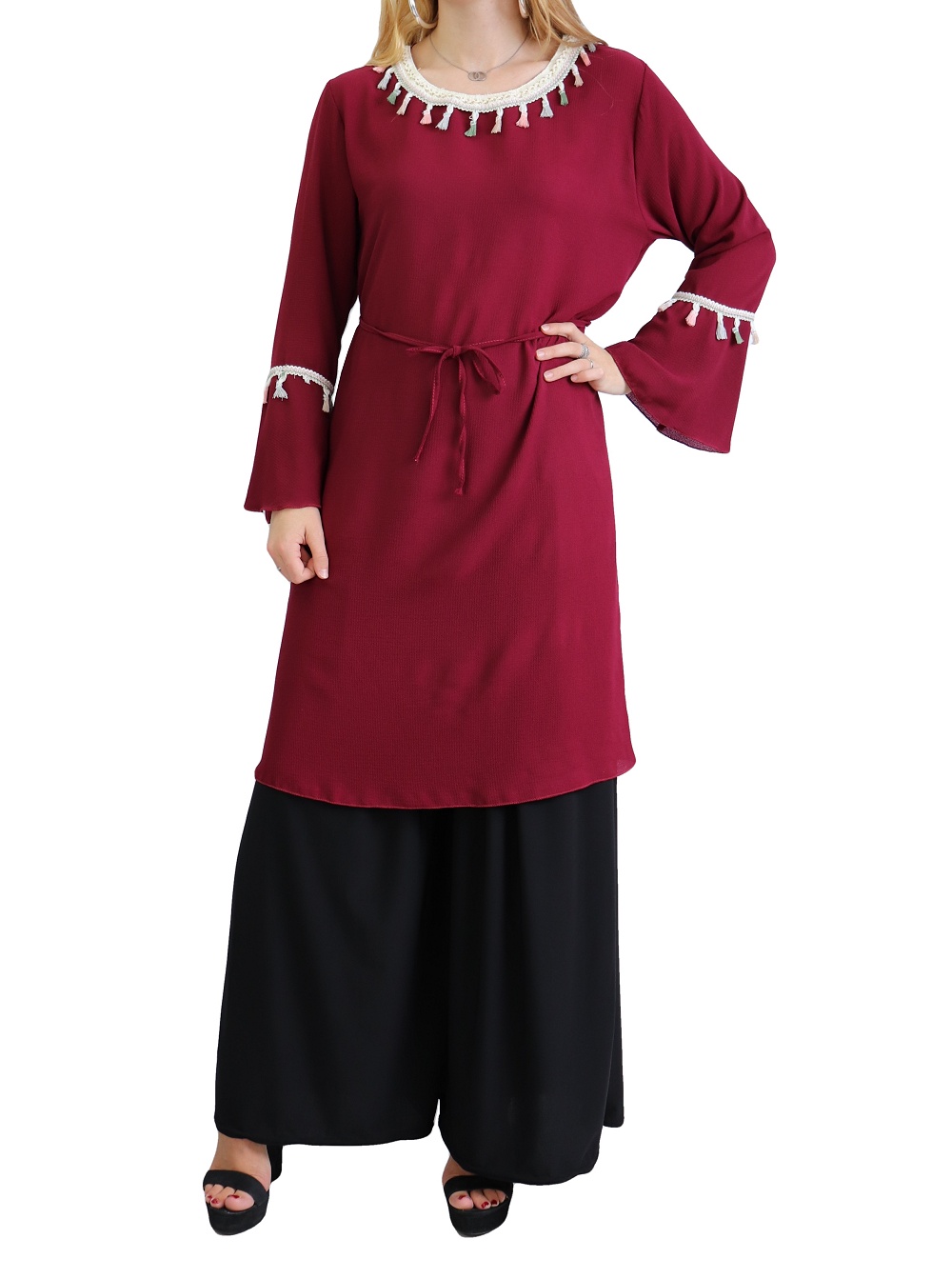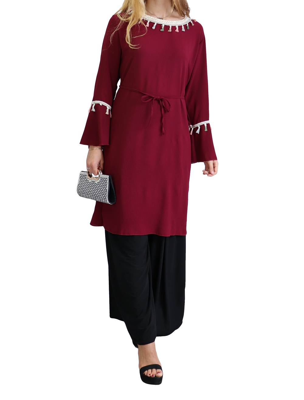 Tunique Longue à poignets cloche avec pompons - Couleur bordeaux Vetement & Accessoire