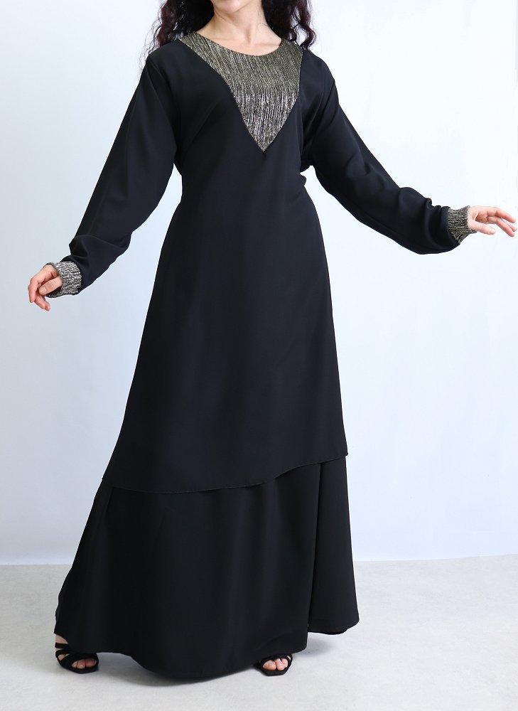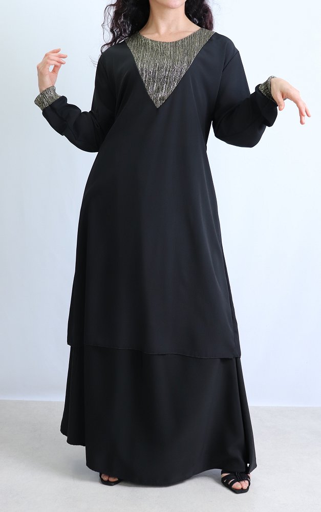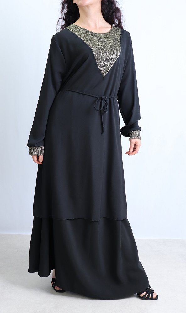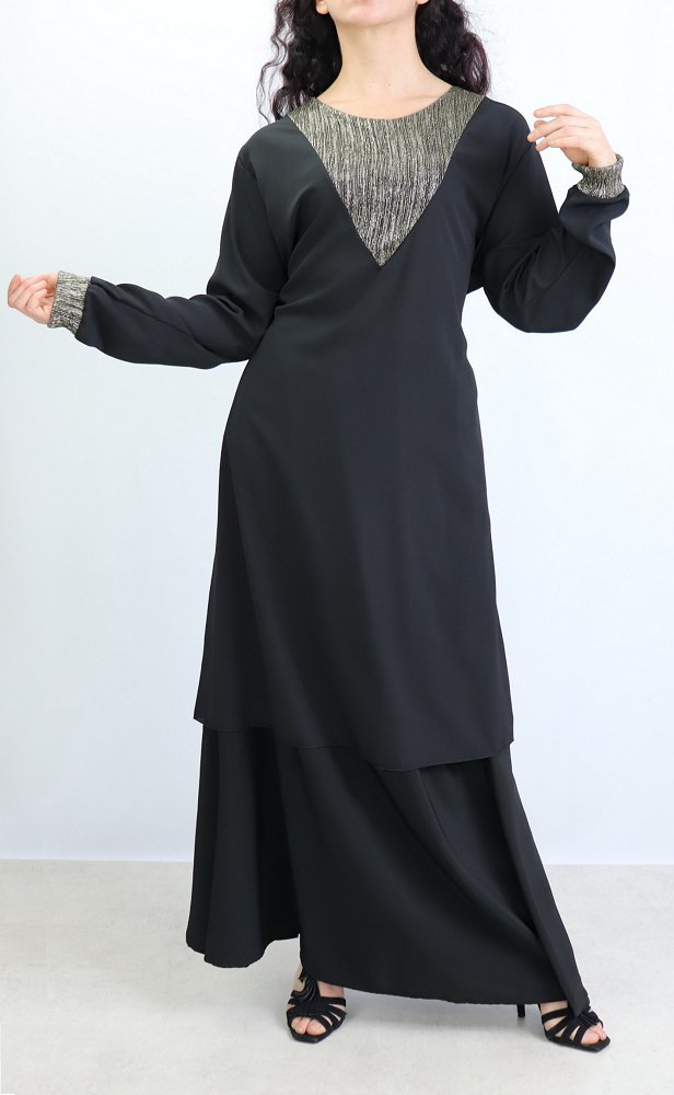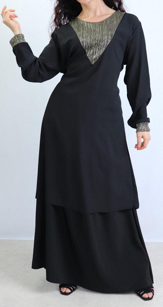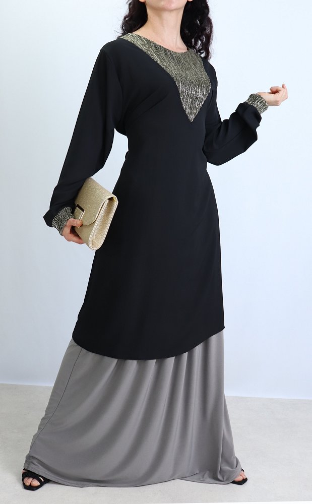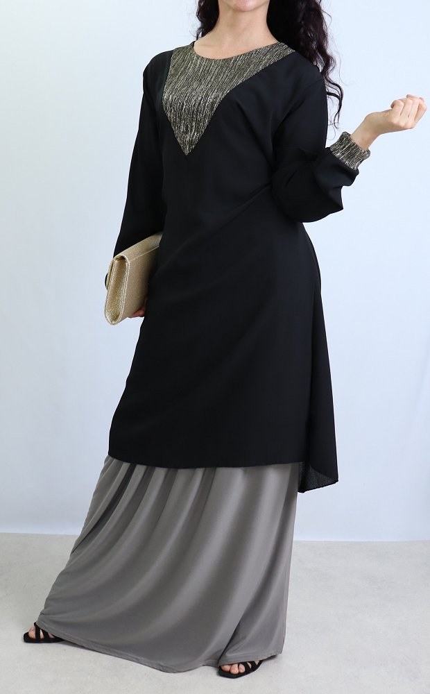 Tunique longue avec dorures (Vêtement pas cher pour femme voilée) - Couleur noir - REF. 36459 (24.90 €)