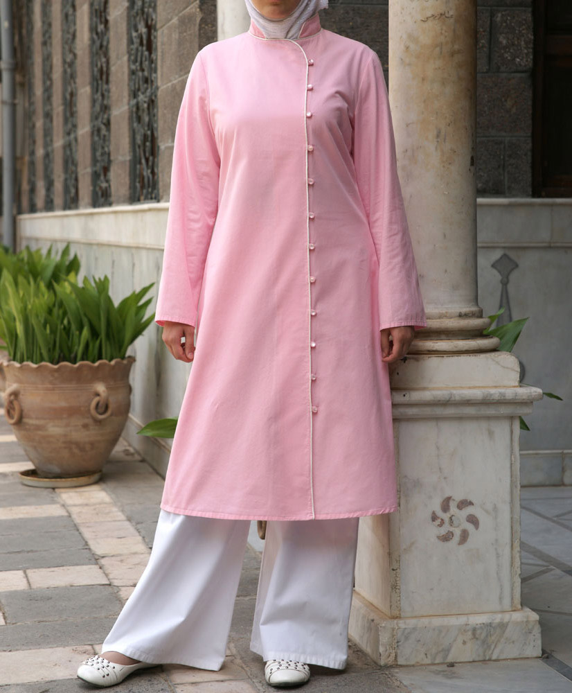 Une tunique exquise idéale pour les occasions pour avoir une tenue pudique et décente. Col mandarin, longueur aux genoux. 100 % coton, lavage machine.