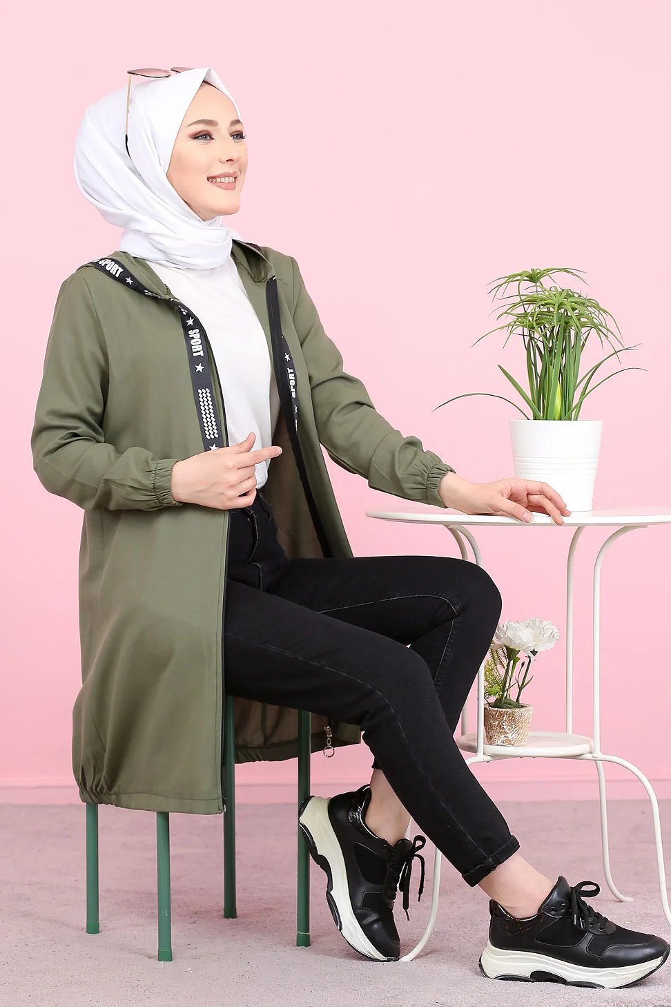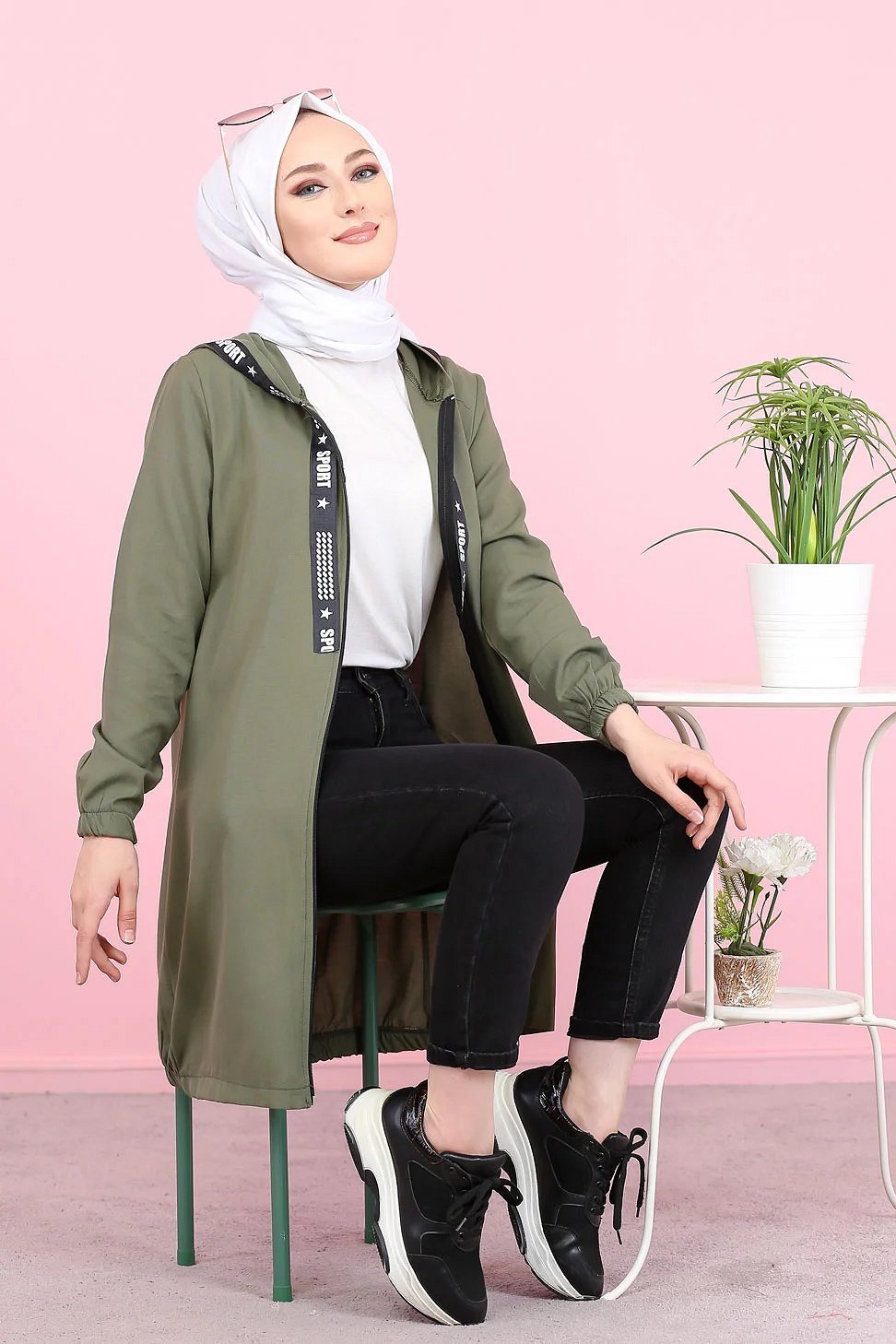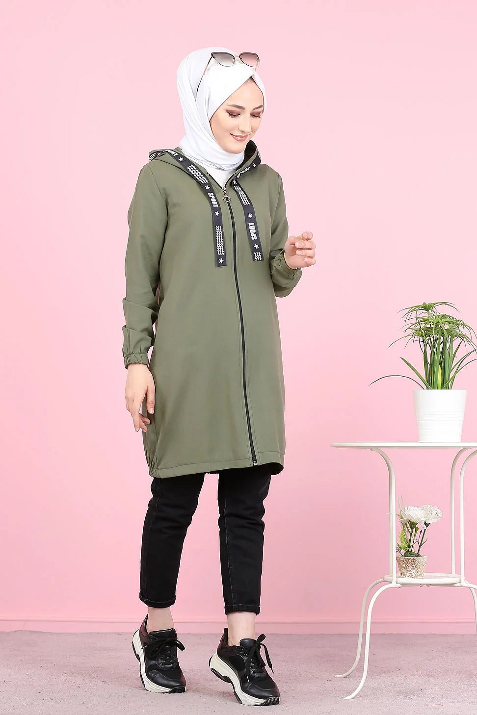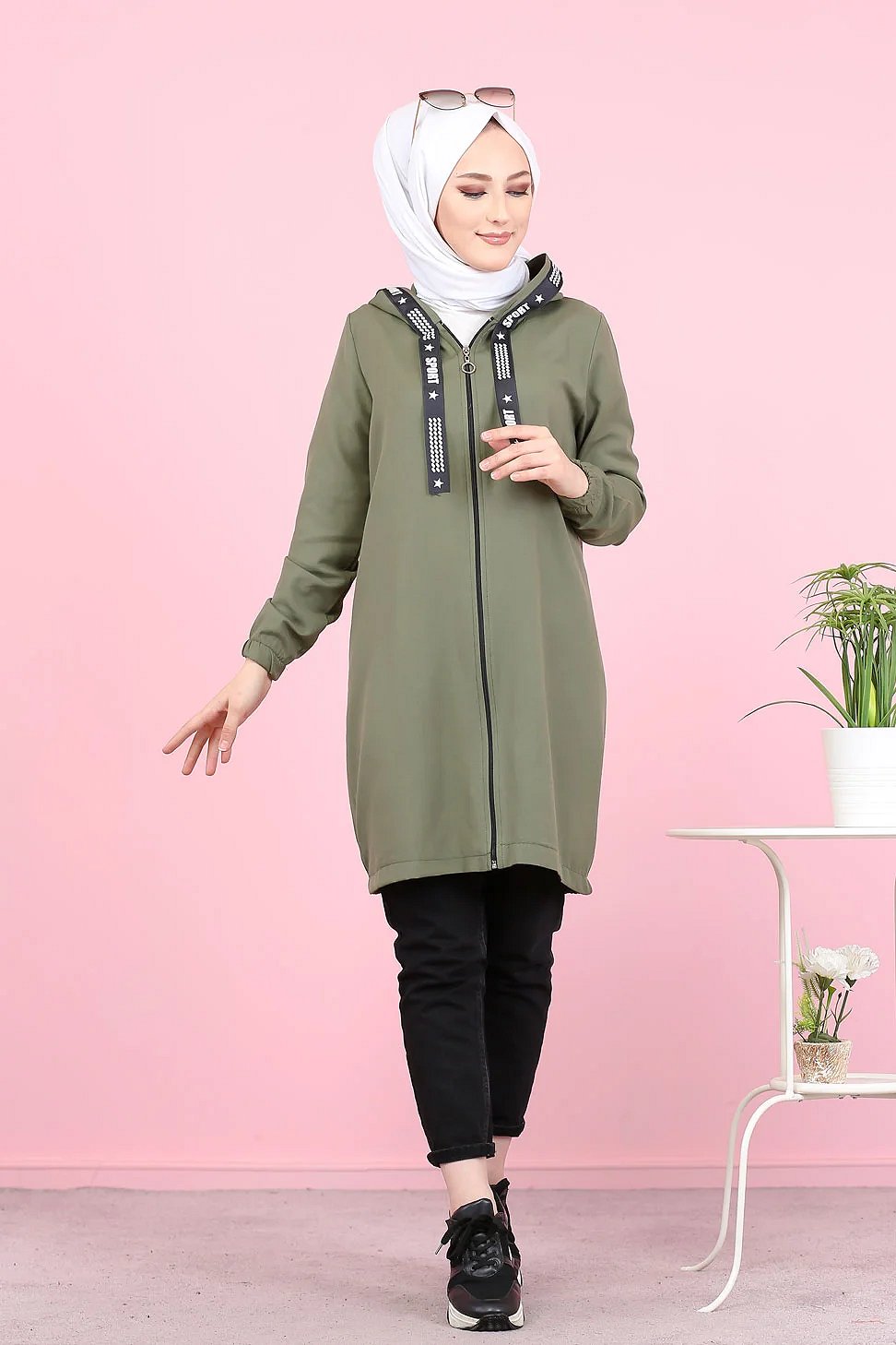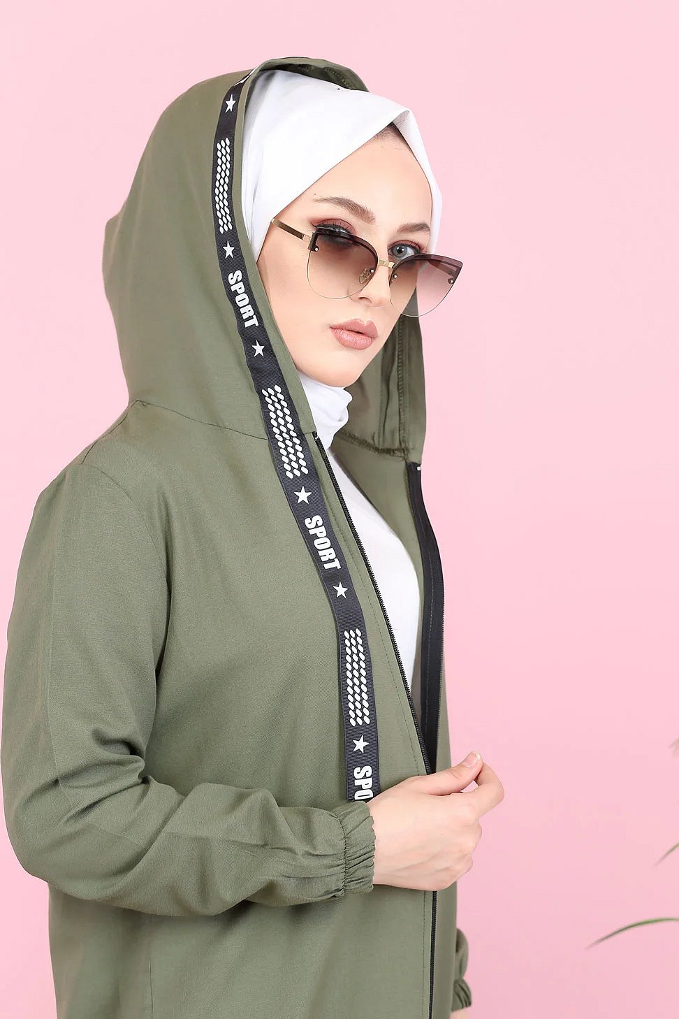 Tunique a capuche zippee type Sportswear (Tendance Mode Musulmane Sport) - Couleur kaki