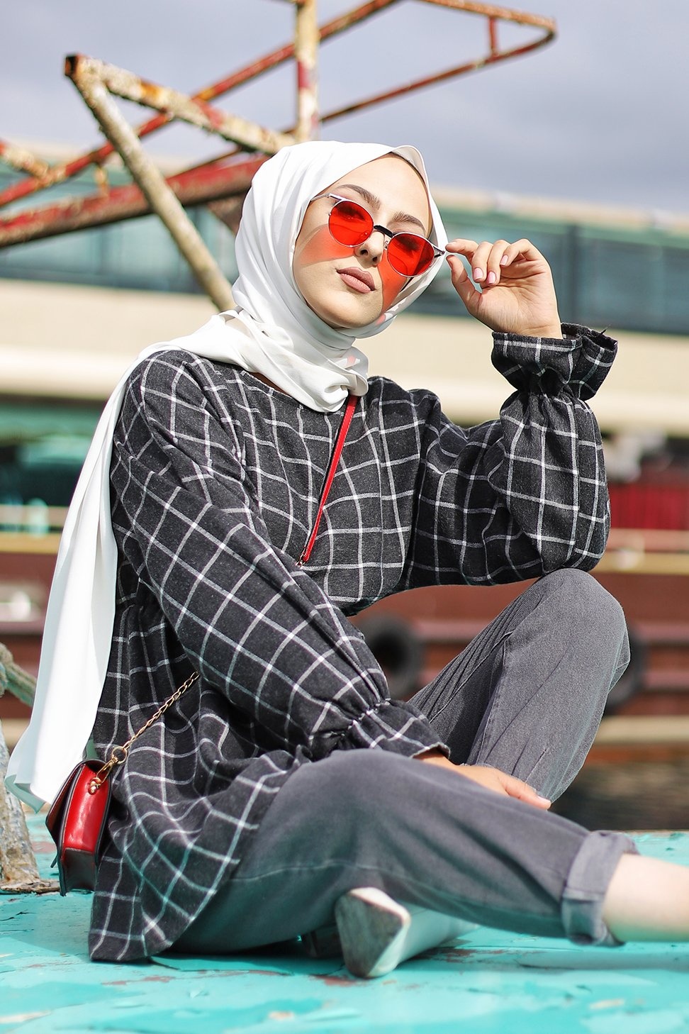 Robe Salopette à carreaux au look Muslima Hijab Fashion - Couleur noir et blanc - REF. 32214 (18.00 €)