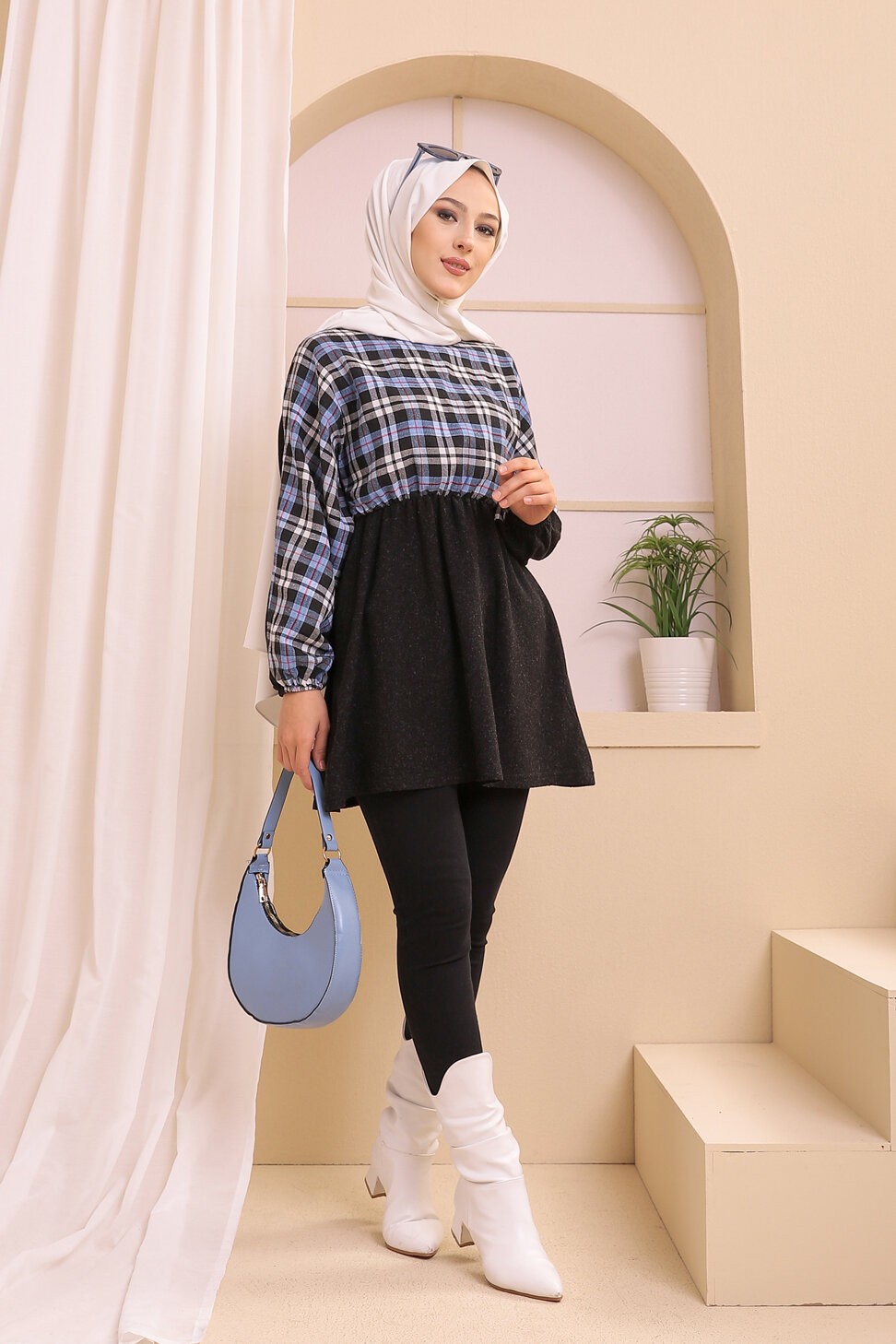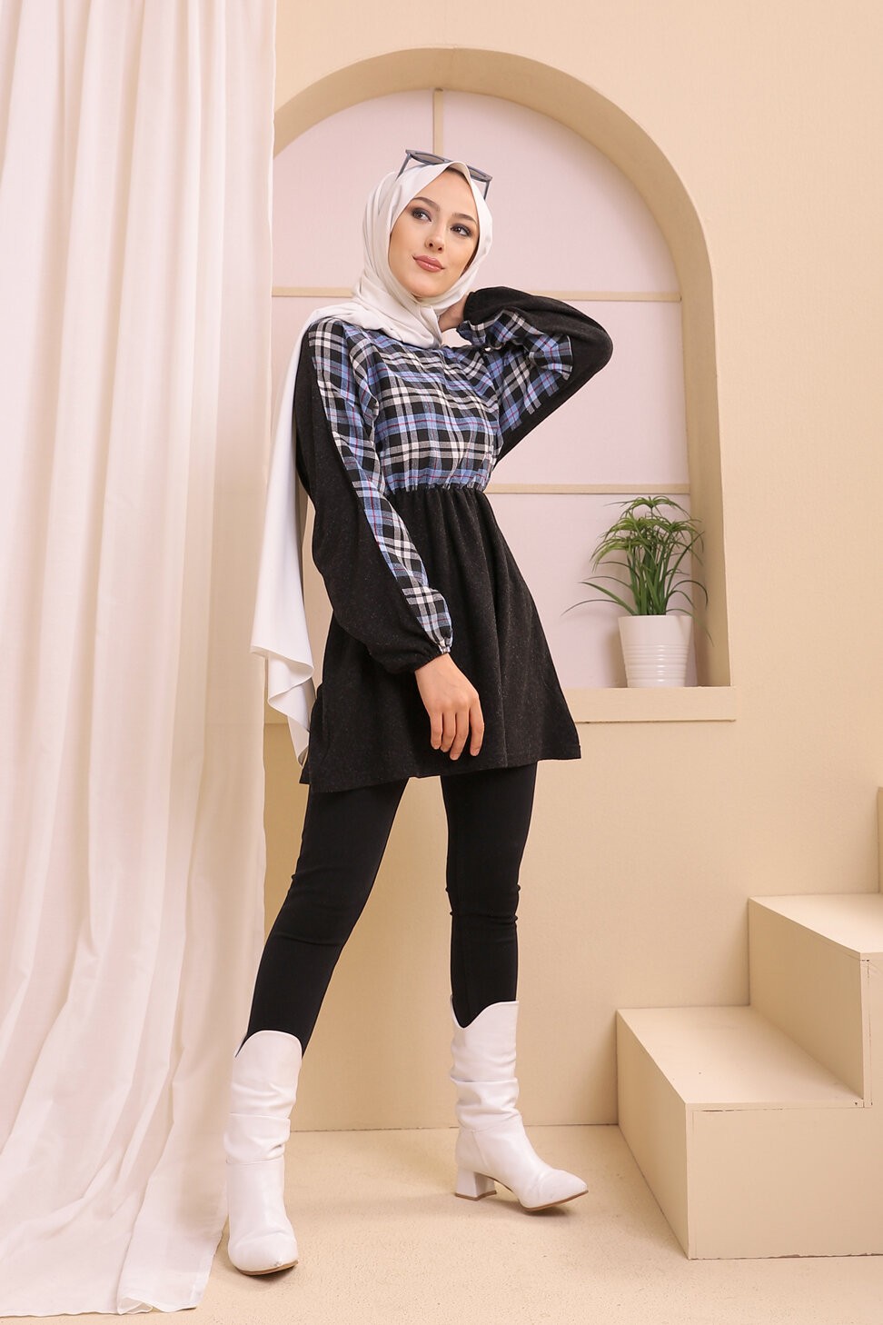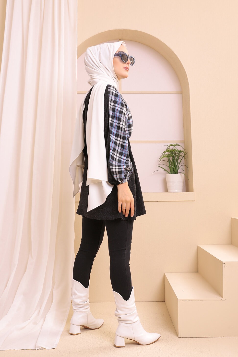 Chemise longue à carreaux (Vêtements modernes pour femmes voilées - Boutique en ligne) - Couleur anthracite et vison - REF. 38335 (24.90 €)
