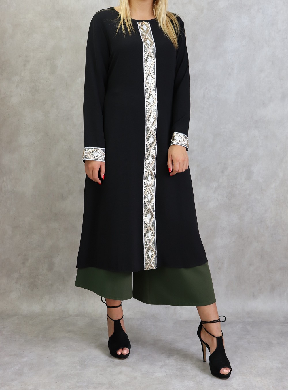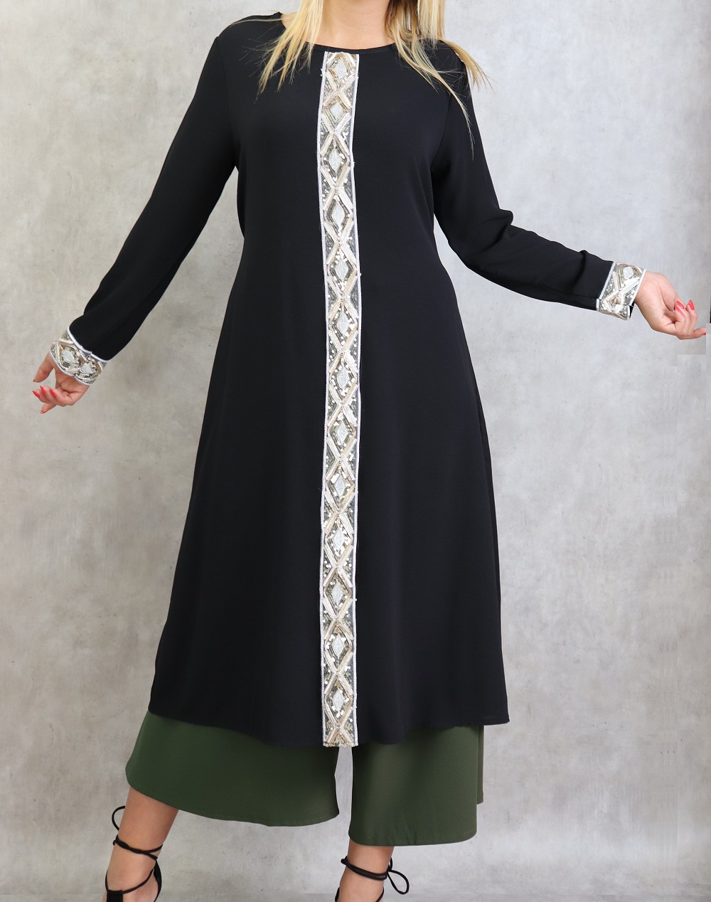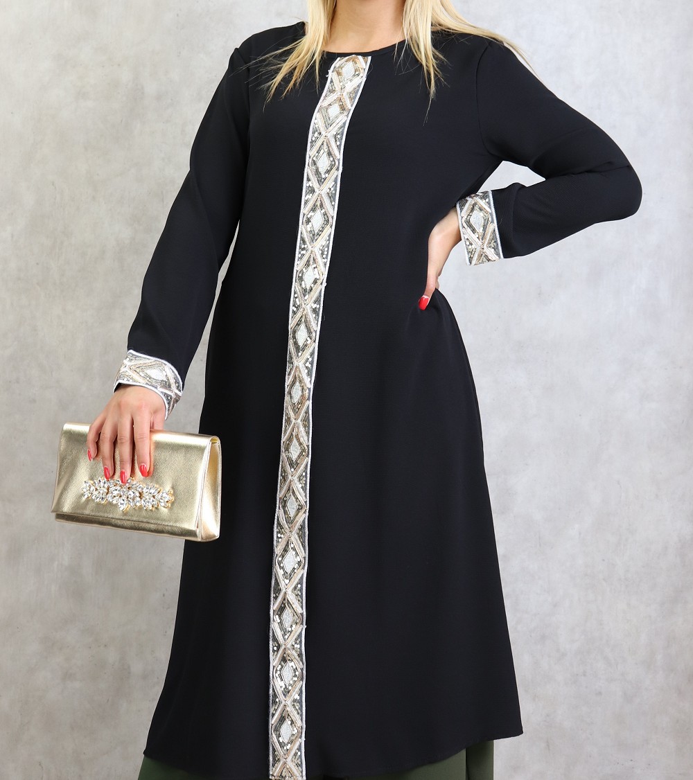 Tunique a manches longues avec strass - Couleur Noire