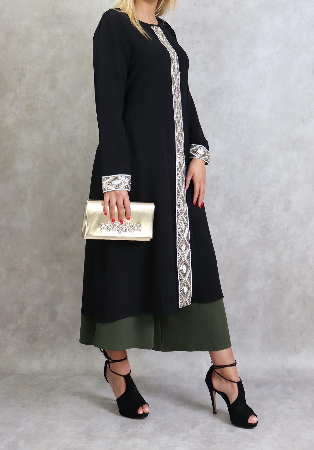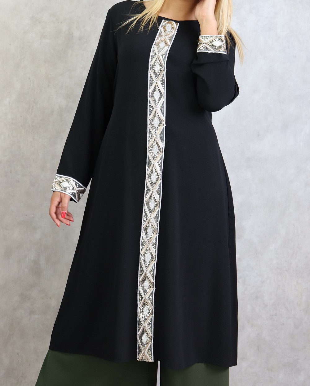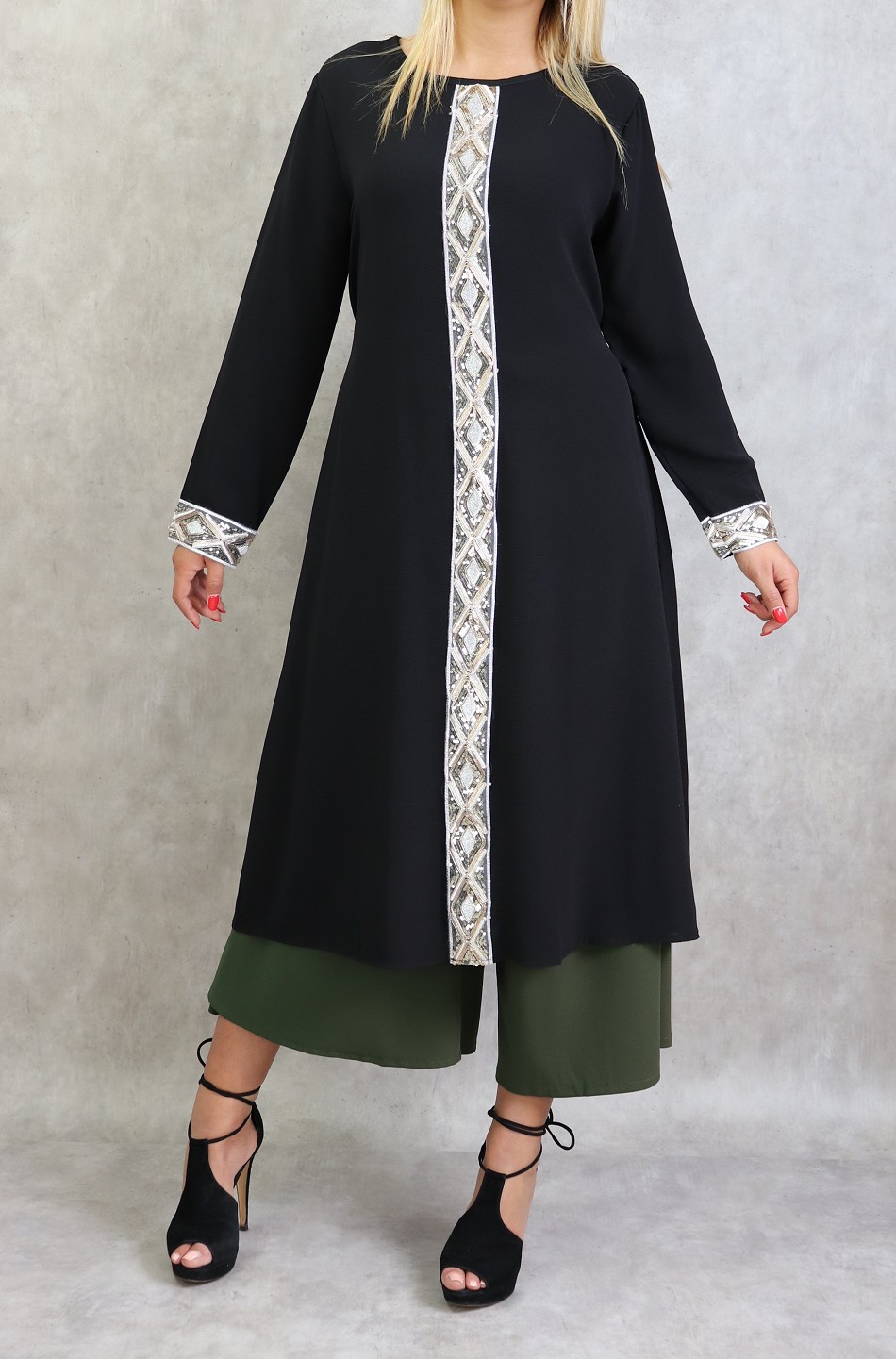 Tunique de soirée avec poches à paillettes pour femme - Couleur kaki - REF. 37812 (32.00 €)
