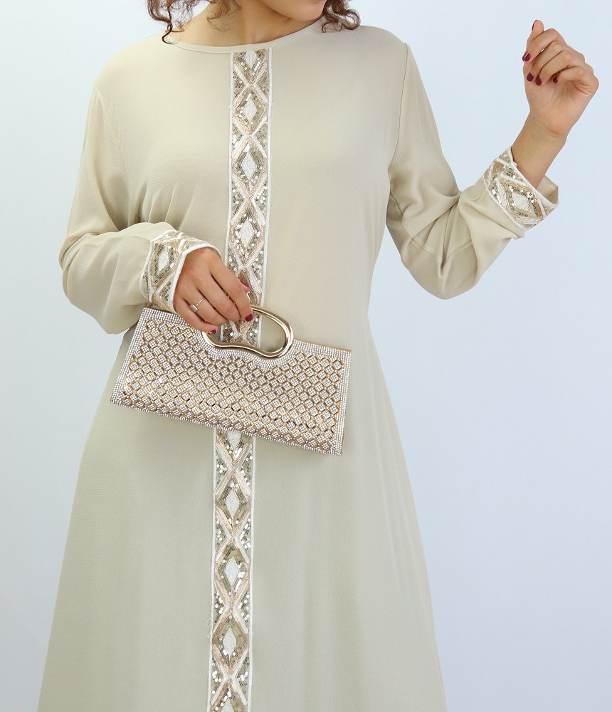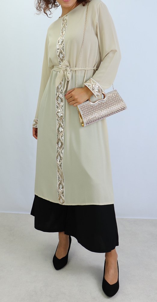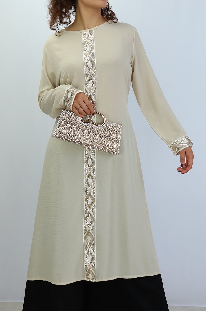 Chemise longue boutonnée type tunique (Vetements pour Hijab France en ligne) - Couleur vison - REF. 33875 (25.00 €)