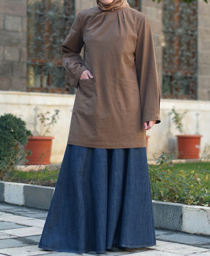 A one-of-a-kind tunic that combines a modern functional look with a comfy cut and fabric. The length of this tunic is perfect, and the color range is something to explore. Try it in your favorite shade with a dressier skirt or wide leg pants.