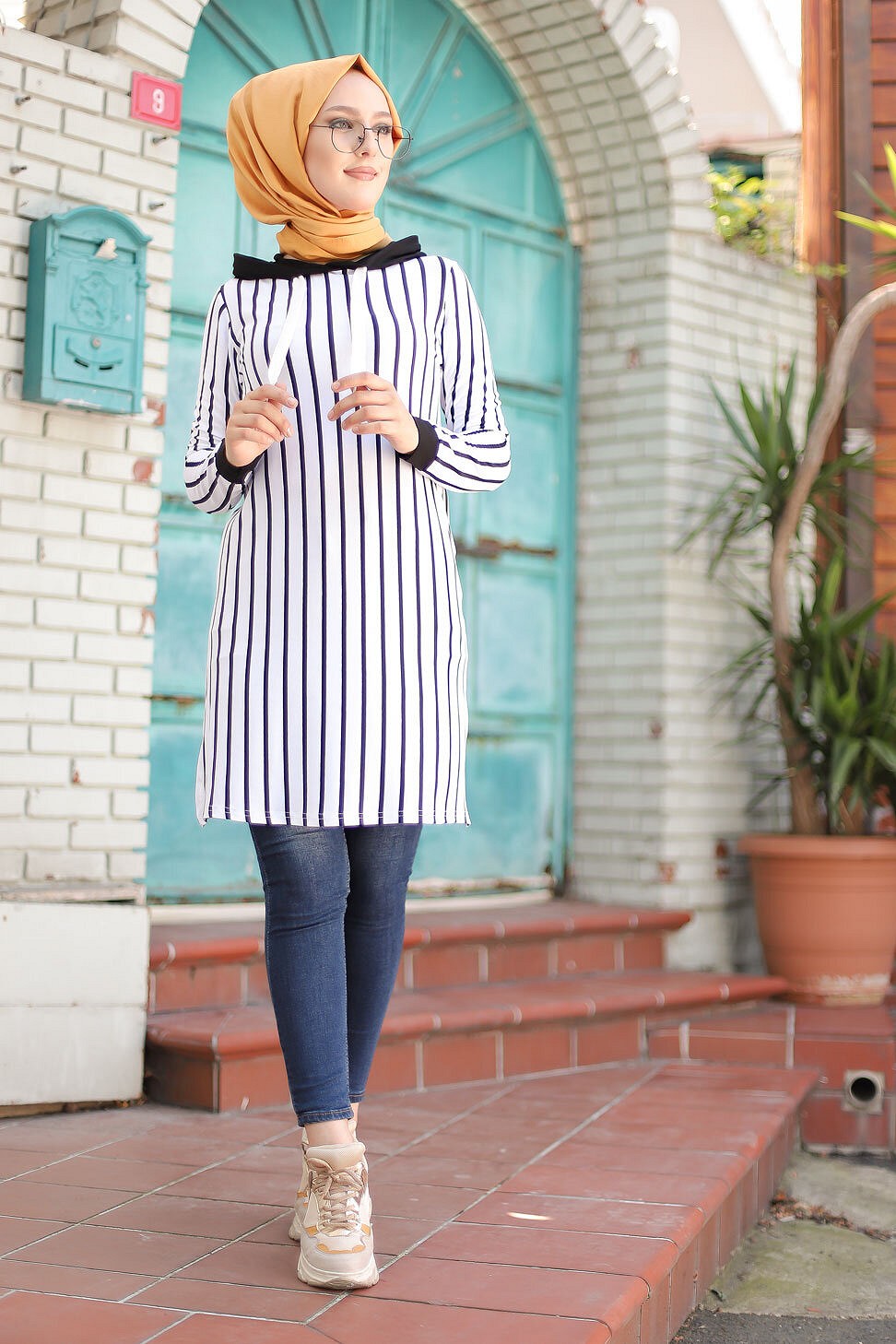 Tunique décontractée avec capuche (Vêtement moderne pour hijab) - Couleur bleu indigo - REF. 35955 (19.90 €)
