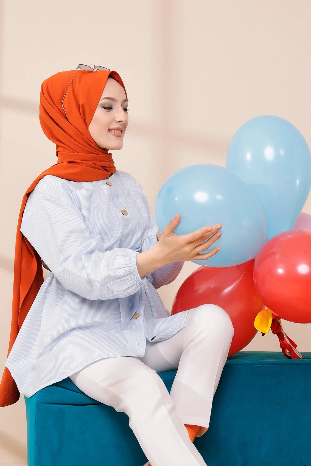 Chemise-Tunique casual ample à rayures bleues (Vetement pour femme voilée) - REF. 33946 (25.00 €)