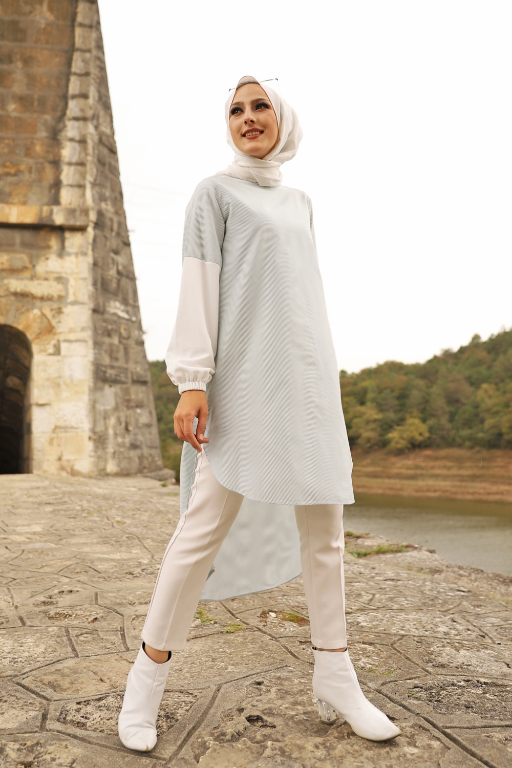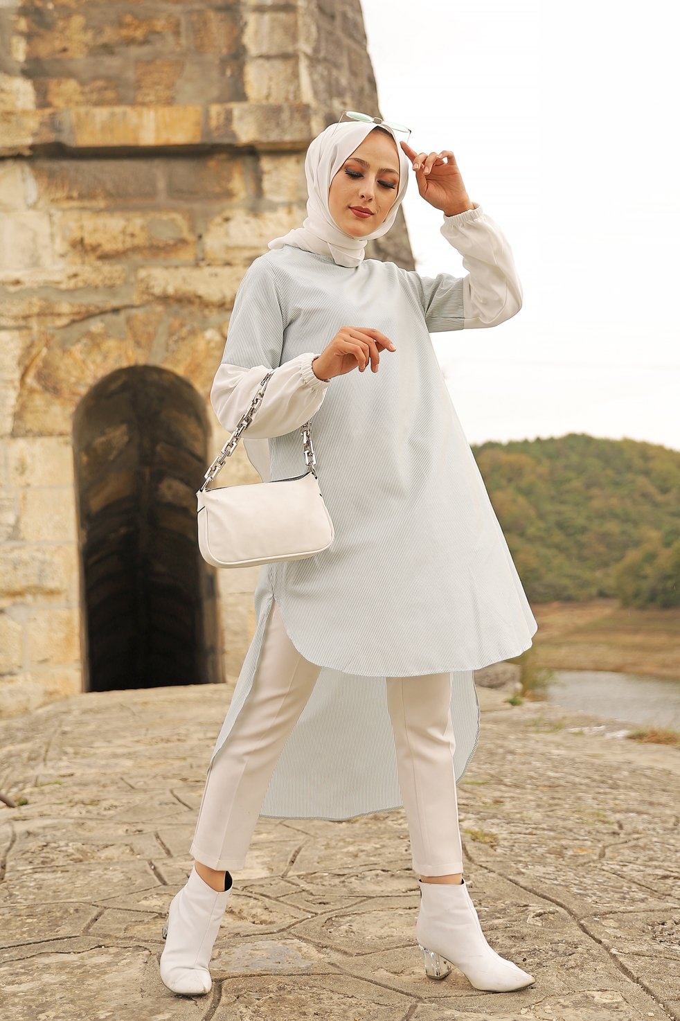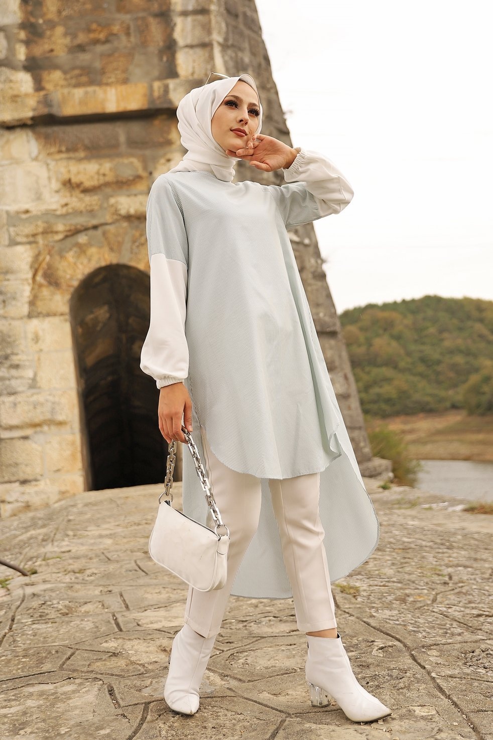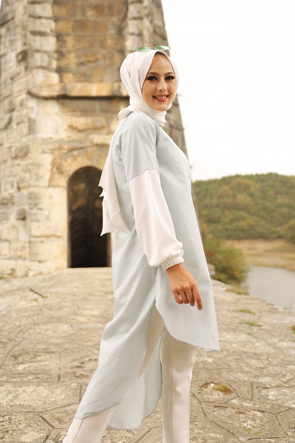 Tunique a rayures pour femme (Tenue pour Hijab) - Couleur menthe