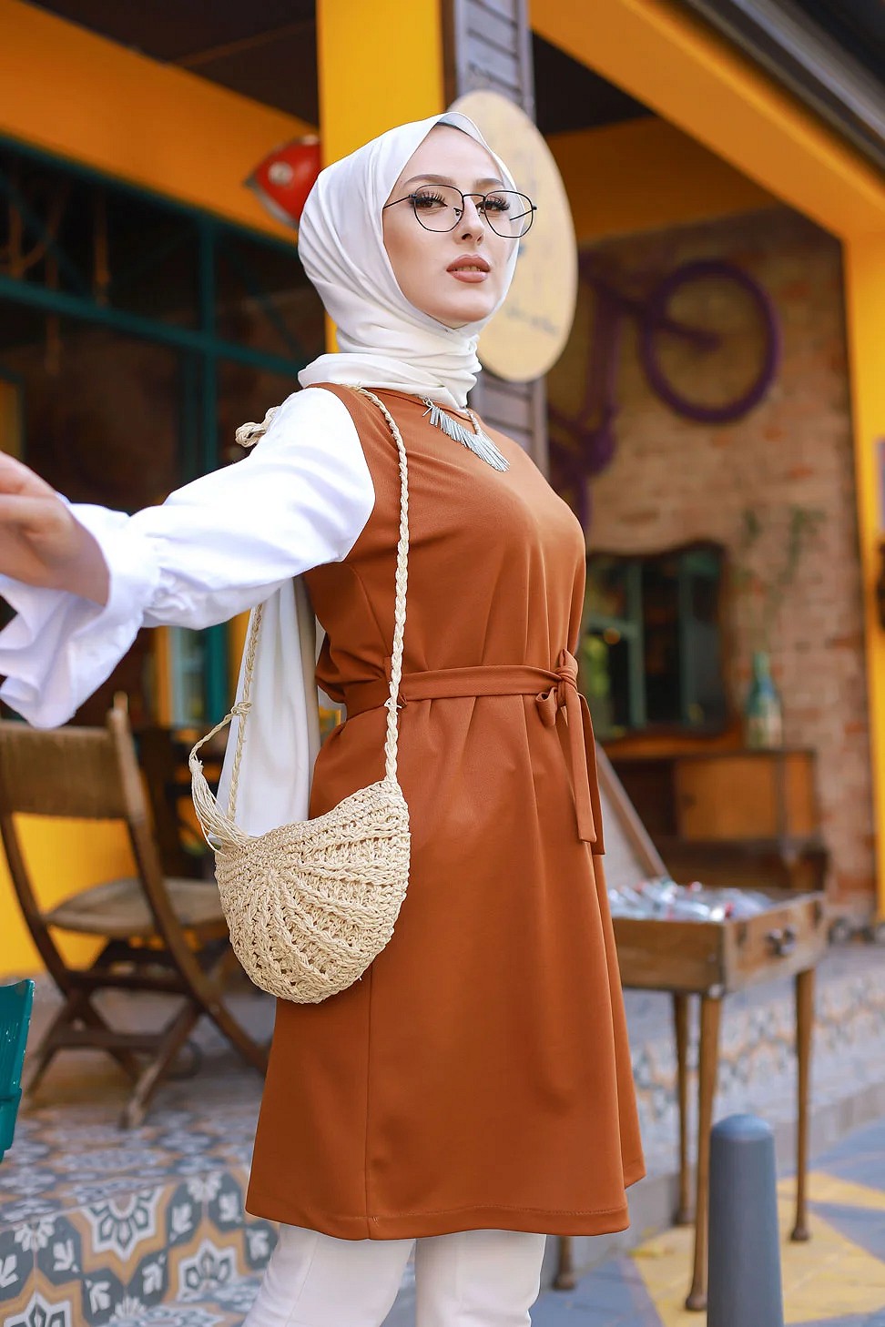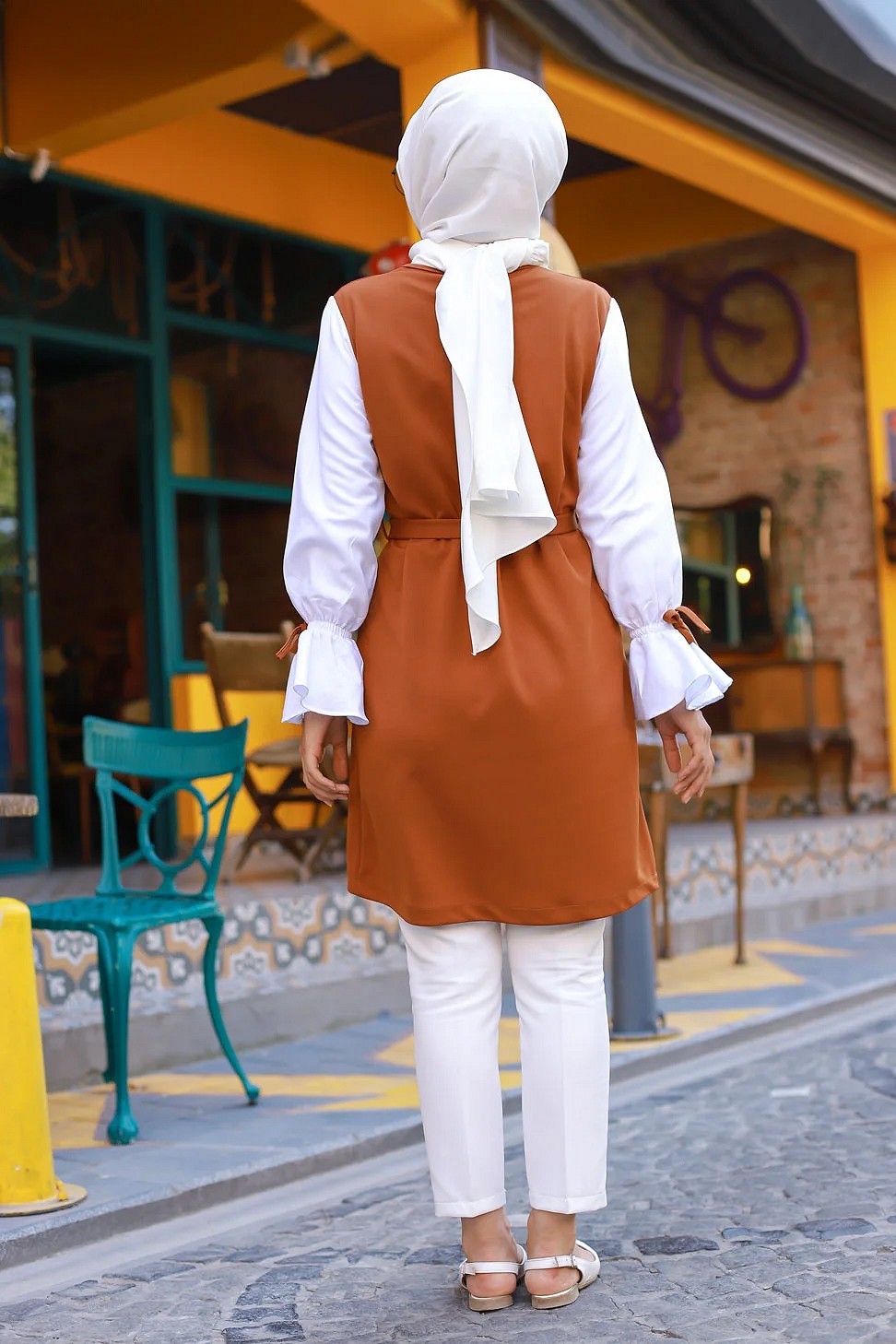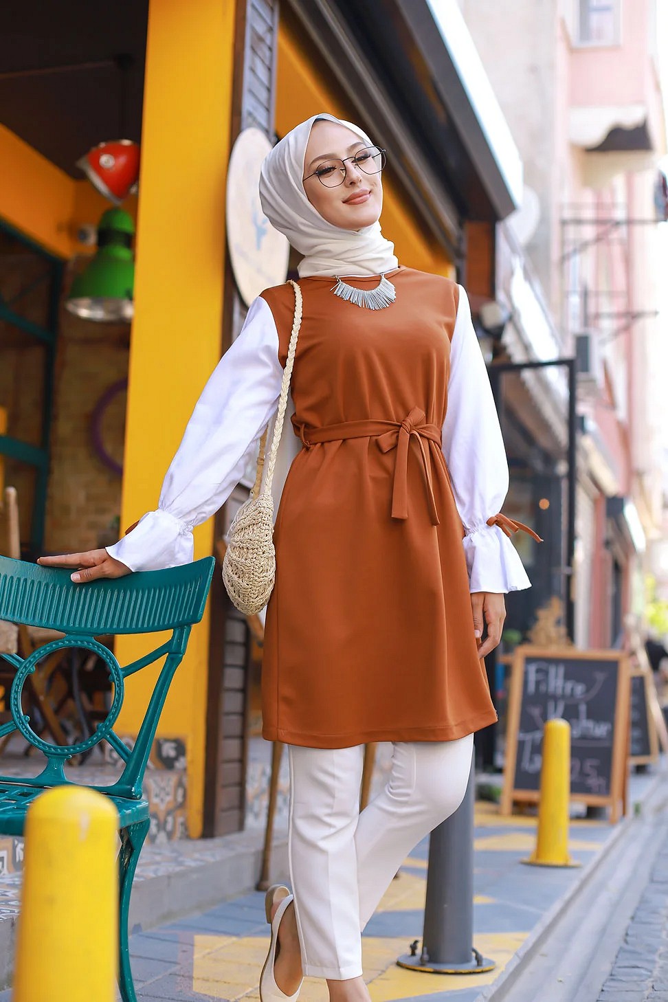 Tunique à volant (Vêtement pudique en ligne pour femme voilée) - Couleur rouille et blanc Vetement & Accessoire
