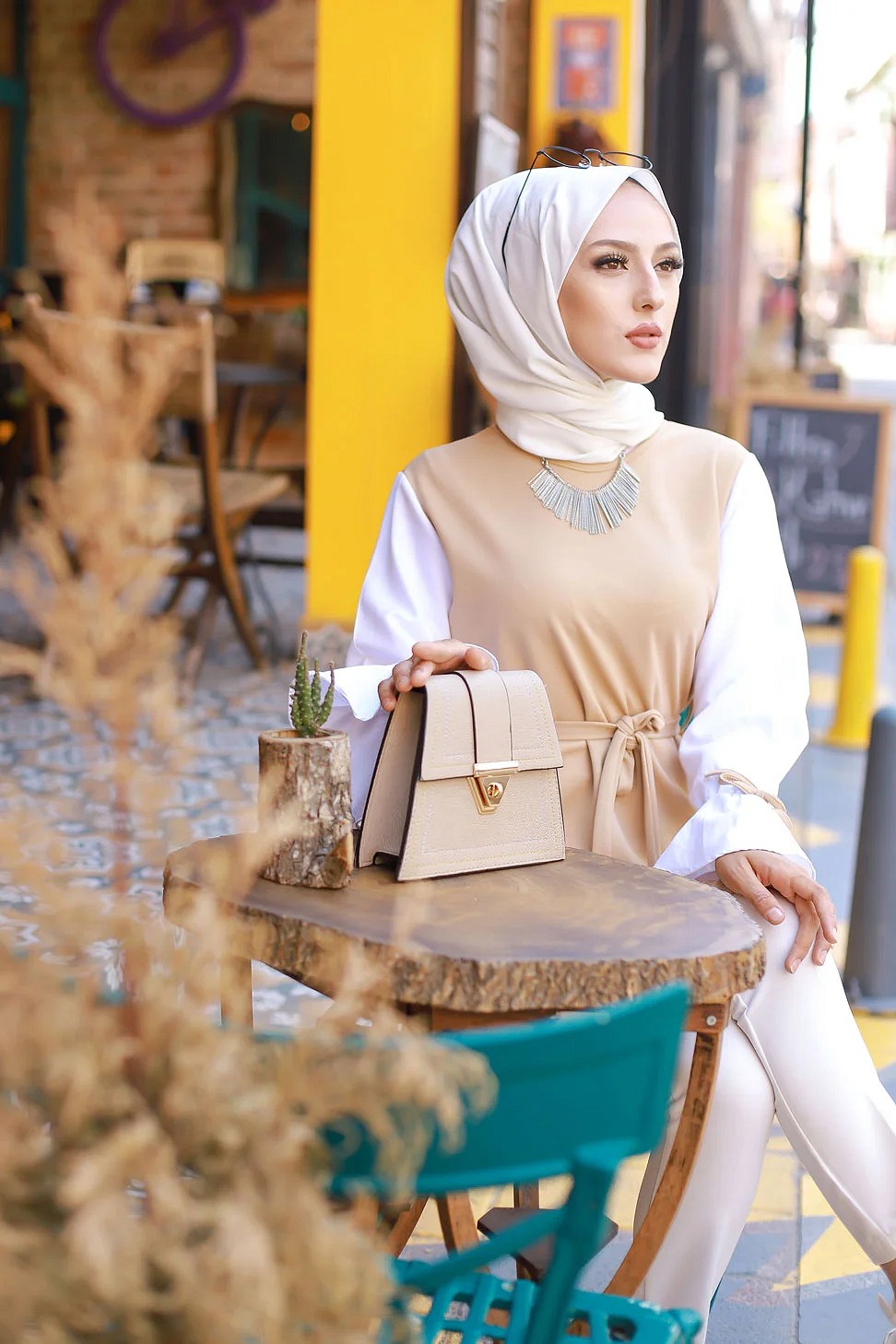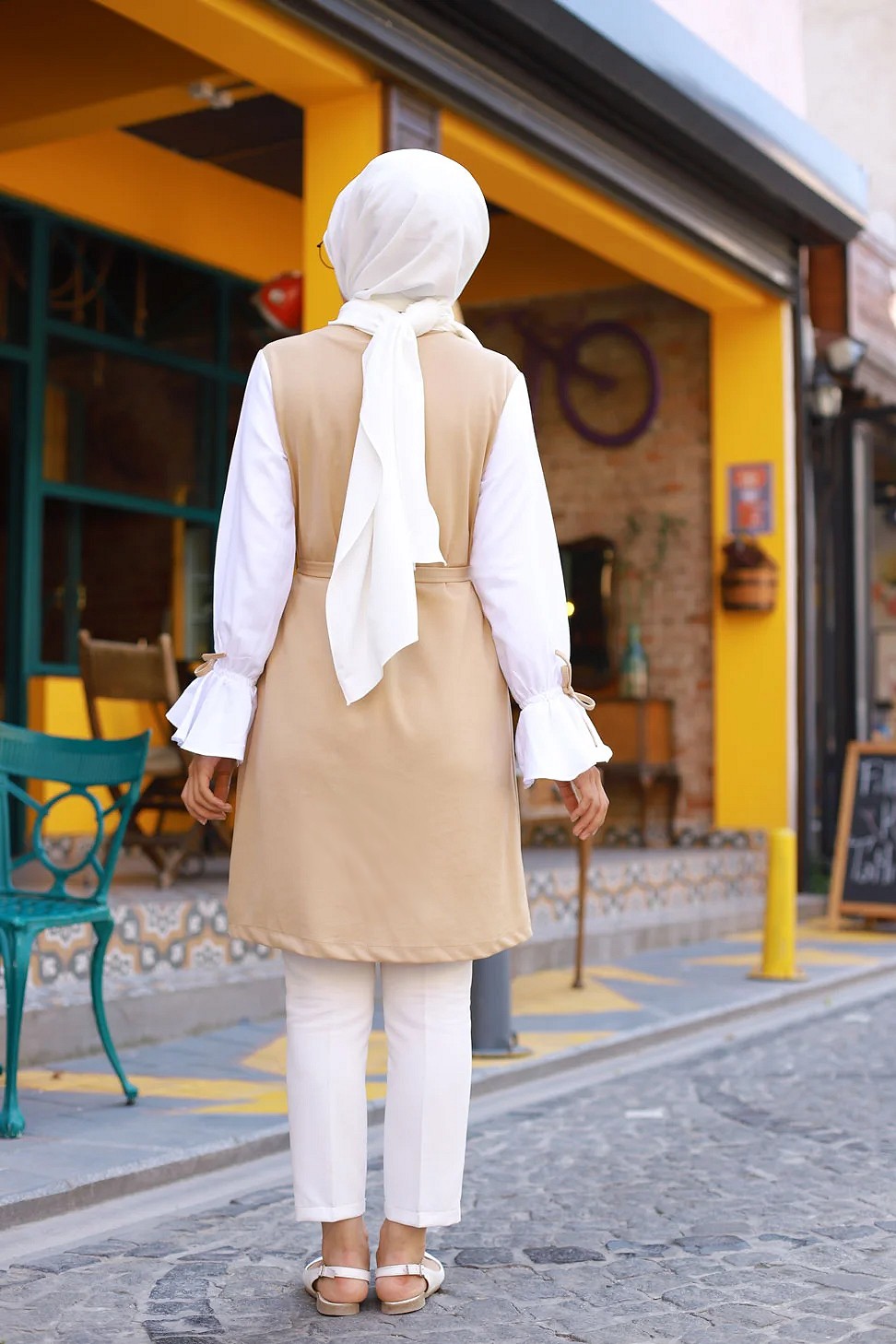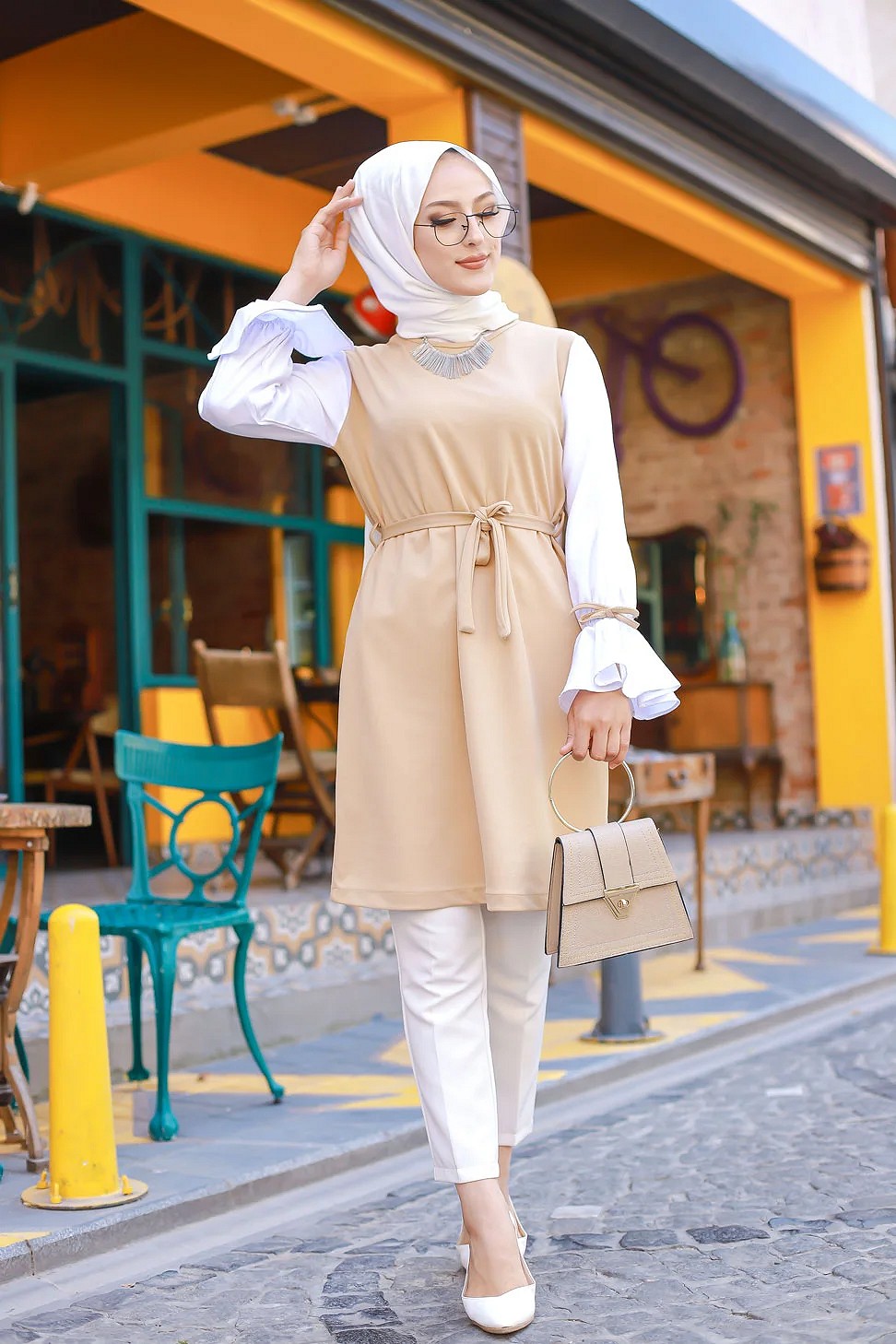 Tunique à volants (Vetement hijab pour femme musulmane) - Couleur beige et blanc Vetement & Accessoire