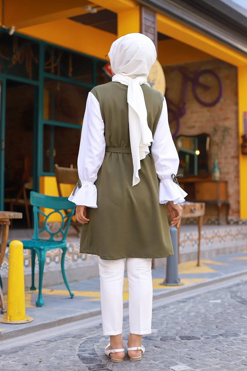 Tunique à volants (Vetement pudique pour femme musulmane) - Couleur kaki et blanc Vetement & Accessoire