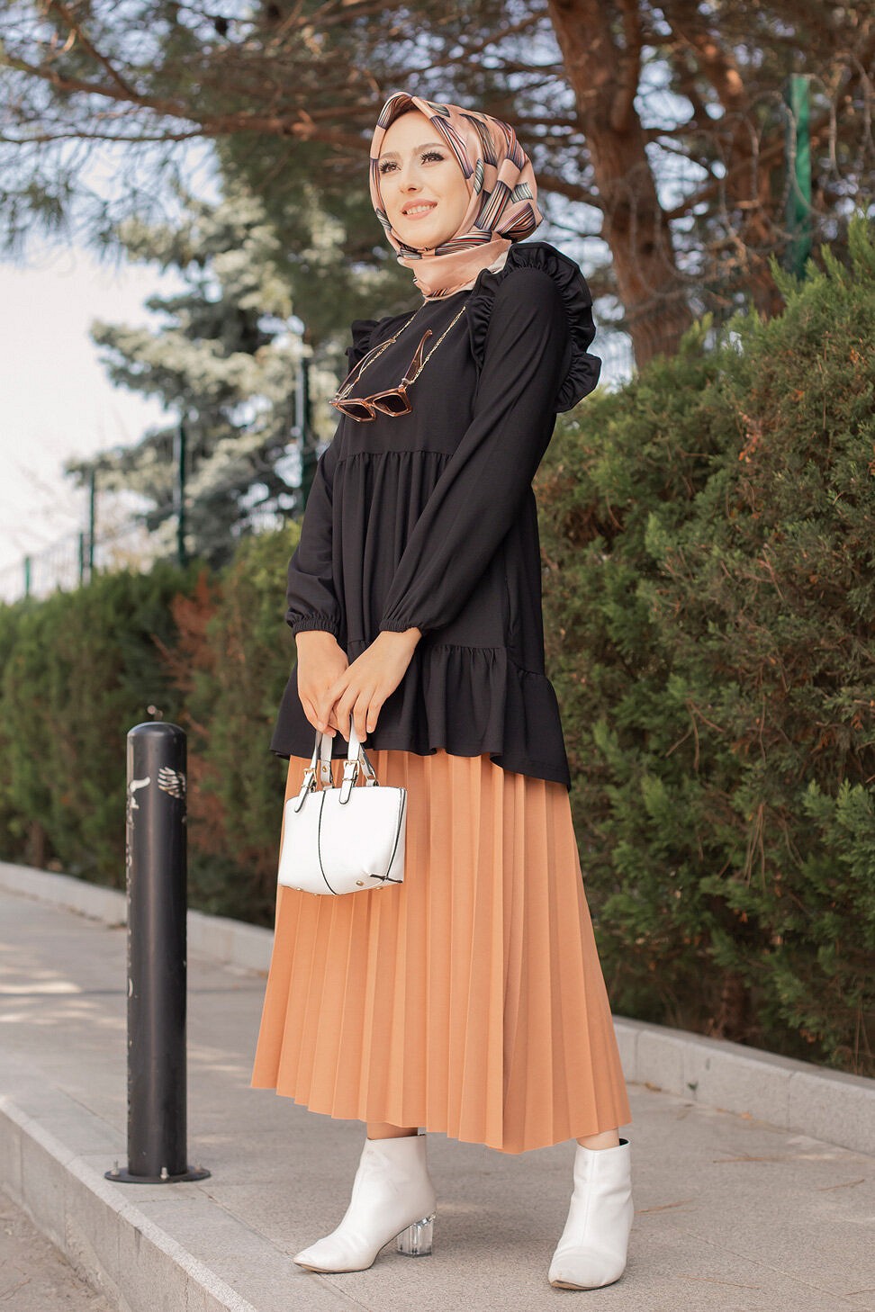 Ensemble Deux Pièces Tunique et Pantalon couleur Noir - Tenue de style élaguant pour femme voilée moderne - REF. 30552 (35.00 €) - En Promotion à 28.00 €