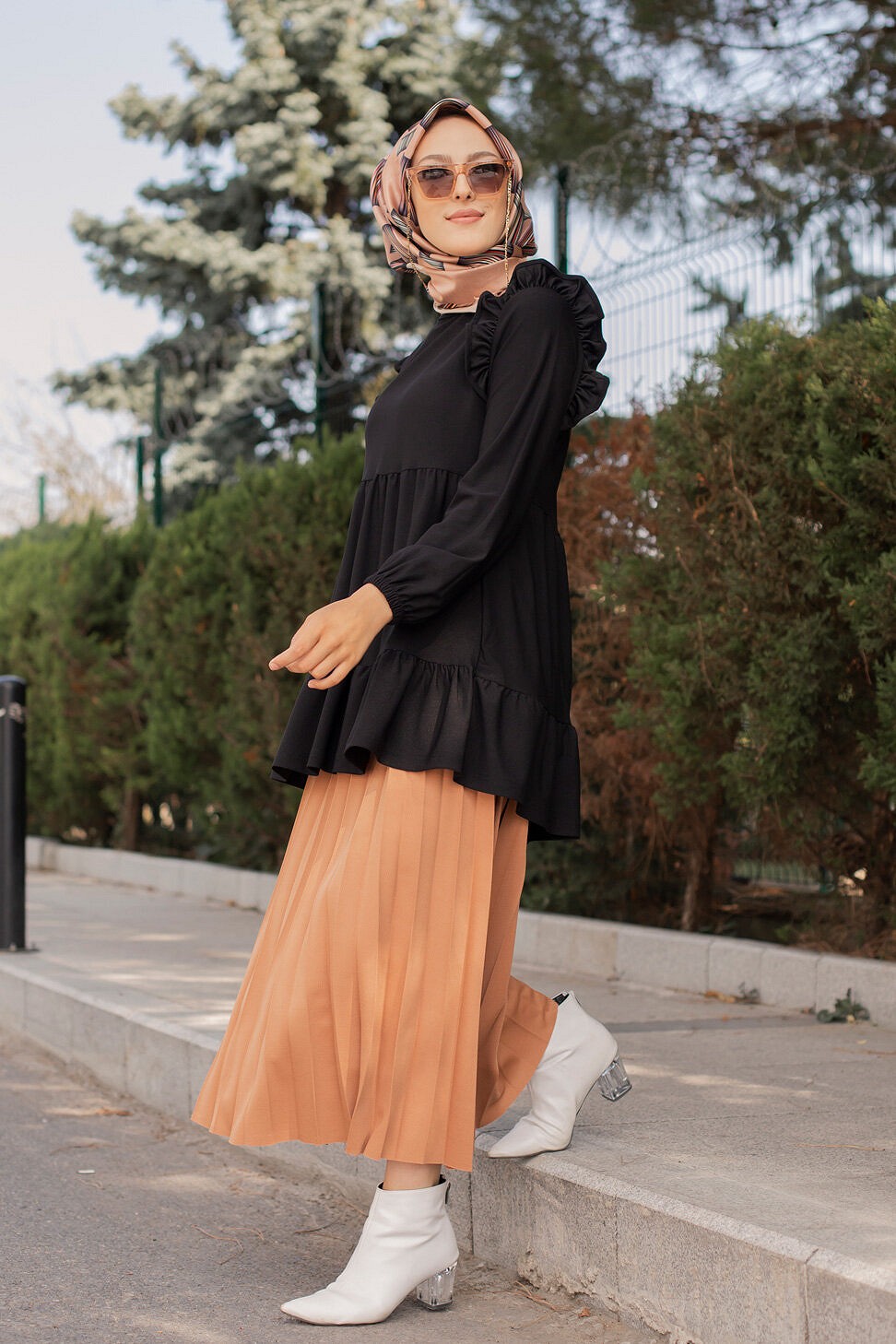 Tunique à volant (Vetement tendance femme voilée) - Couleur Jaune moutarde - REF. 32770 (23.00 €) - En Promotion à 19.90 €