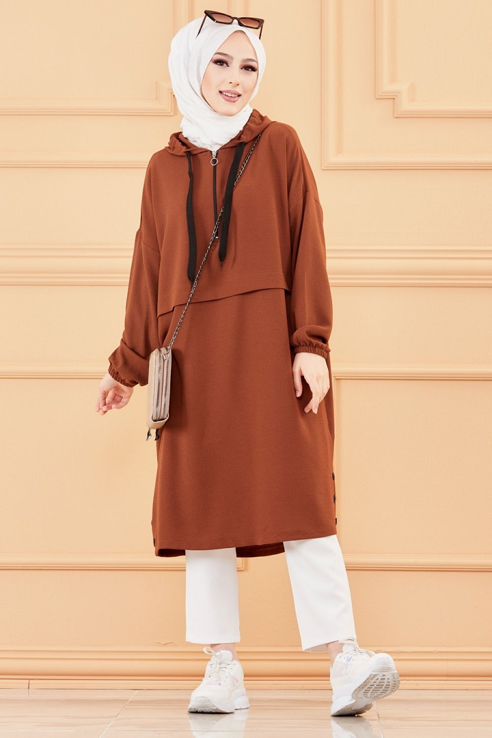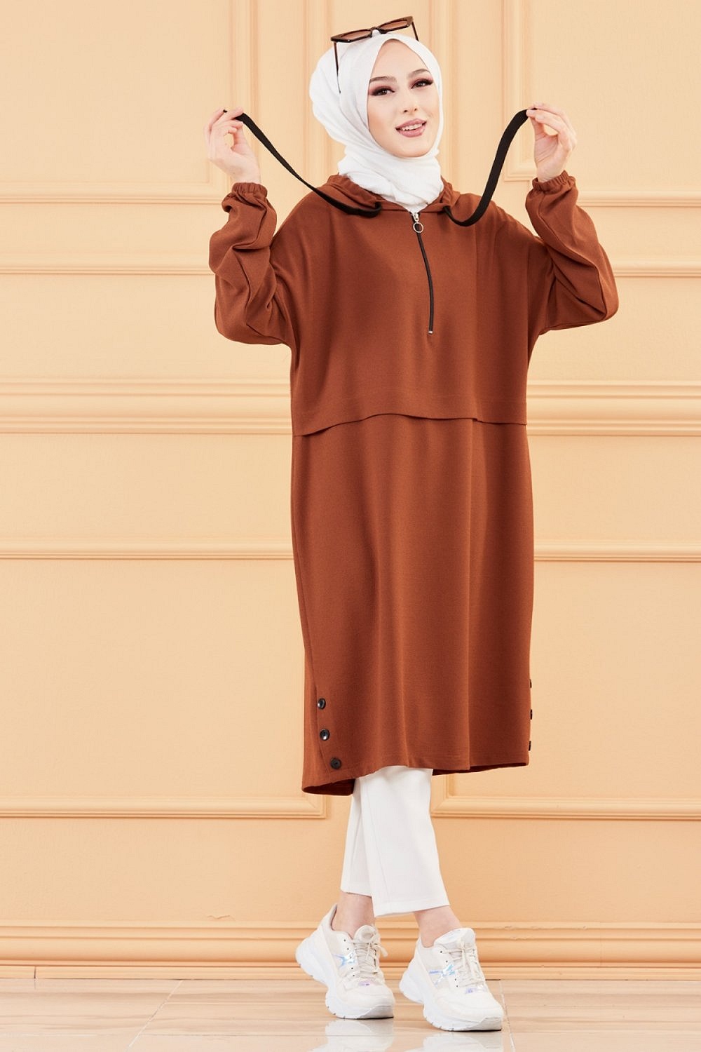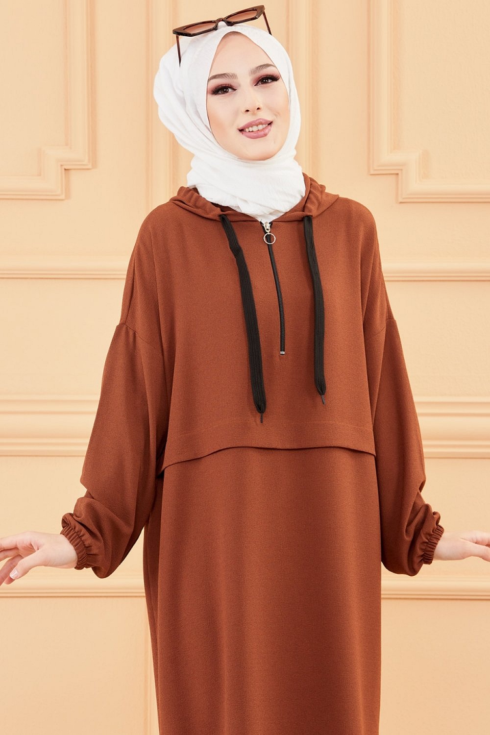 Tunique ample avec capuche (Tenue decontractee pour femme voilee) - Couleur marron/tabac