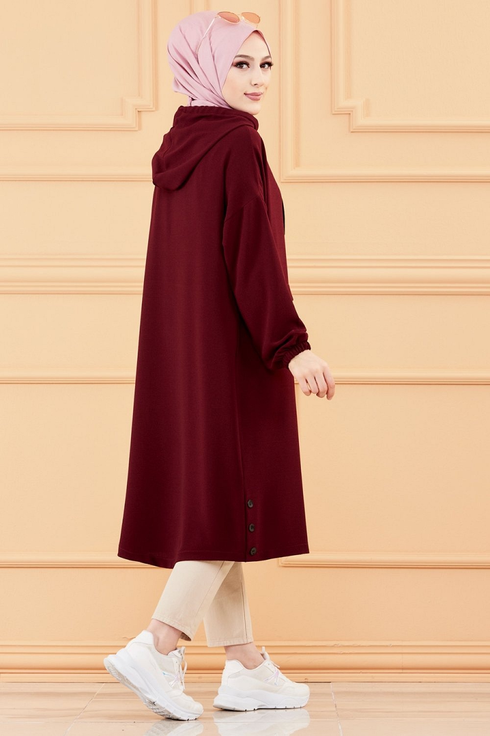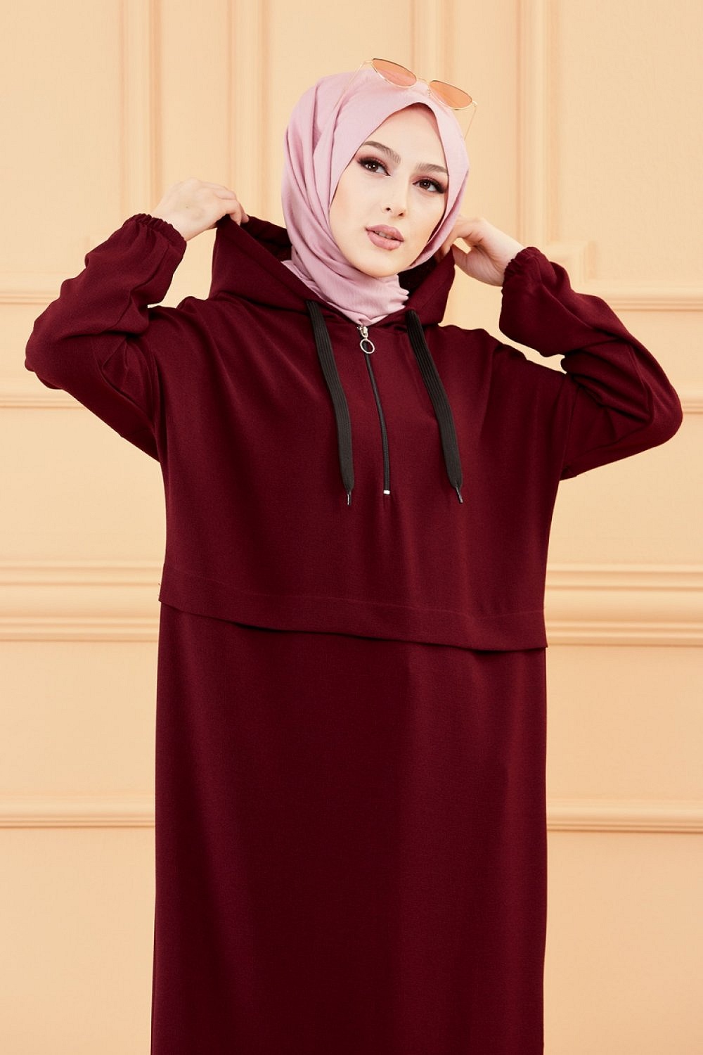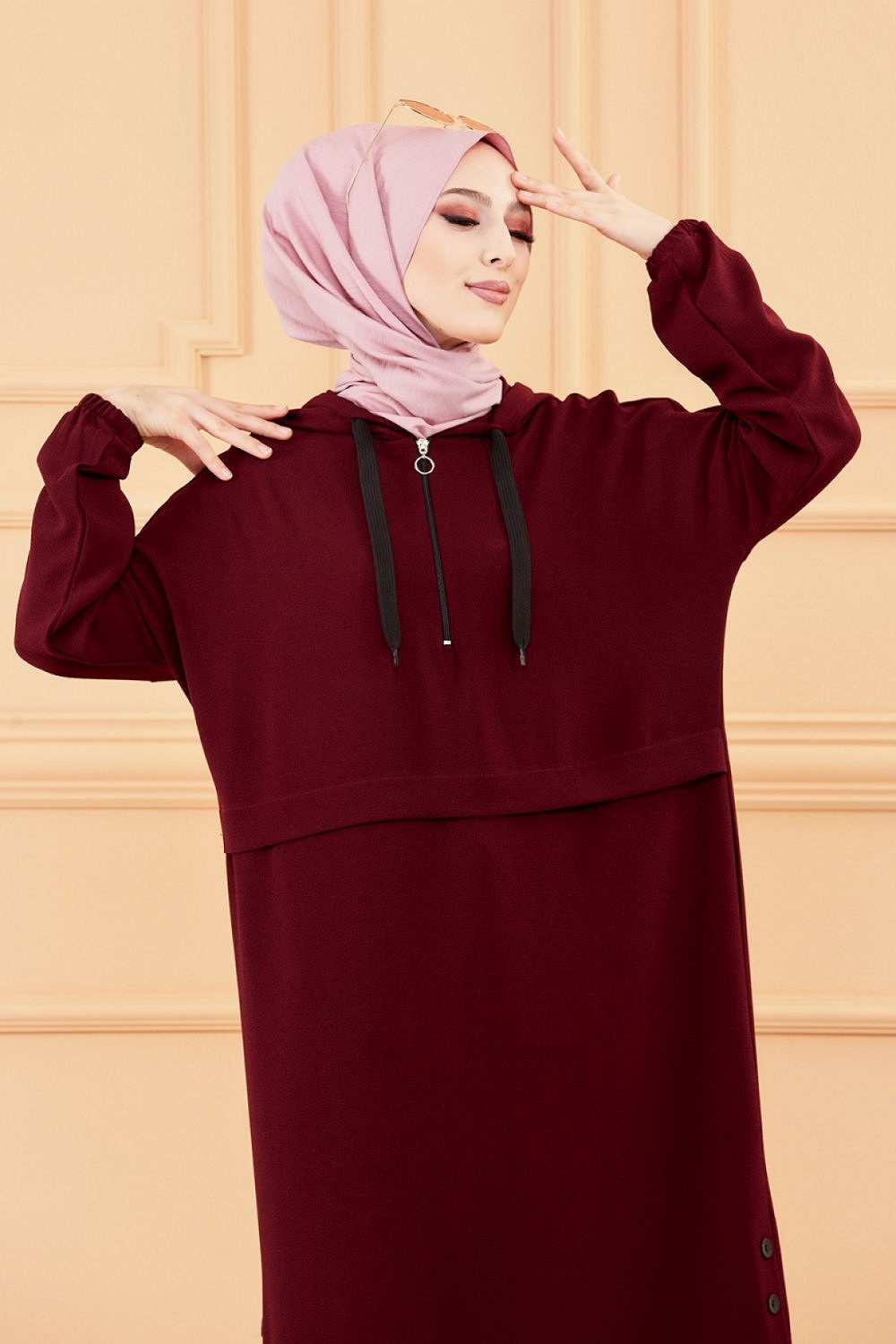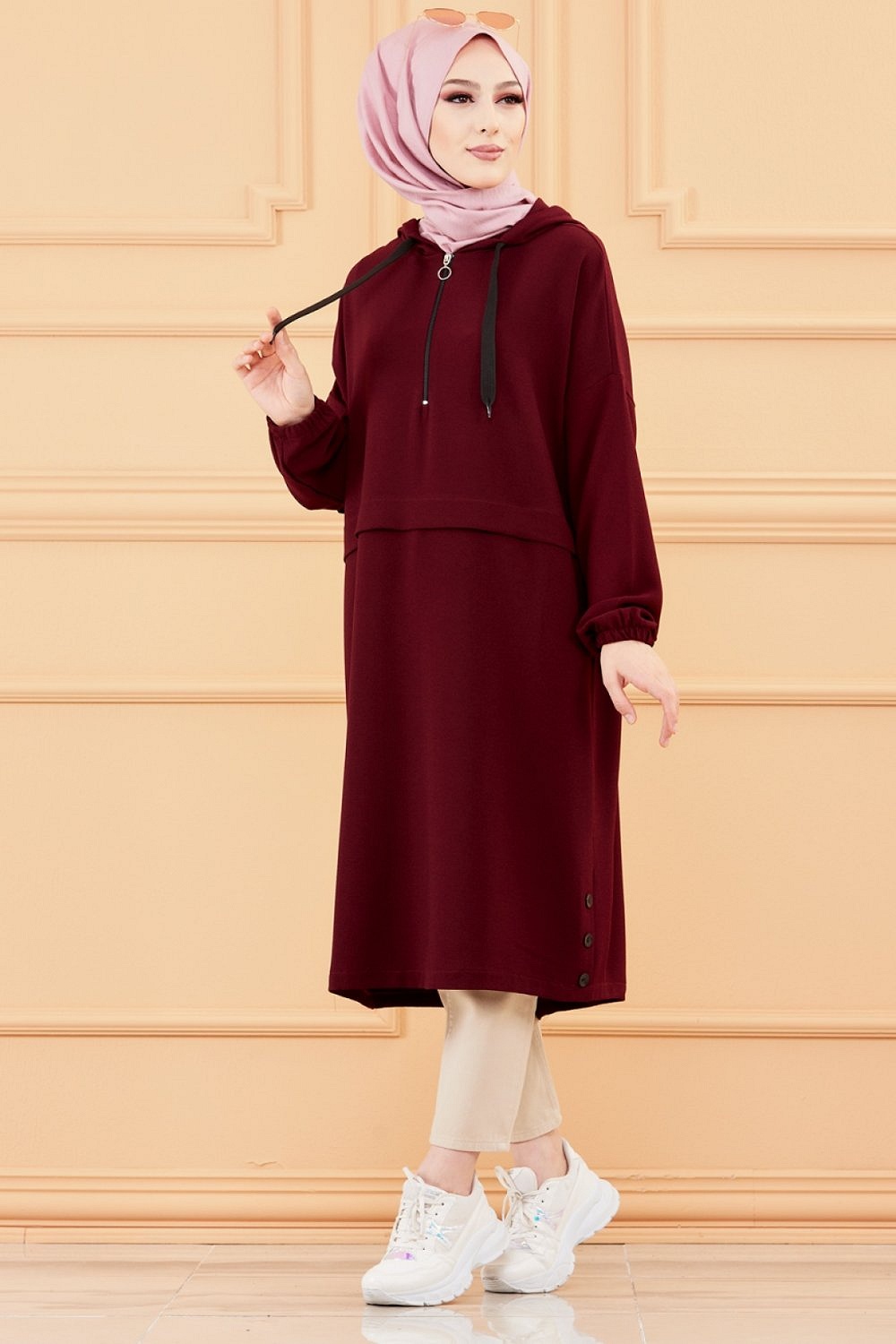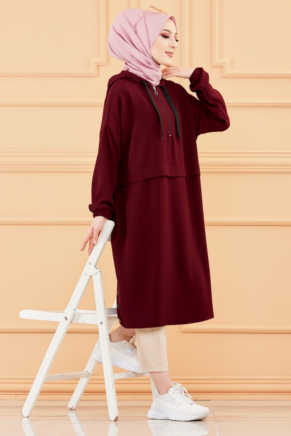 Tunique ample avec capuche (Tenue style sport pour femme musulmane) - Couleur bordeaux Vetement & Accessoire