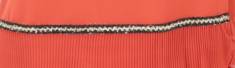 Tunique ample col rond, toutes saisons, plissée au niveau des manches et du bas. Bandes noires tressées pailletées. Tissu opaque.