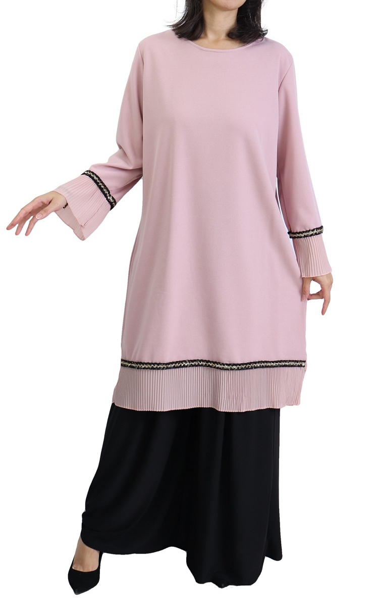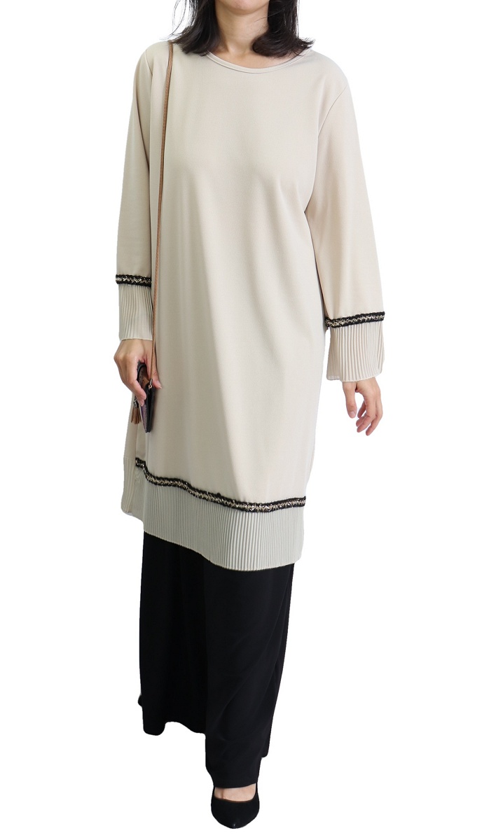 Tunique plissée style habillé pour femme (Vêtement élégant pour hijab) - Couleur beige - REF. 36536 (29.90 €)
