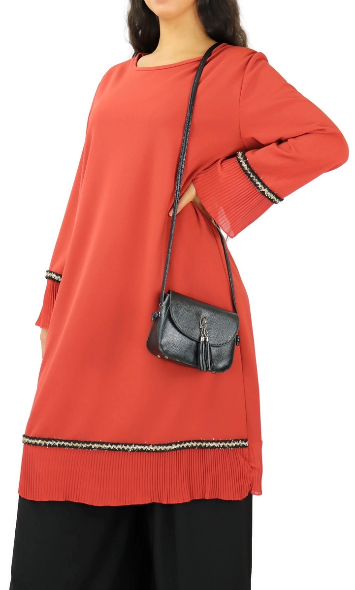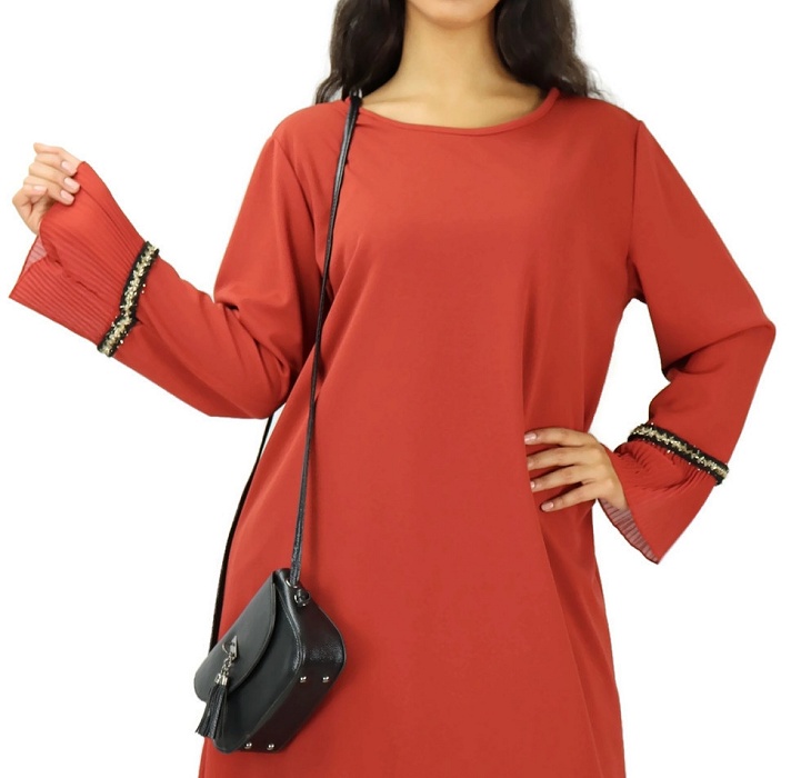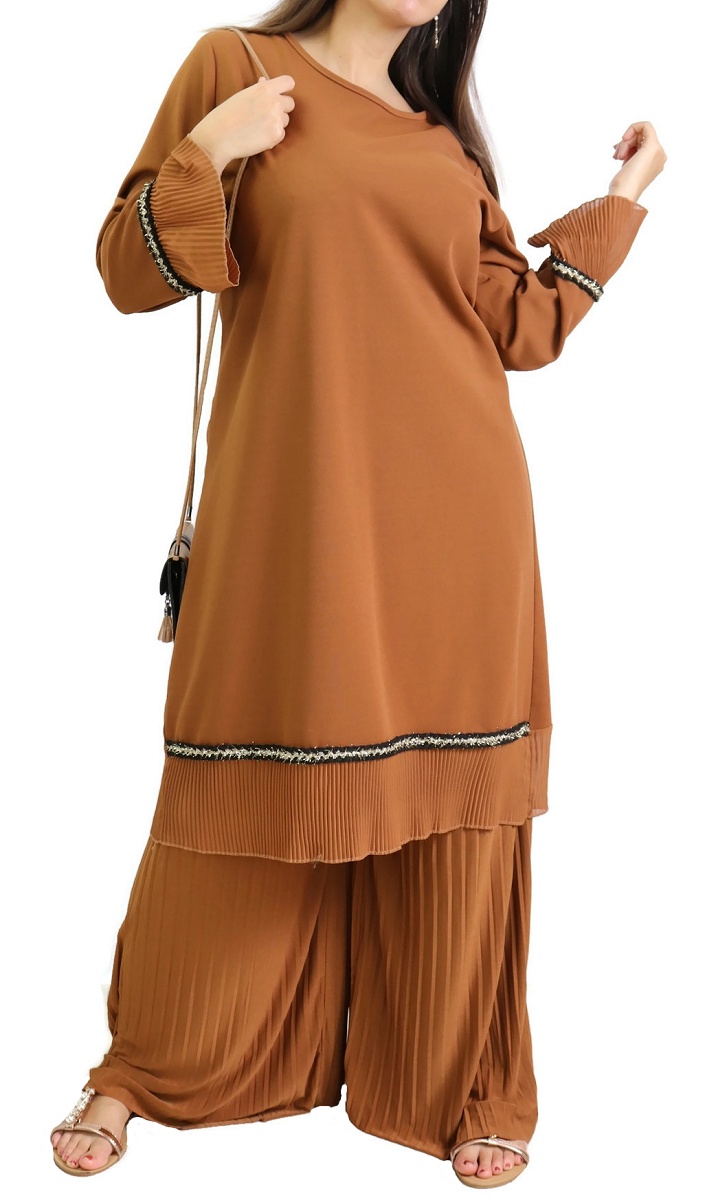 Ensemble tunique et pantalon assorti avec ceinture (Vetement pour femme voilée) - Couleur brique - REF. 34641 (29.00 €)