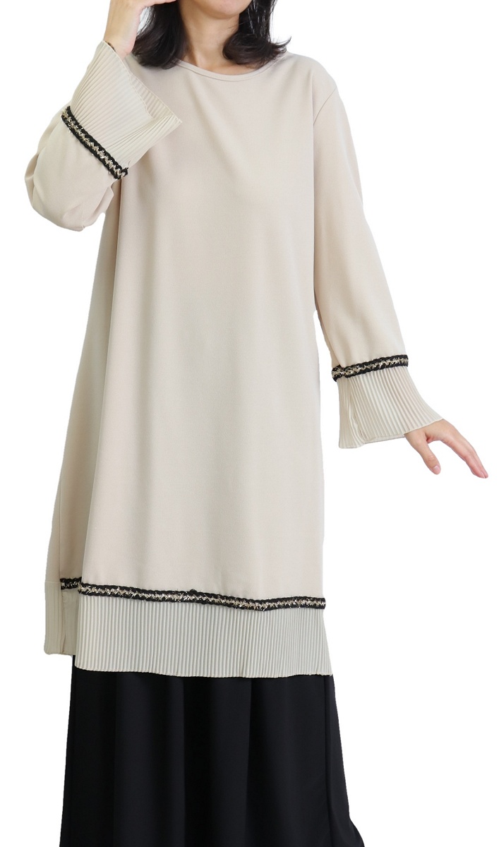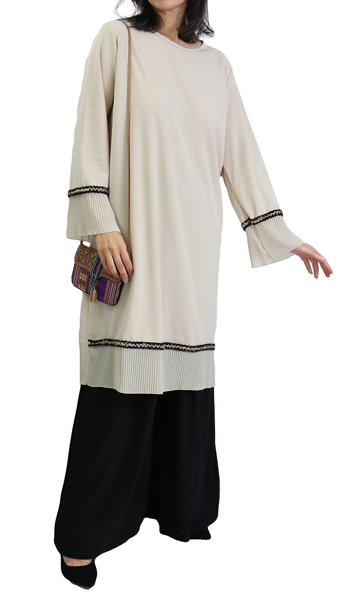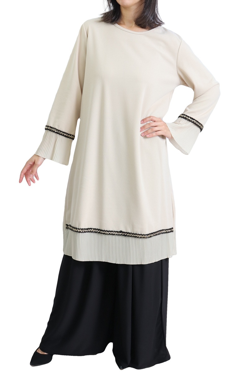 Tunique ample avec parties plissées pour femme - Couleur Beige Vetement & Accessoire