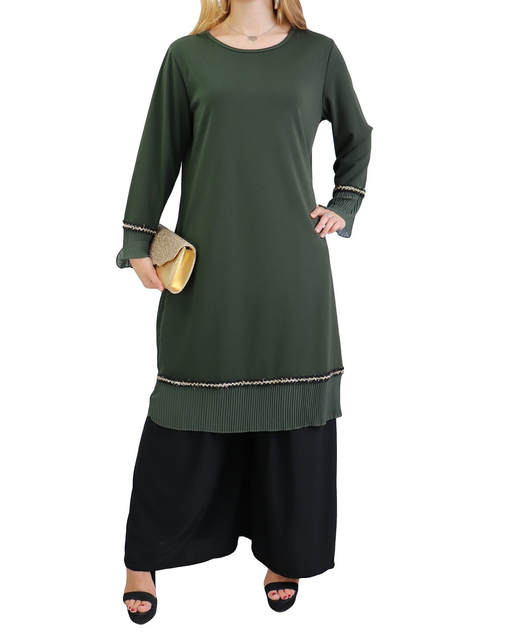 Tunique ample avec parties plissées pour femme - Couleur Kaki Vetement & Accessoire