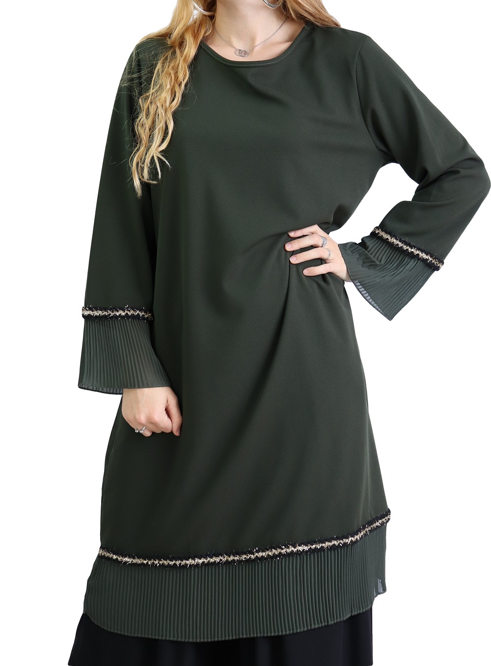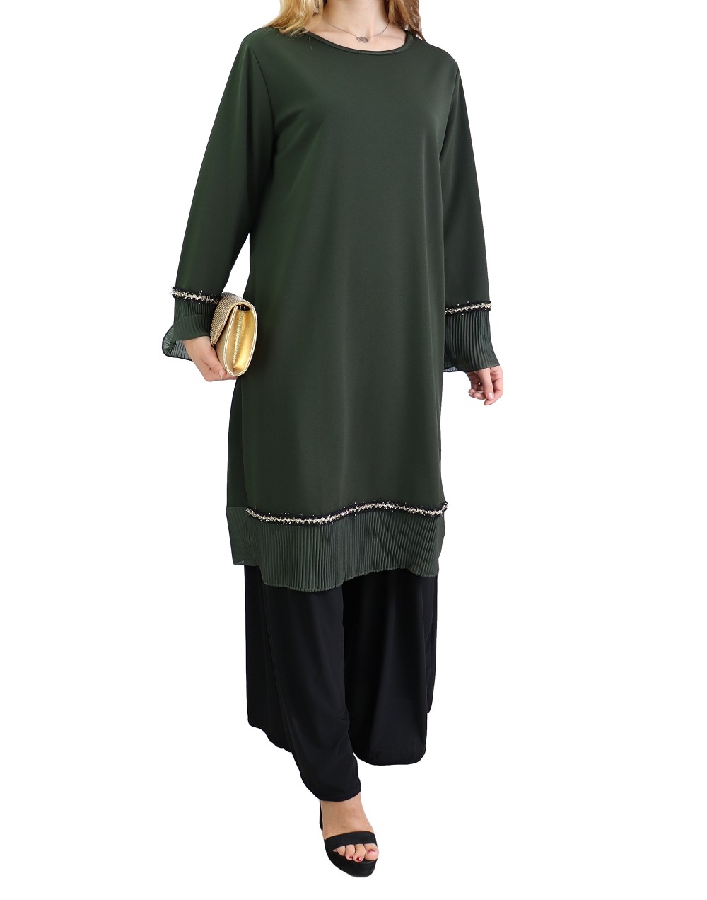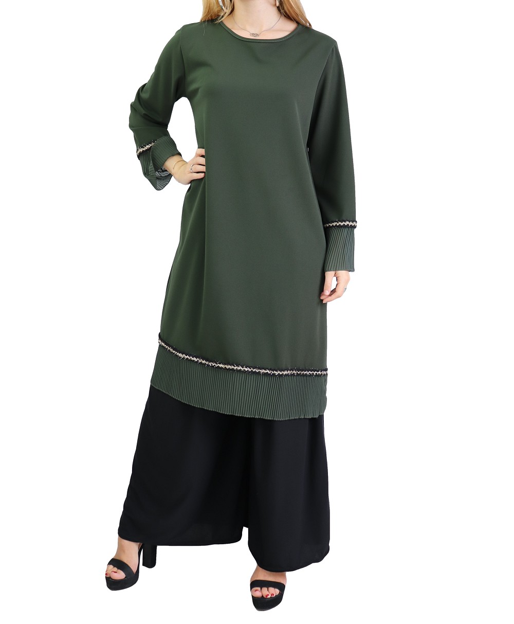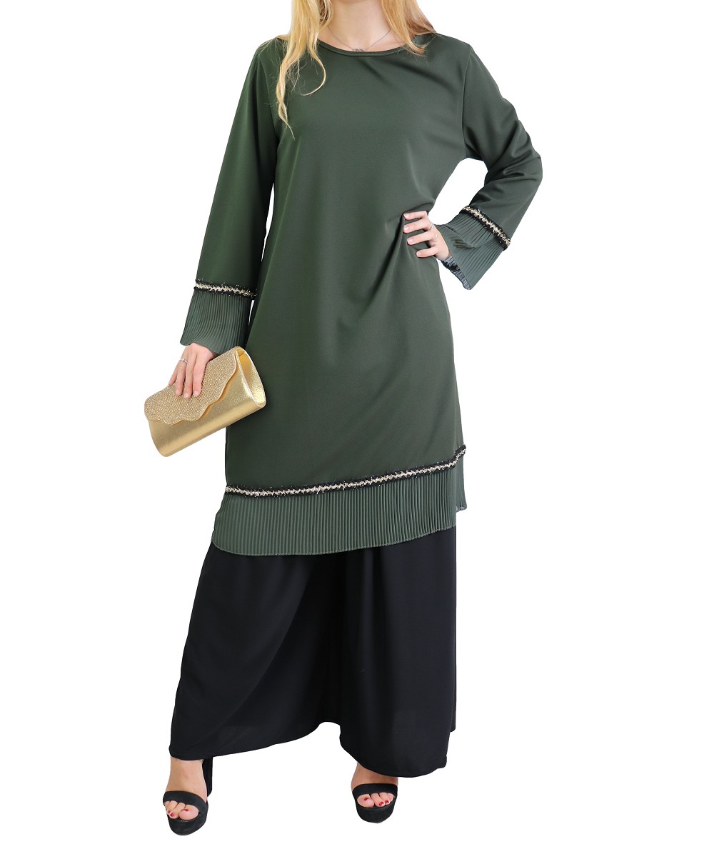 Tunique ample avec parties plissees pour femme - Couleur Kaki